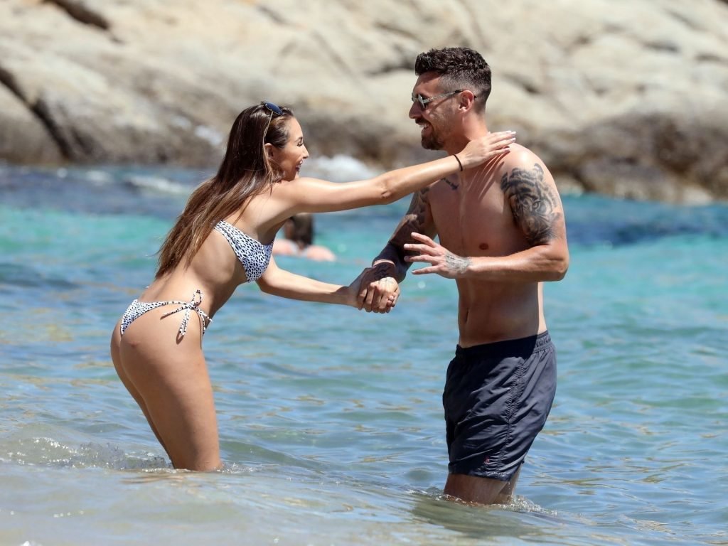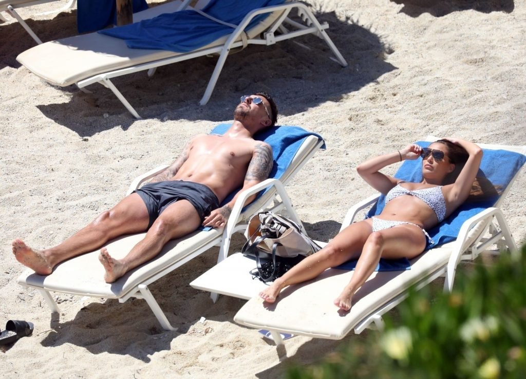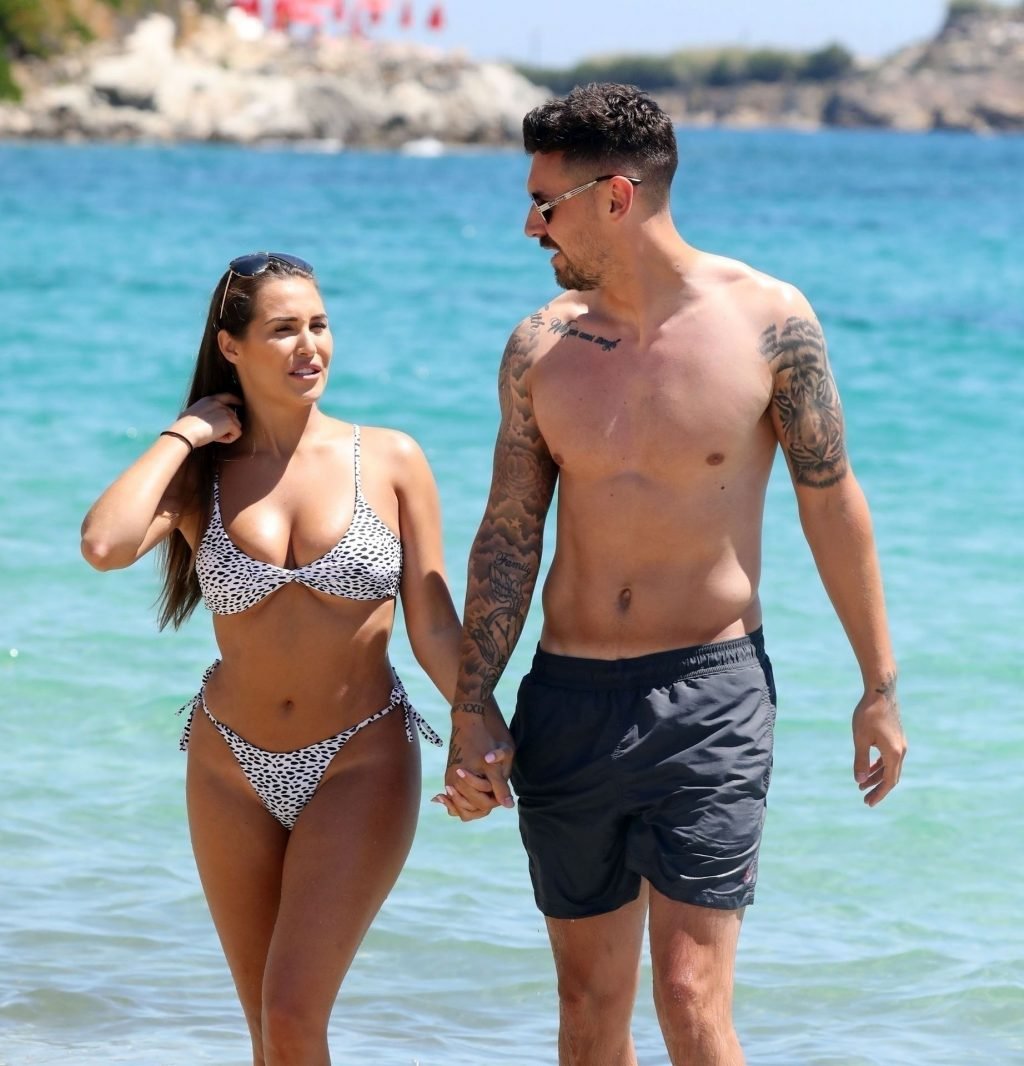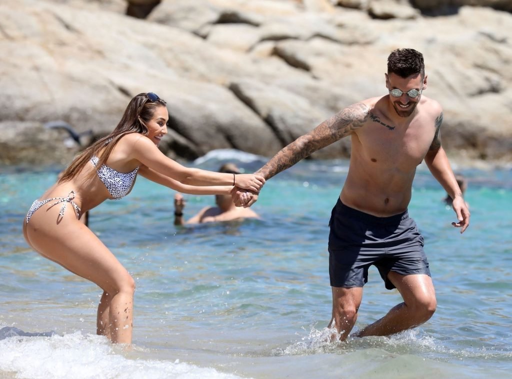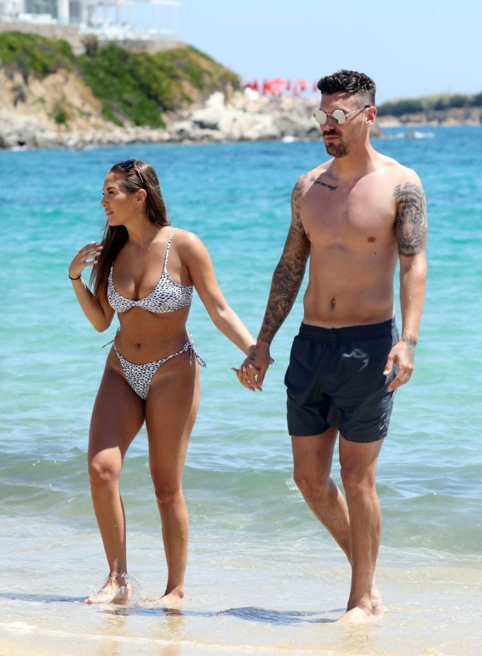 Reality star Chloe Goodman e o jogador de futebol do QPR Grant Hall fotografados em suas férias ao sol em Mykonos, 16/05/2019. O casal parecia estar sentindo o amor enquanto se abraçavam e compartilhavam alguns beijos enquanto brincavam na água.