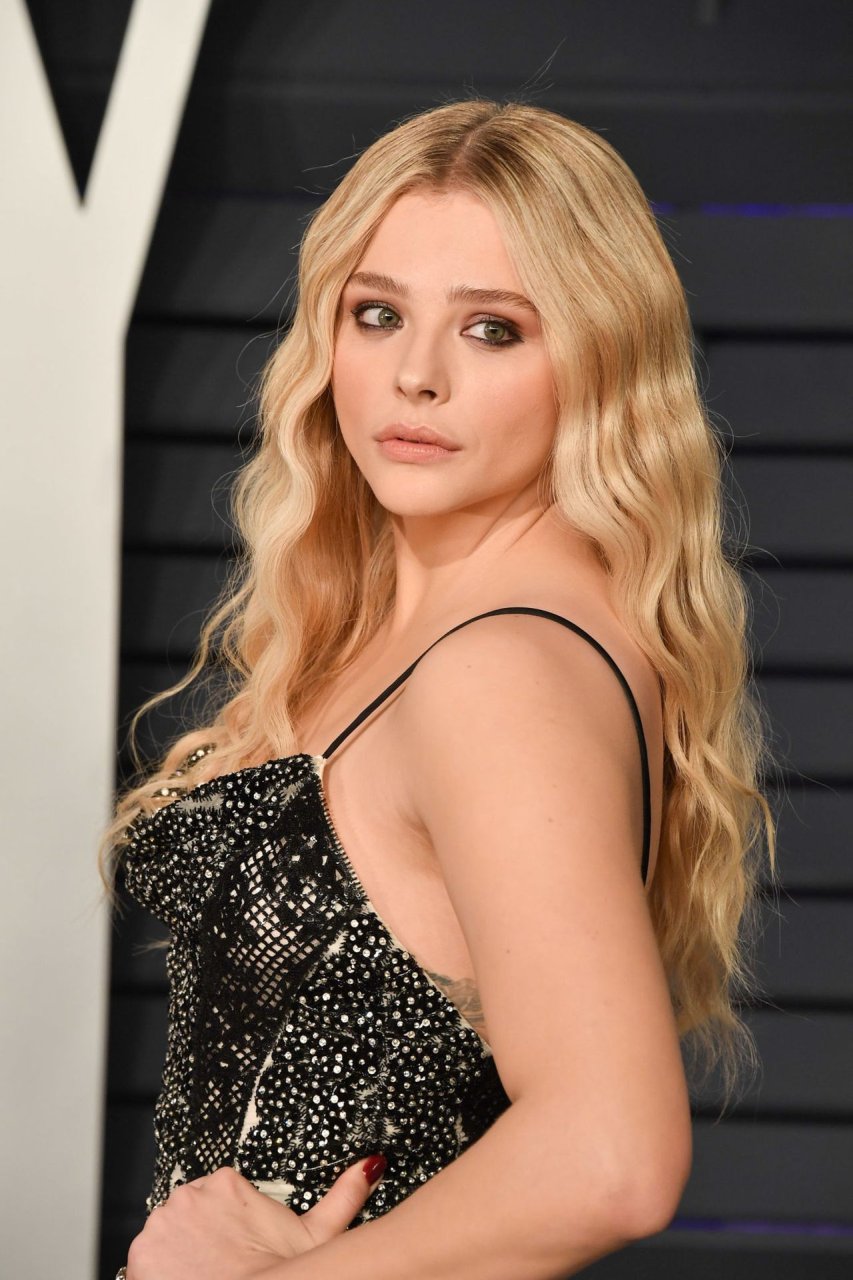 Chloe Grace Moretz foi vista na Festa do Oscar Vanity Fair 2019 em Beverly Hills, 24/02/2019. A atriz escolheu um vestido simples para o evento, diferente deste. Com esse penteado, ela parece Avril Lavigne na juventude.