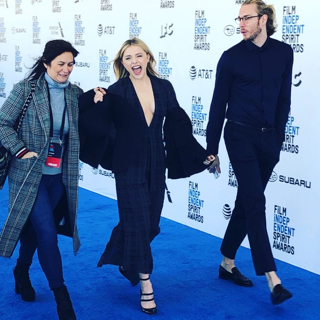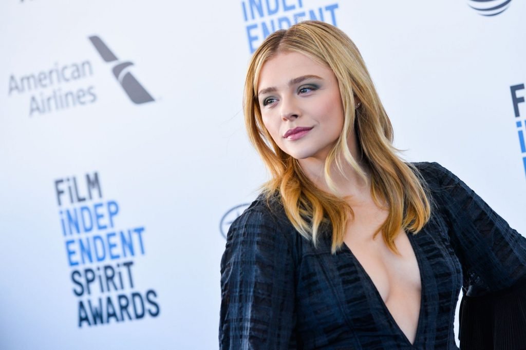 Atriz Chloe Grace Moretz sem sutiã usando um vestido Loewe e sapatos Tamara Mellon chega ao Film Independent Spirit Awards 2019 realizado na Praia de Santa Monica em Santa Monica, Los Angeles, 23/02/2019.