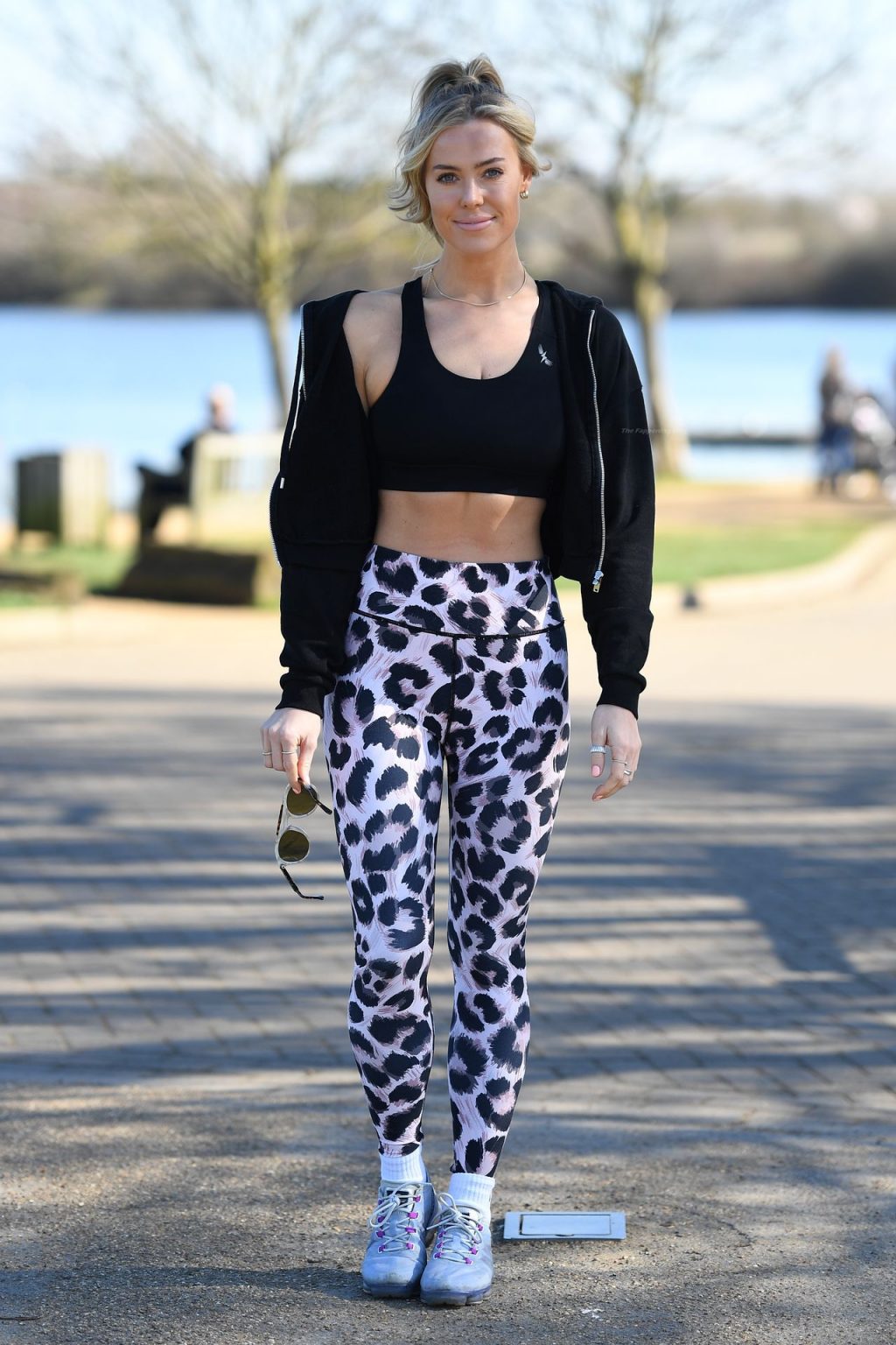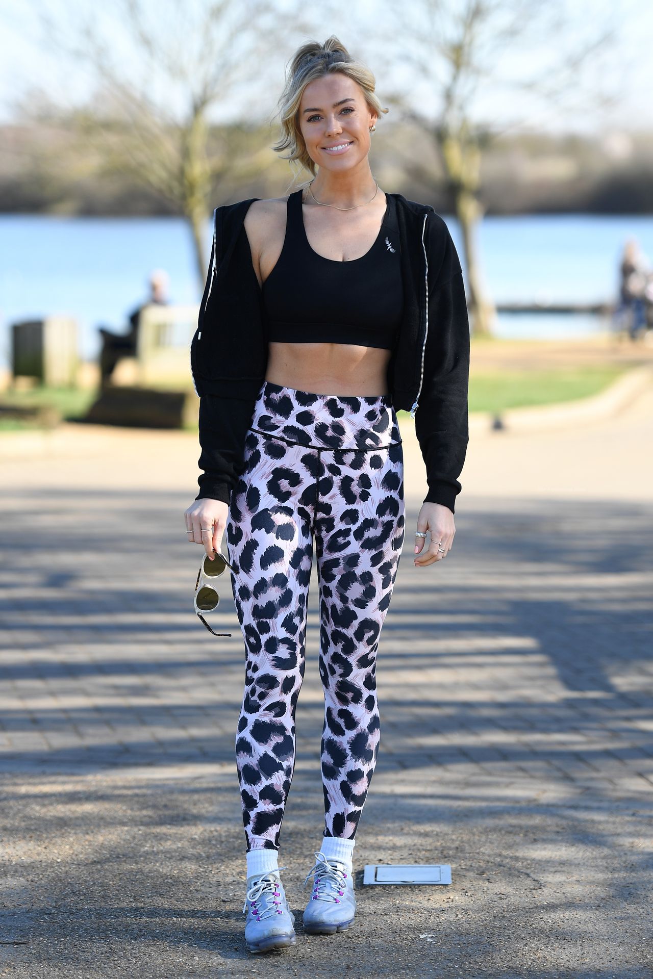 Reality TV star Chloe Meadows é vista usando uma blusa esportiva e leggings durante as filmagens do programa de TV ‘The Only Way is Essex’ em Essex, 03/09/2021.