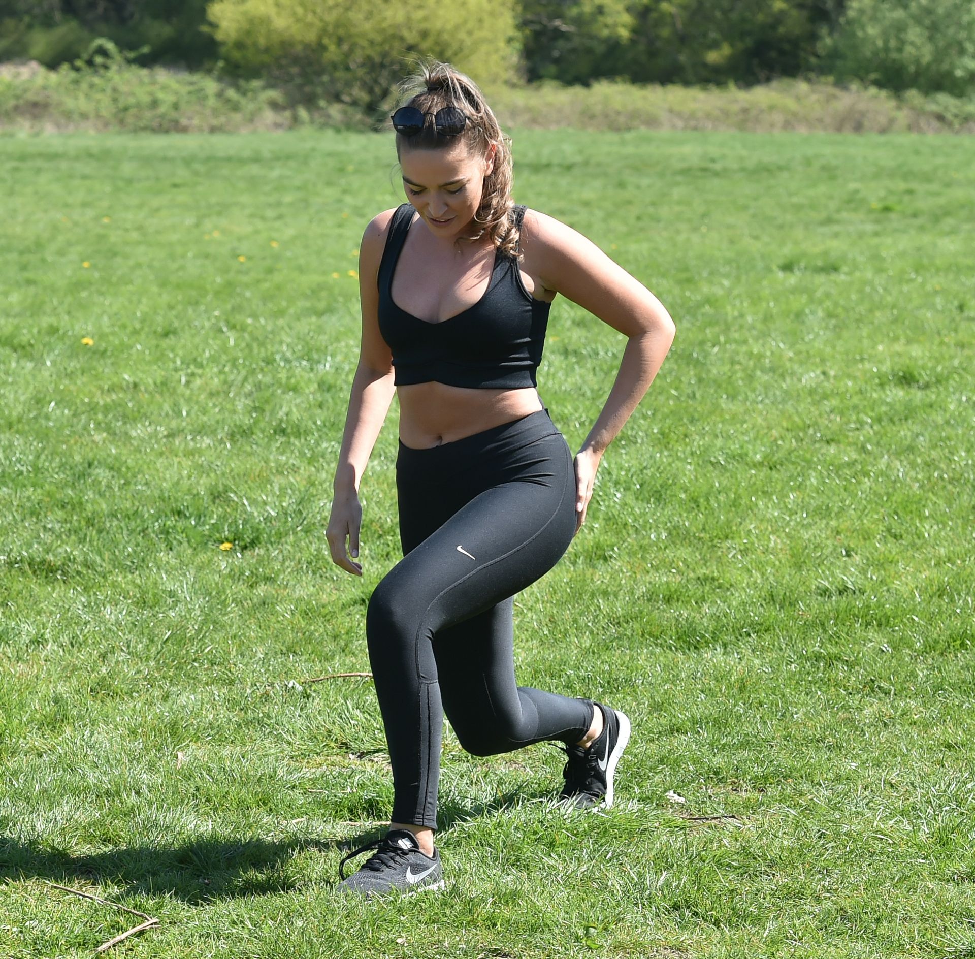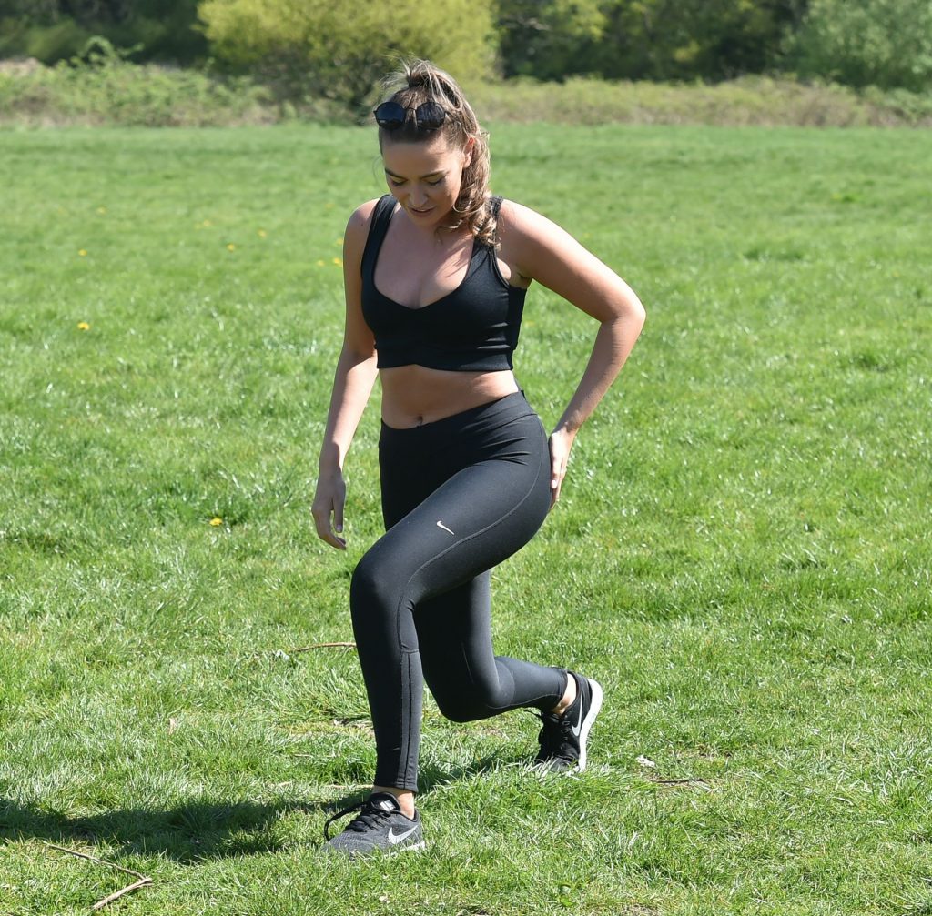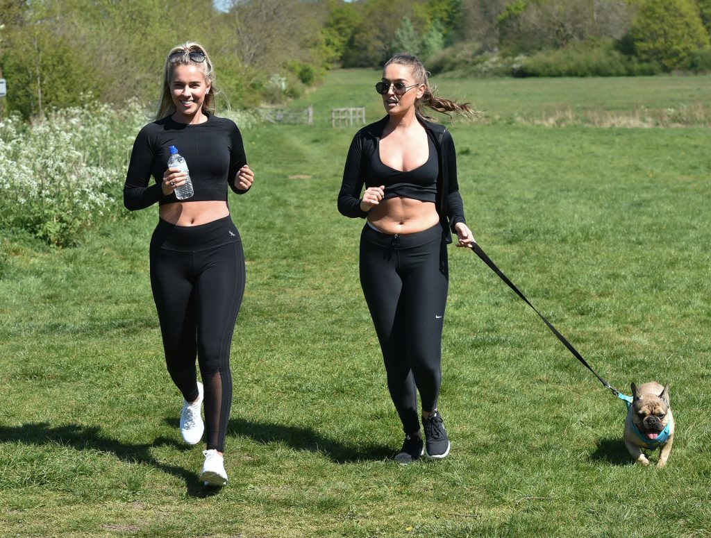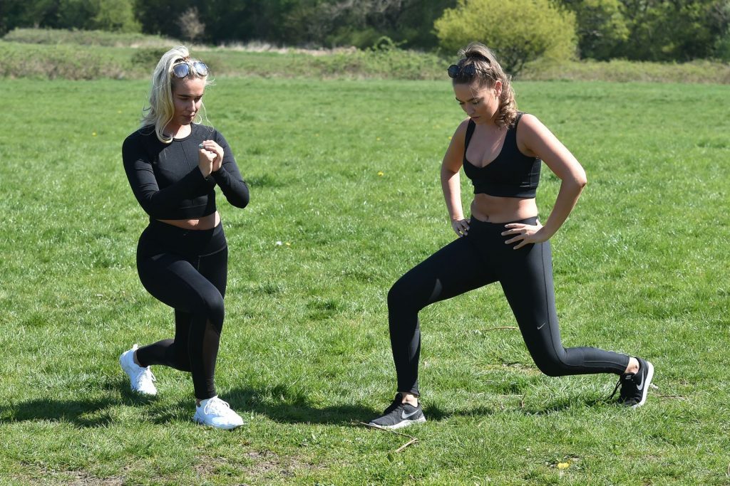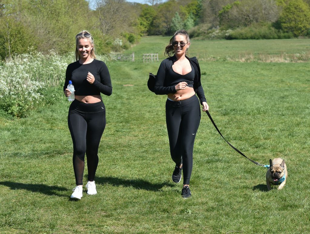 TOWIE star Chloe Ross foi vista fazendo seu treino matinal com sua irmã Maddy em um parque em Chigwell, Essex, 05/04/2020.