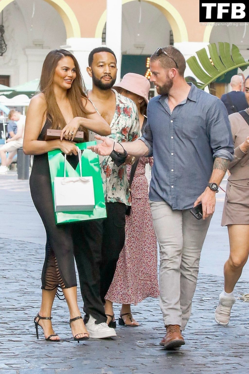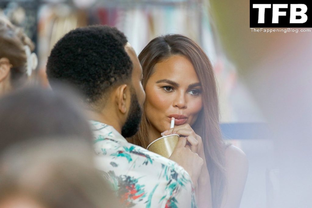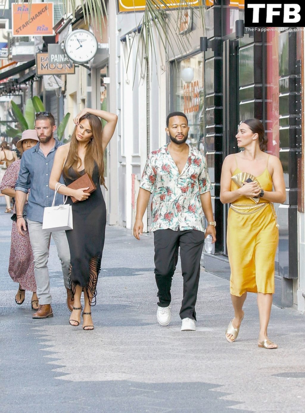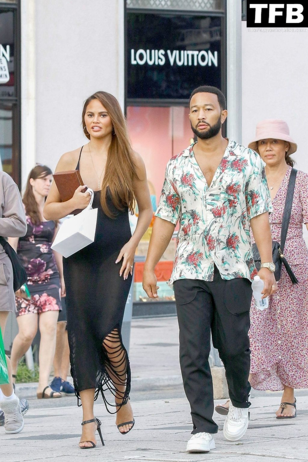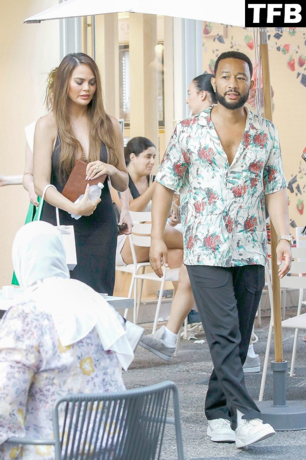O casal foi visto parando em diferentes lojas e olhando os cartões postais expostos do lado de fora de uma loja. O adorável casal, que celebrará seu 9º aniversário de casamento em setembro, tirou fotos ao longo do caminho documentando seu dia e, em um momento, John pode ser visto mostrando a Chrissy algumas fotos deles no celular. A autora do livro de receitas foi sem sutiã sob um vestido preto transparente e sexy para o passeio e combinou o visual com sandálias de tiras.