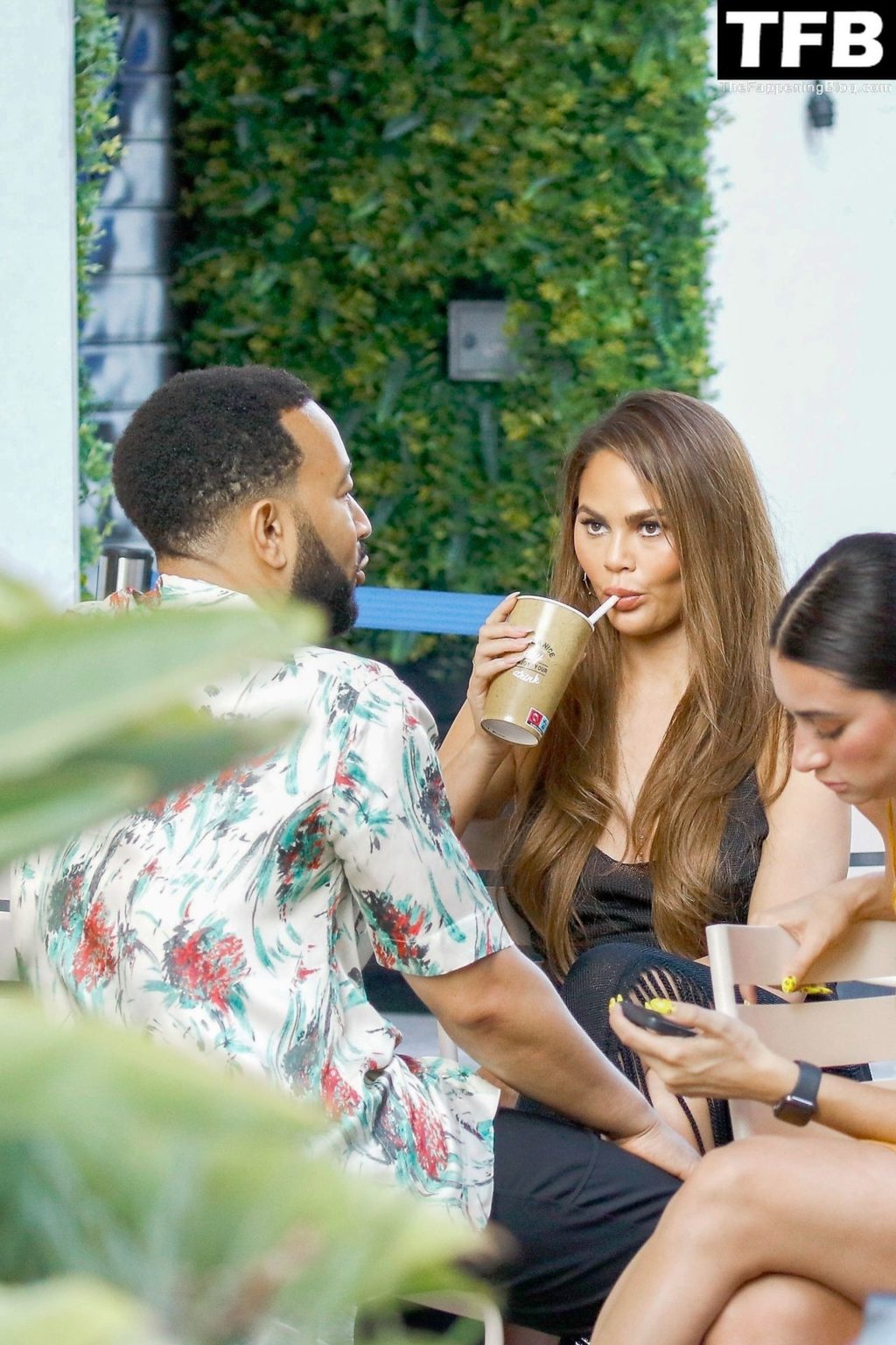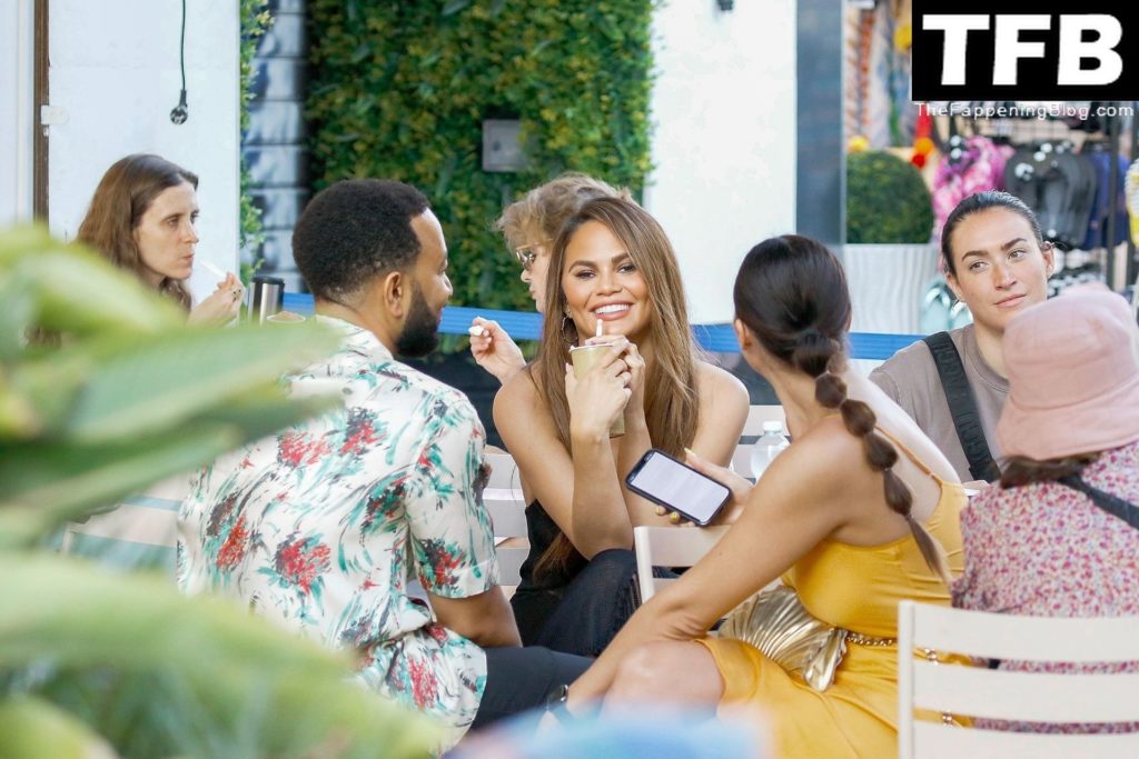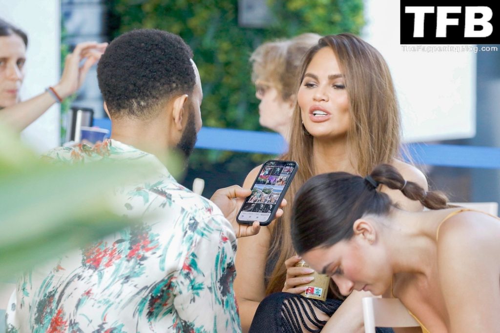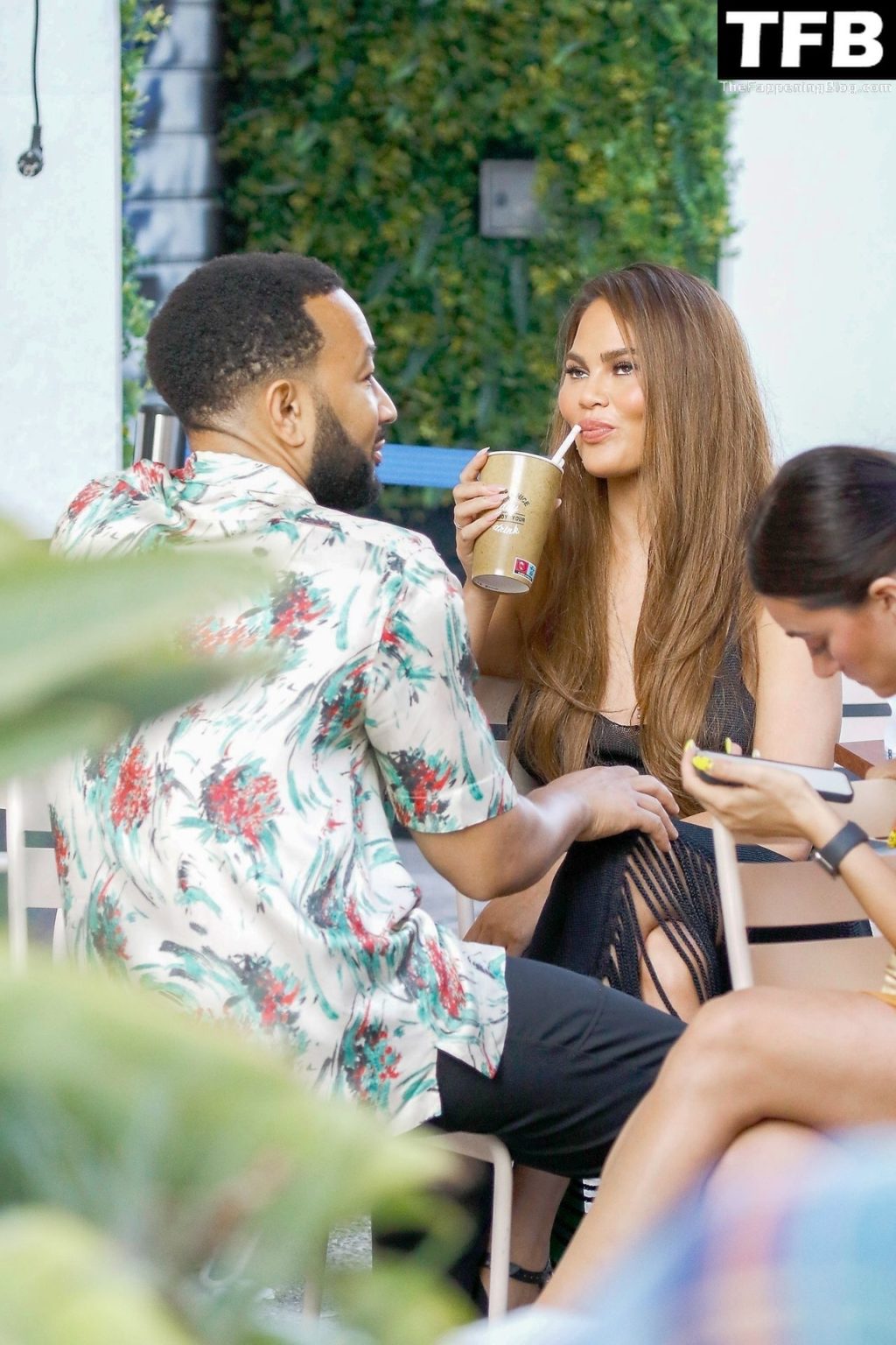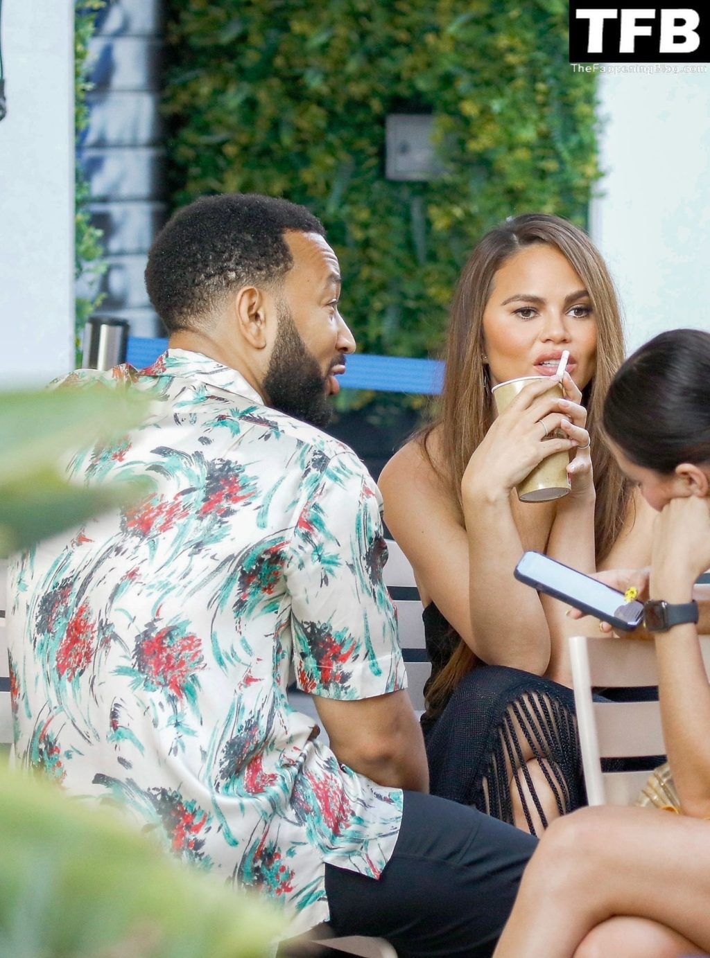 O casal foi visto parando em diferentes lojas e olhando os cartões postais expostos do lado de fora de uma loja. O adorável casal, que celebrará seu 9º aniversário de casamento em setembro, tirou fotos ao longo do caminho documentando seu dia e, em um momento, John pode ser visto mostrando a Chrissy algumas fotos deles no celular. A autora do livro de receitas foi sem sutiã sob um vestido preto transparente e sexy para o passeio e combinou o visual com sandálias de tiras.