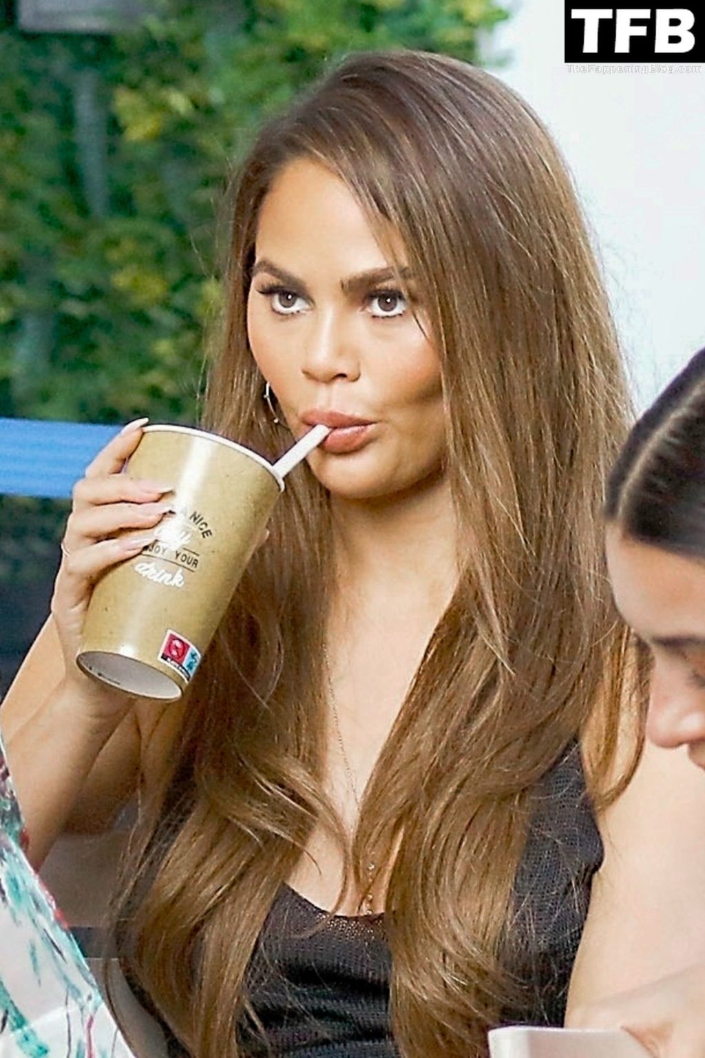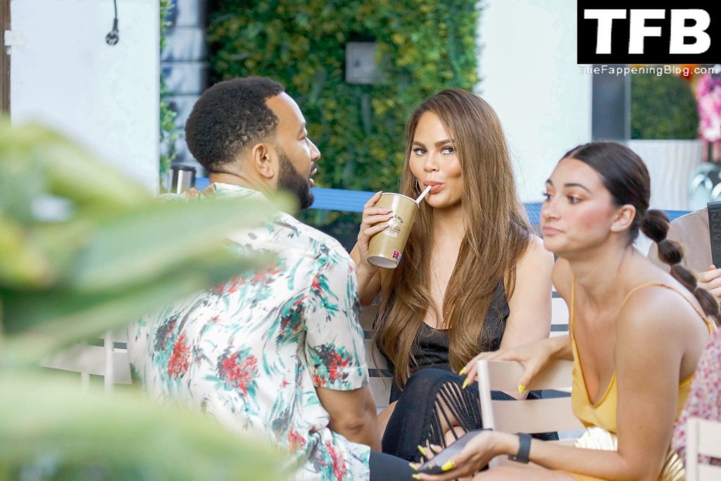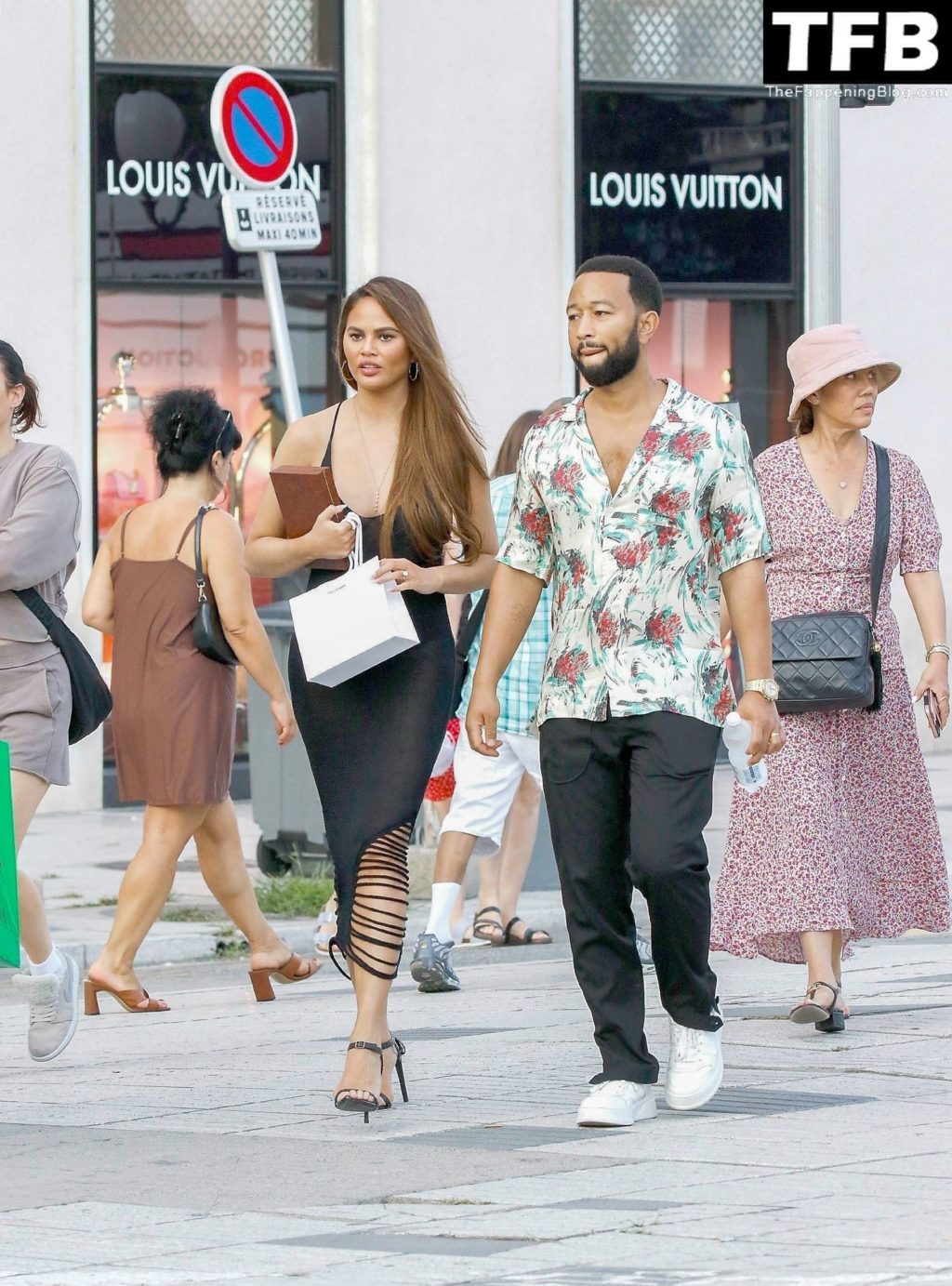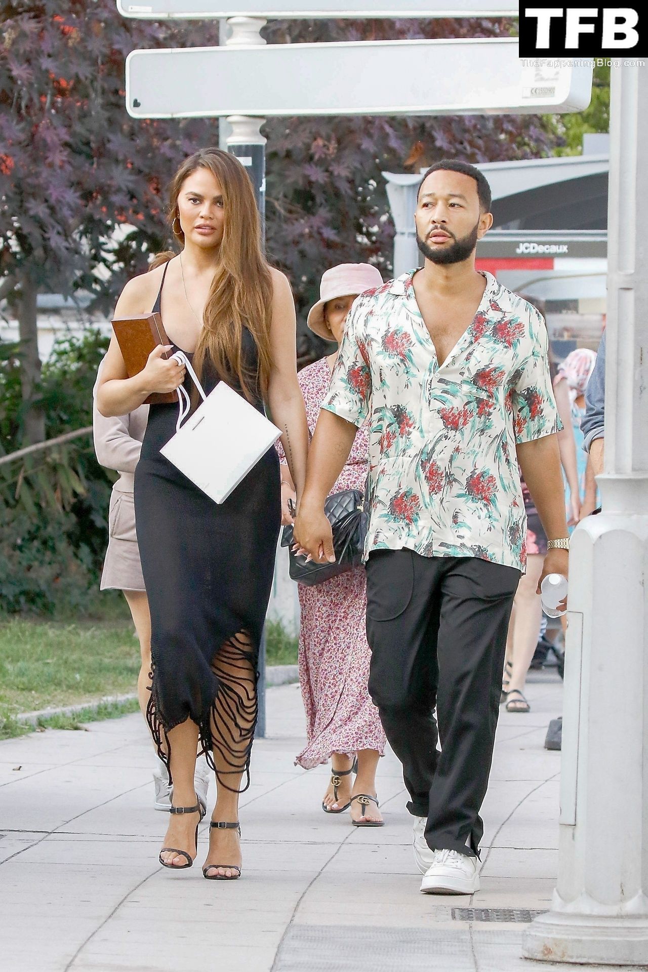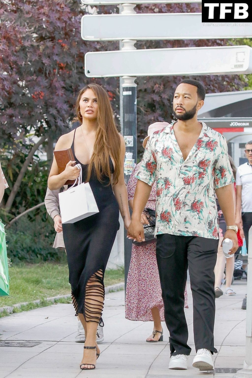 Chrissy Teigen Vai Sem Sutiã Sob Um Vestido Preto Transparente Muito Sexy na França (101 Fotos)