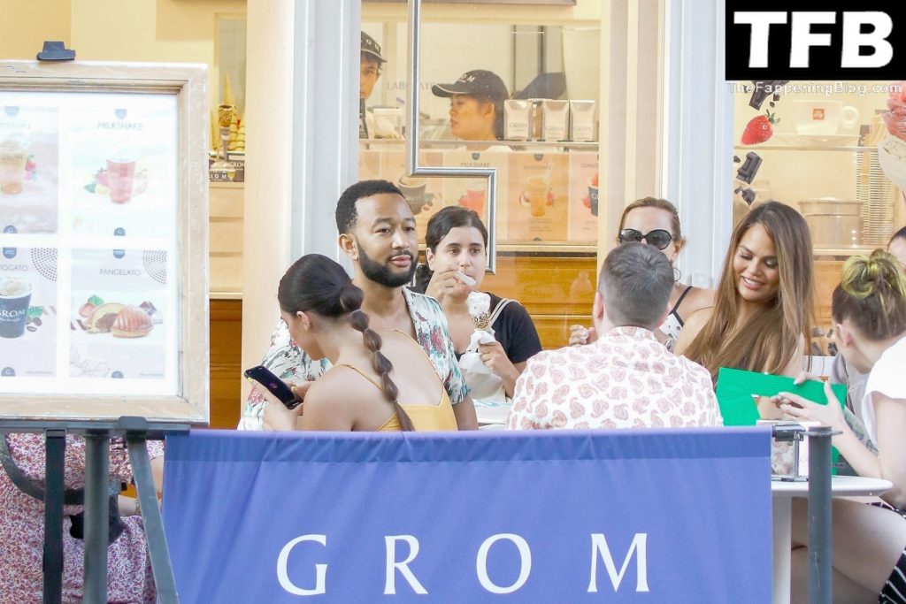 O adorável casal foi visto fazendo compras na loja Chloe, onde Chrissy comprou óculos de sol. Depois, a dupla aproveitou uma caminhada de mãos dadas e parou em uma sorveteria, Grom, no centro de Nice para um doce.