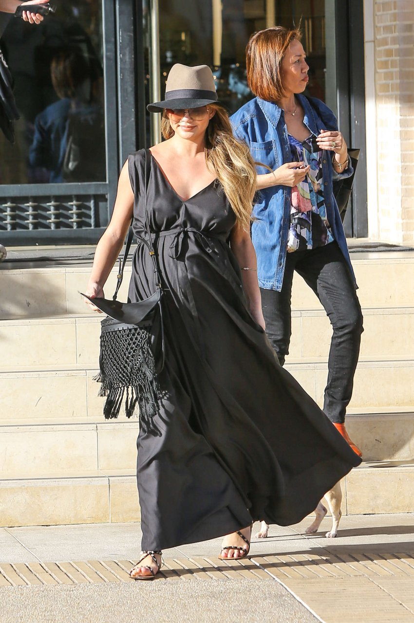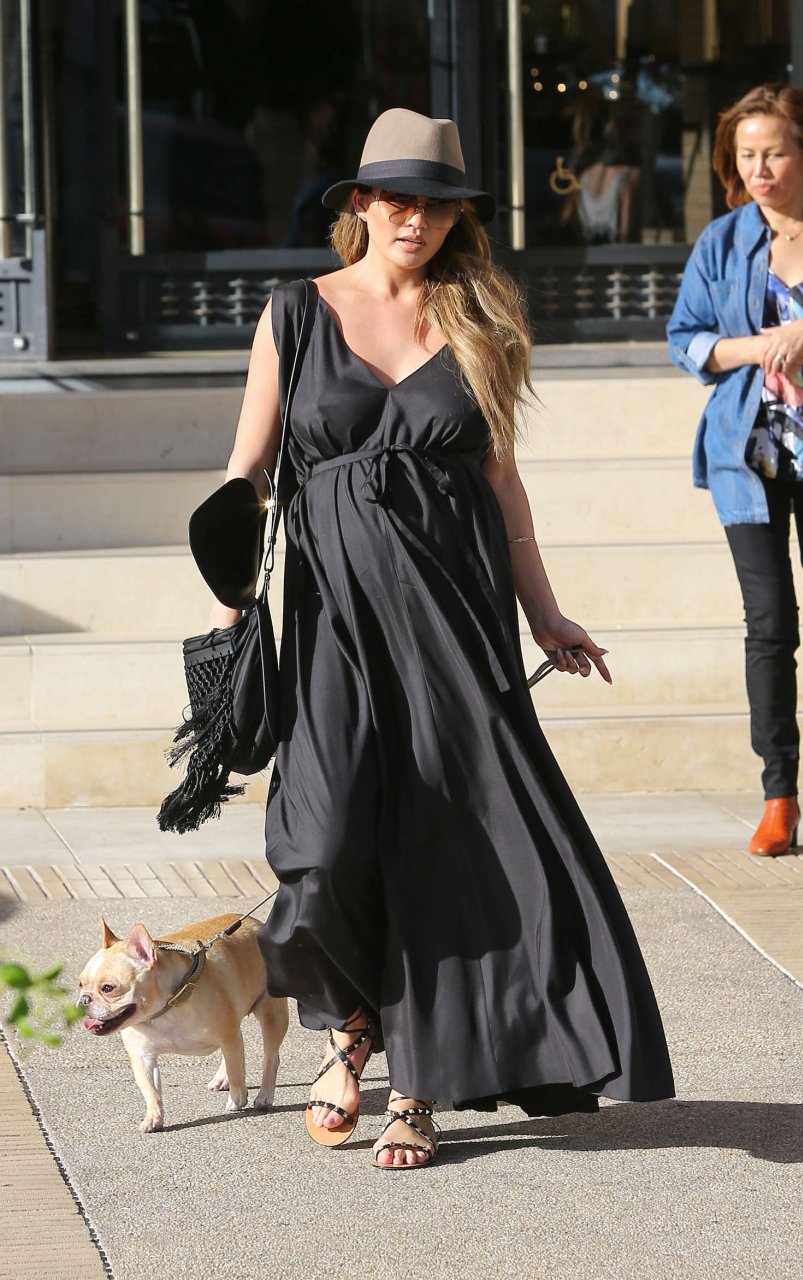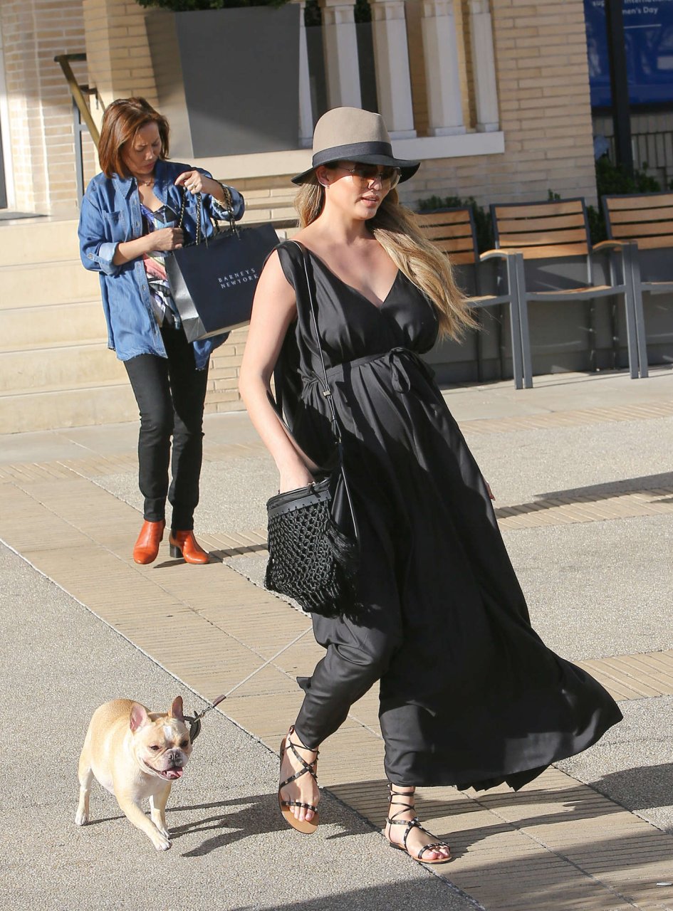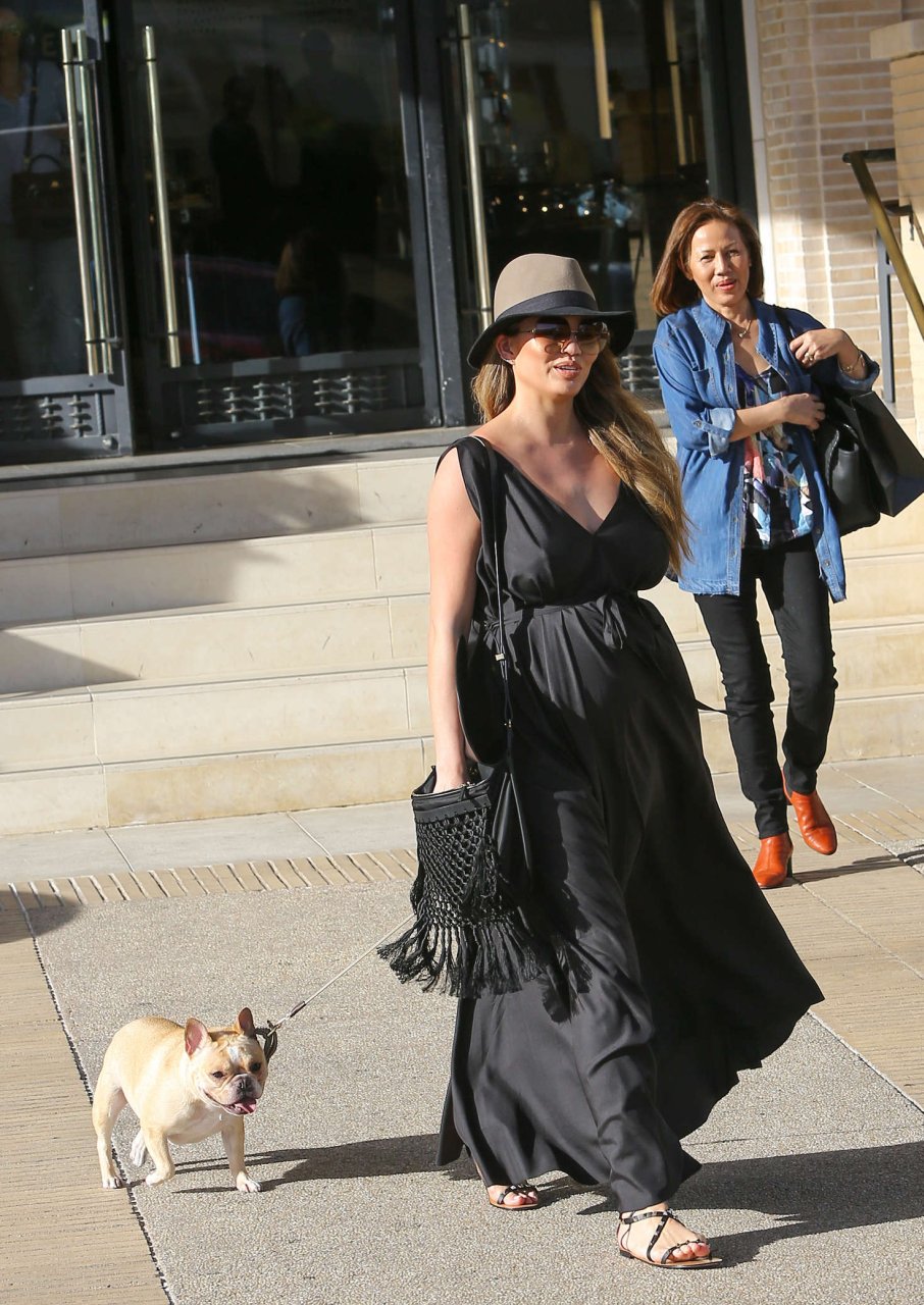 Chrissy Teigen em vestido preto na Barneys New York em Los Angeles, 14/03/2016. Seios super cremosos! Chrissy Teigen é uma modelo americana. Idade 30 (30 de novembro de 1985). Altura 174 cm.