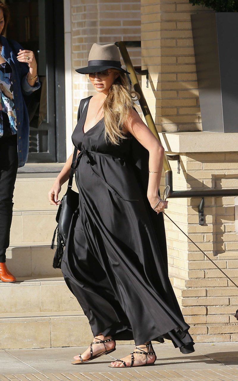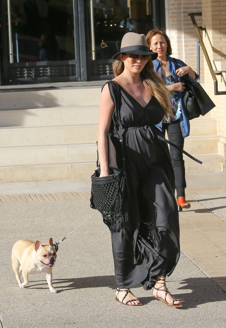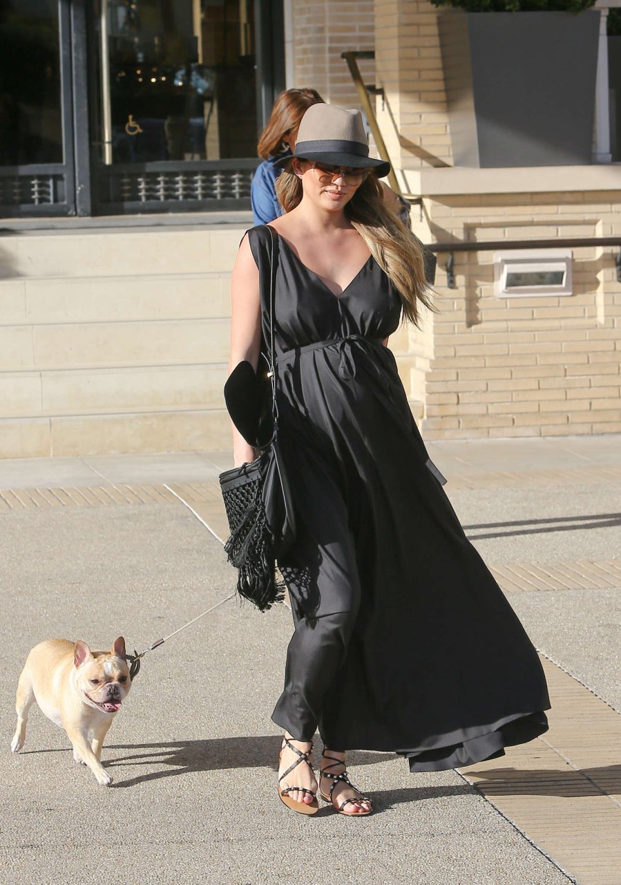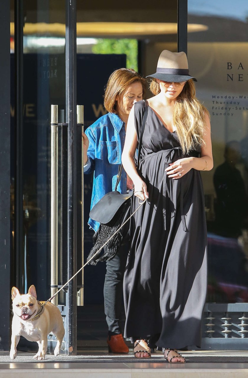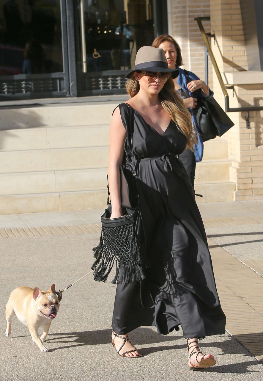Chrissy Teigen em vestido preto na Barneys New York em Los Angeles, 14/03/2016. Seios super cremosos! Chrissy Teigen é uma modelo americana. Idade 30 (30 de novembro de 1985). Altura 174 cm.