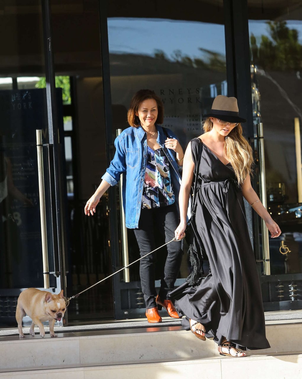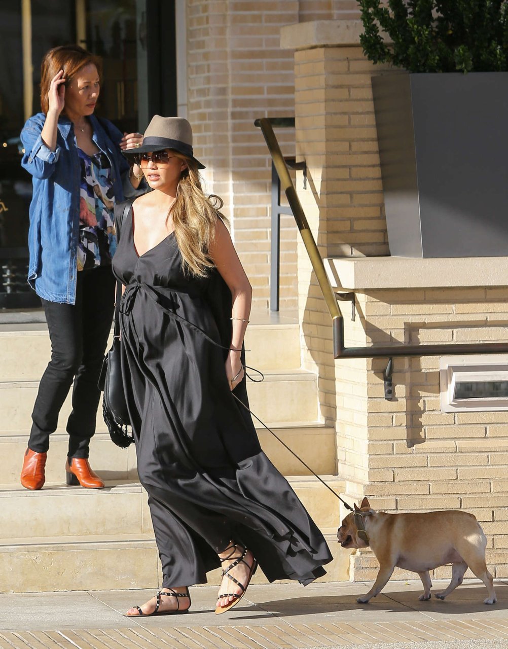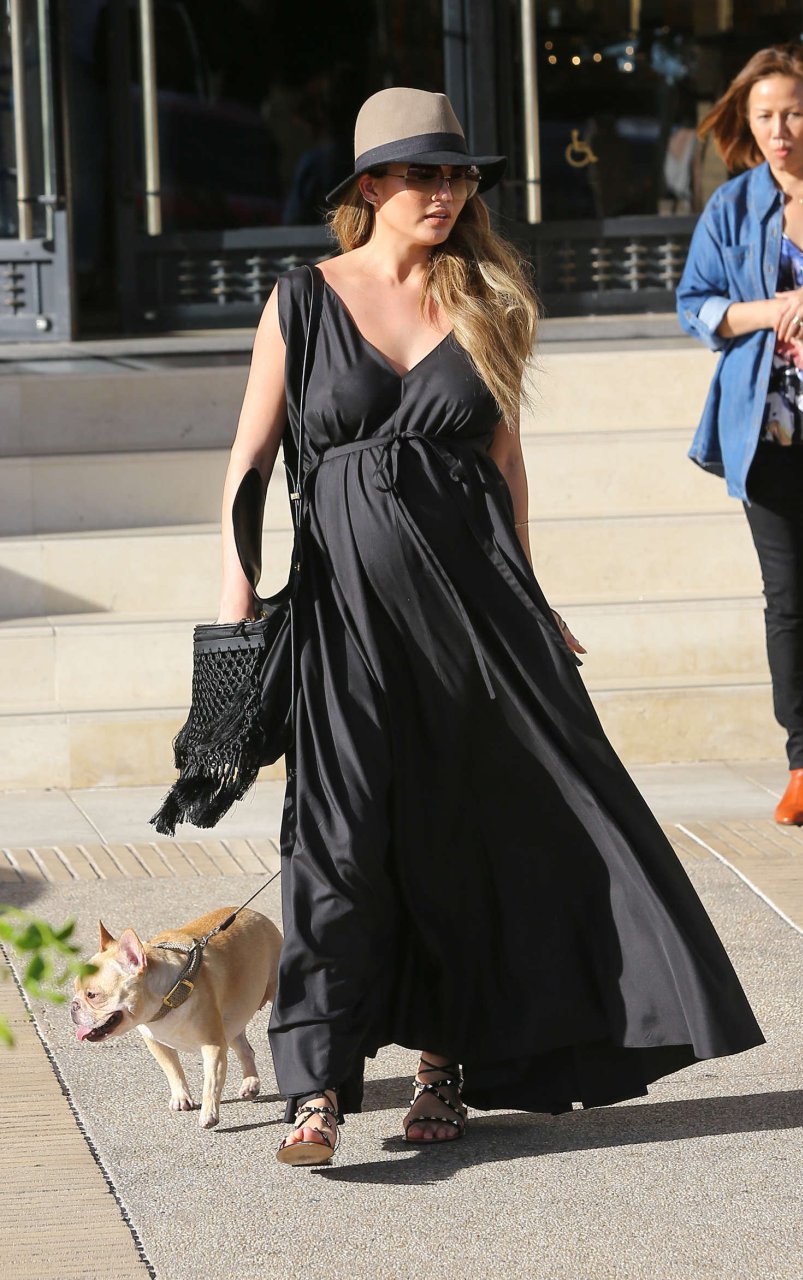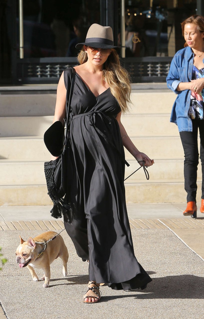 Chrissy Teigen em vestido preto na Barneys New York em Los Angeles, 14/03/2016. Seios super cremosos! Chrissy Teigen é uma modelo americana. Idade 30 (30 de novembro de 1985). Altura 174 cm.