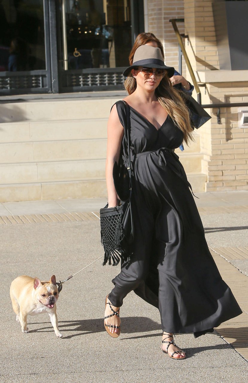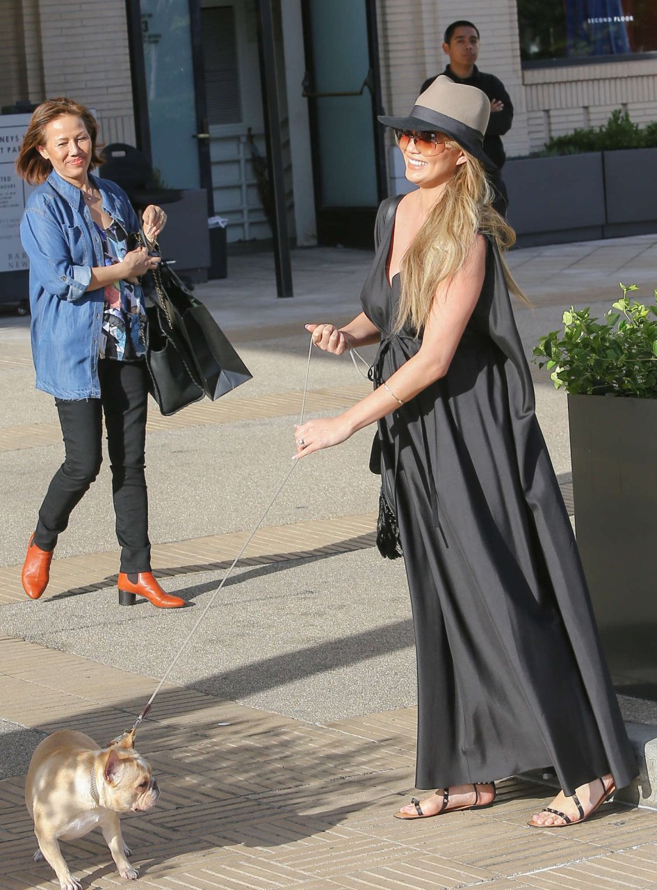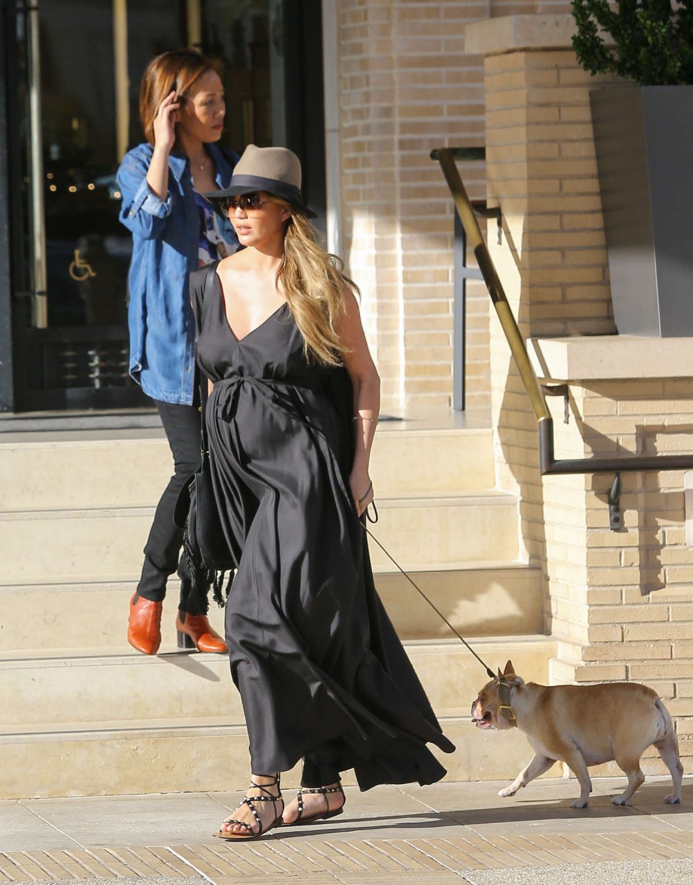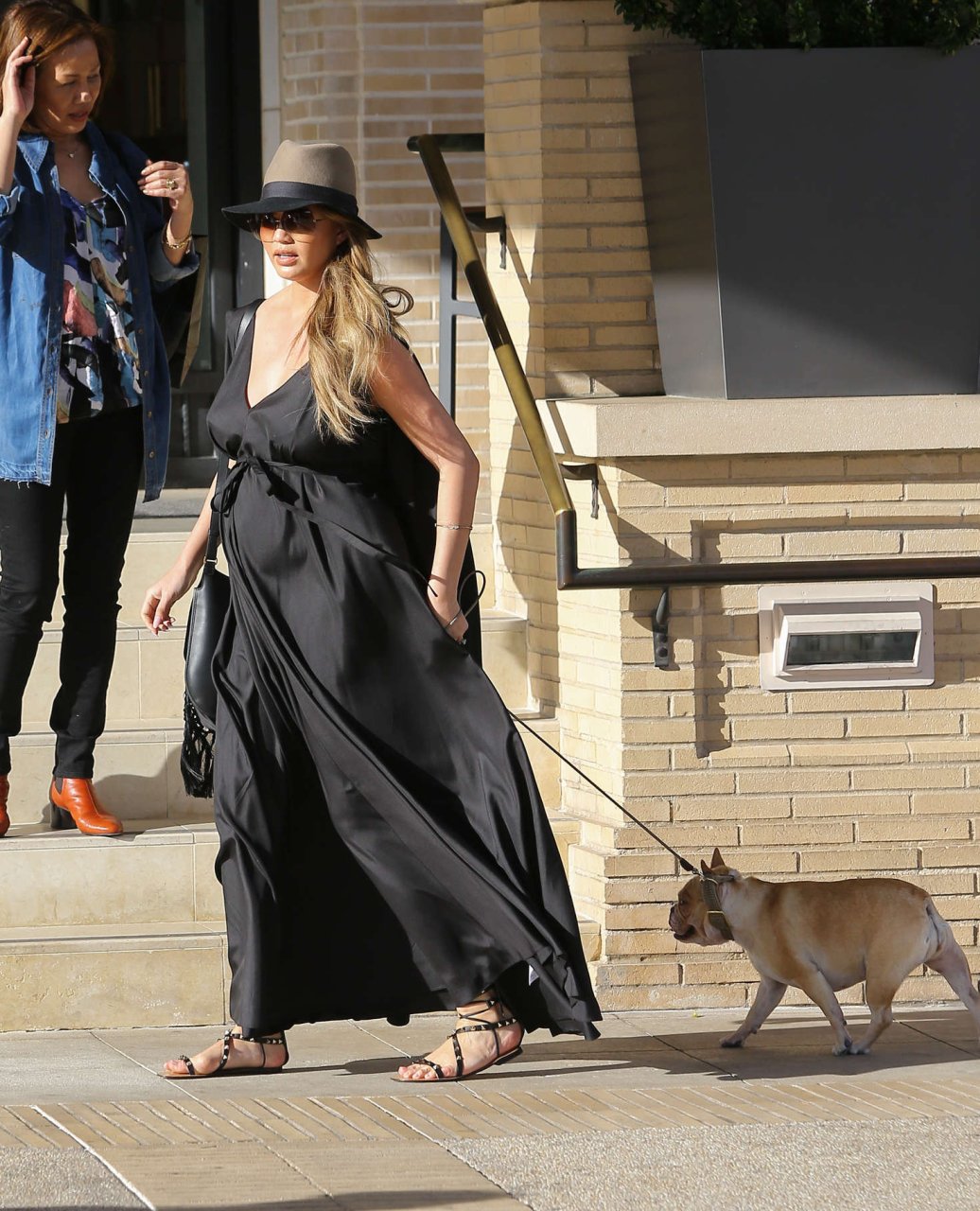 Chrissy Teigen em vestido preto na Barneys New York em Los Angeles, 14/03/2016. Seios super cremosos! Chrissy Teigen é uma modelo americana. Idade 30 (30 de novembro de 1985). Altura 174 cm.