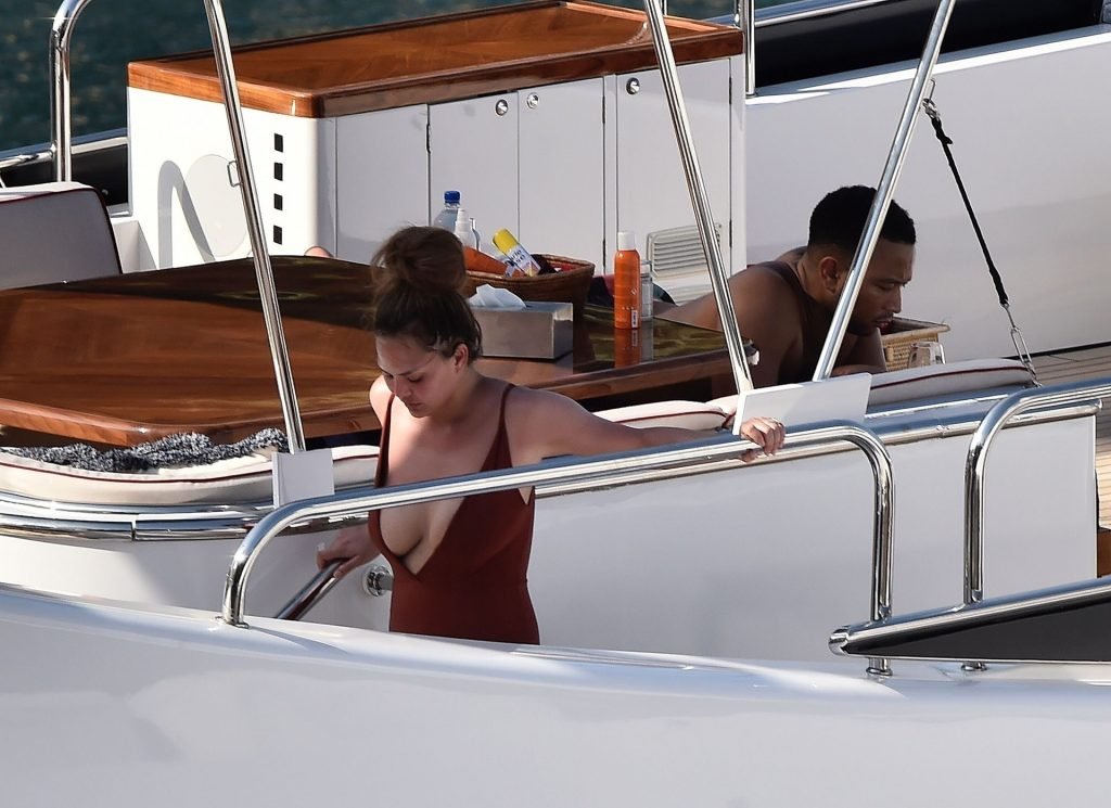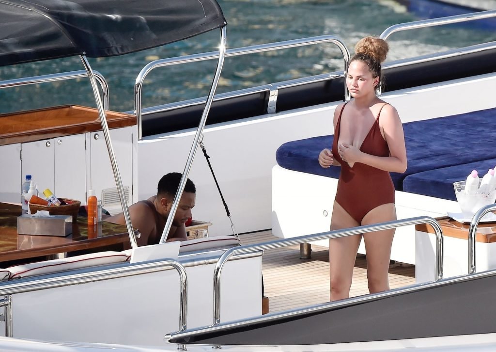 Cantor americano de soul, John Legend e sua esposa Chrissy Teigen fazem um passeio de barco em sua aventura de férias na Itália em Portofino, 07/02/2019.