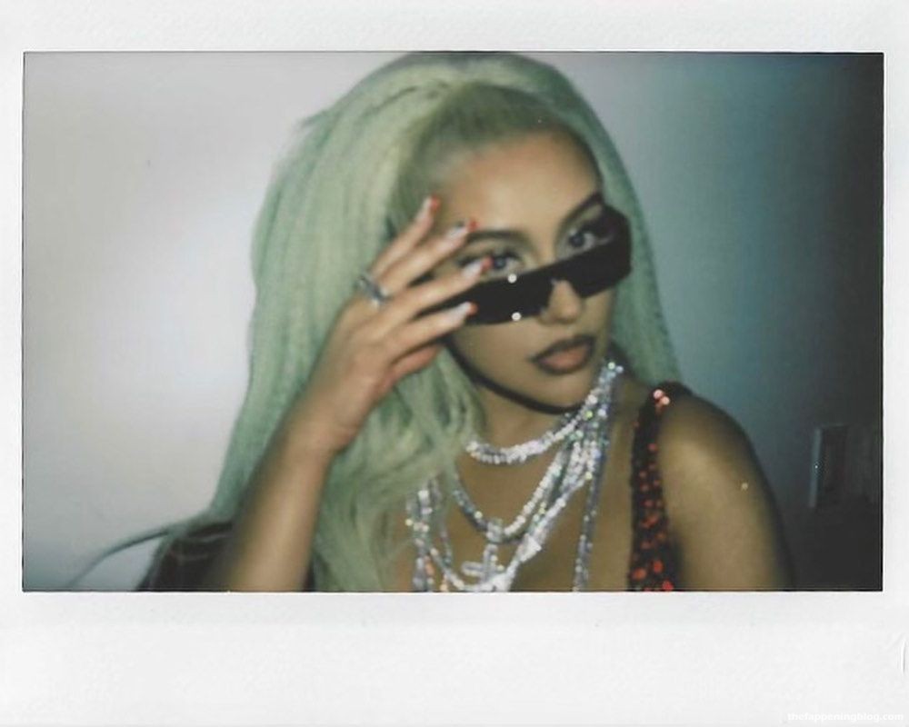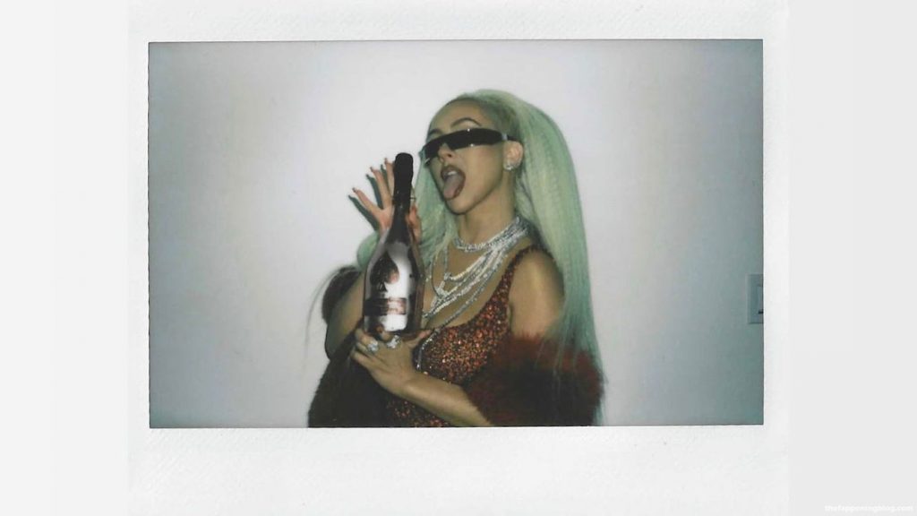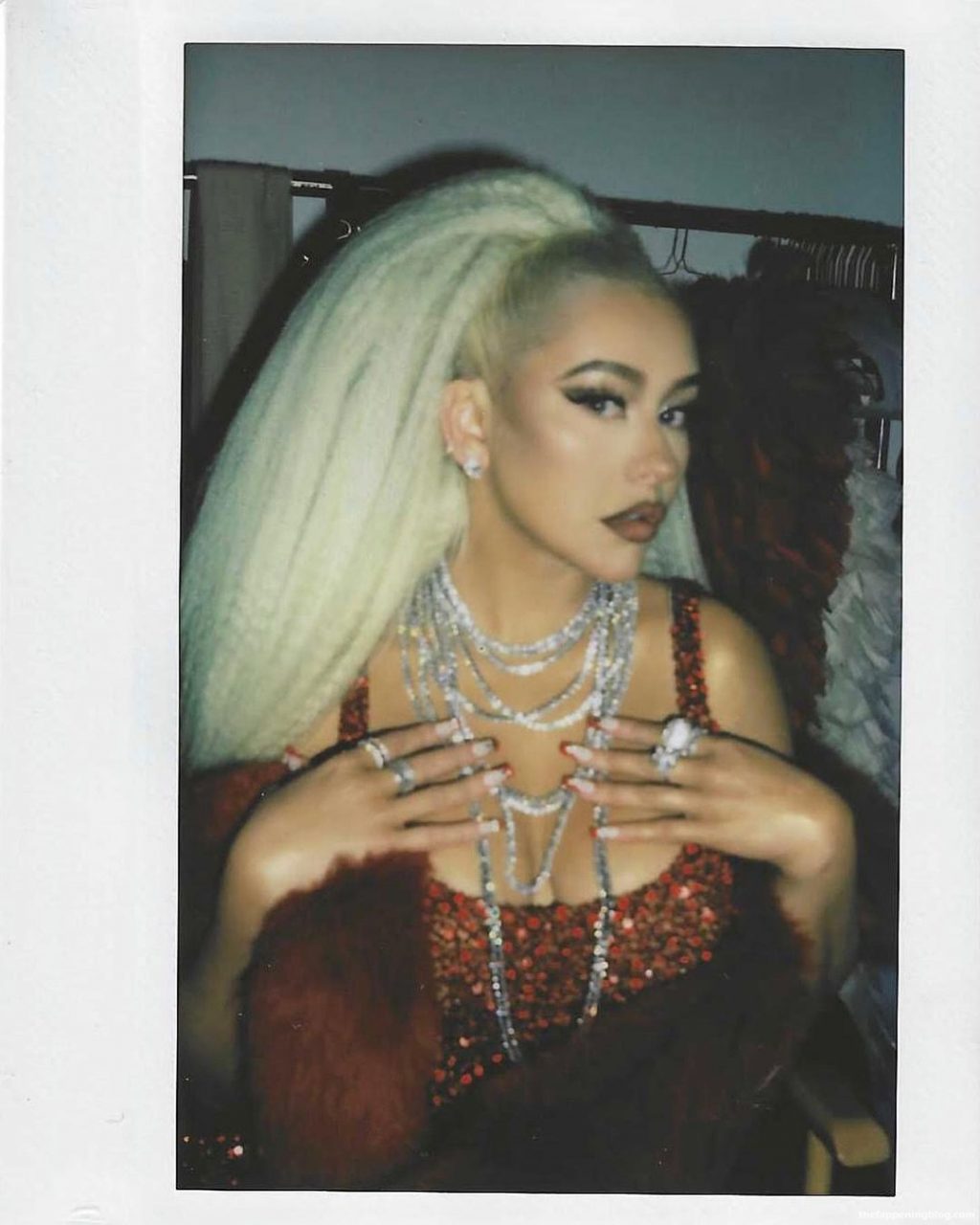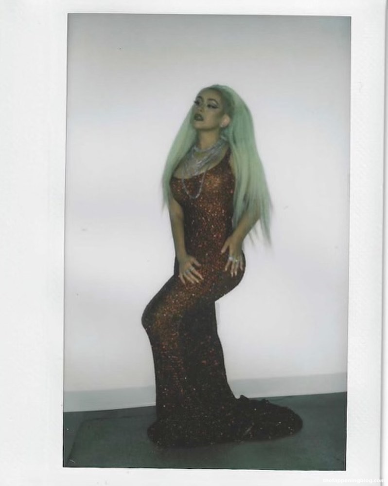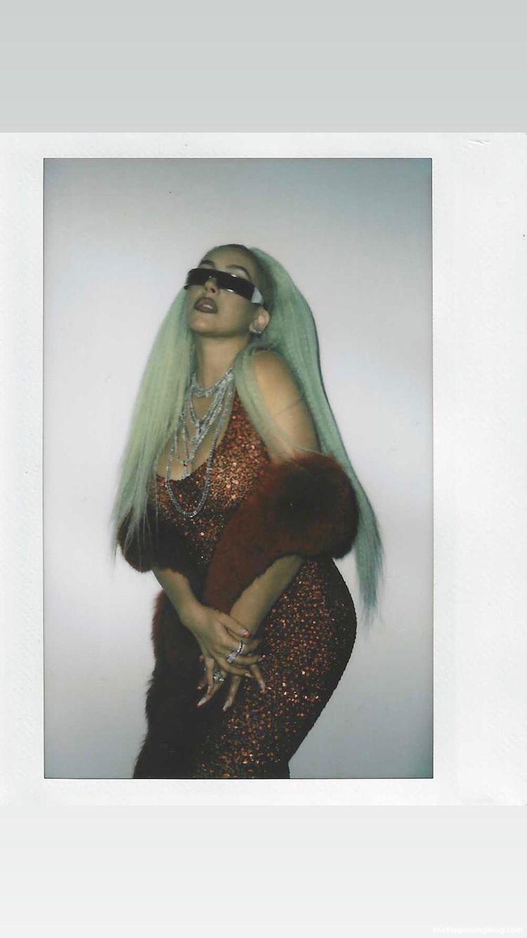 A cantora Christina Aguilera promove o serviço SmashUps, exibindo seu belo decote em um vestido vermelho – Instagram, 05/10/2021. Um bom presente são seus seios nus!