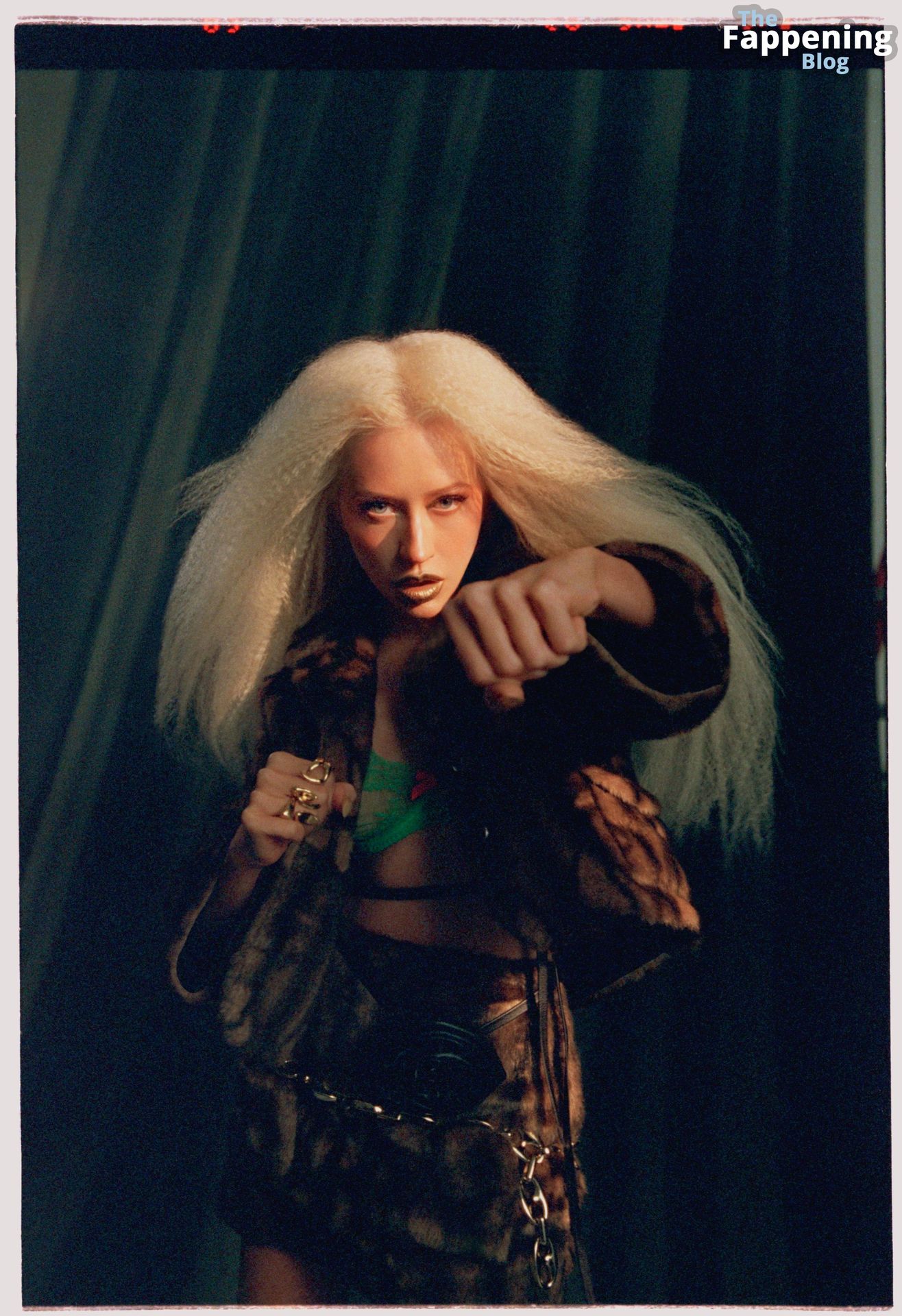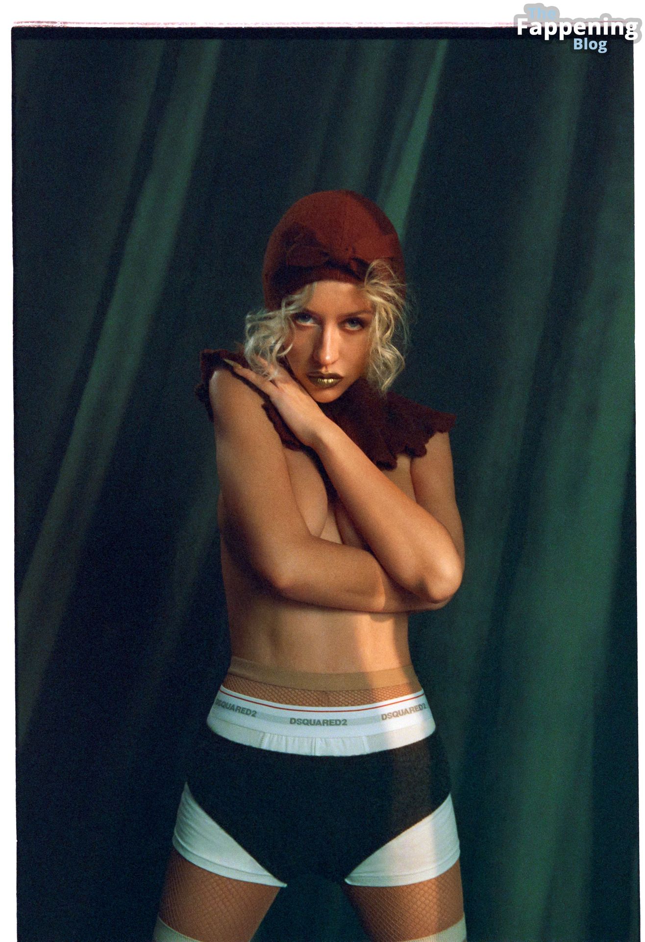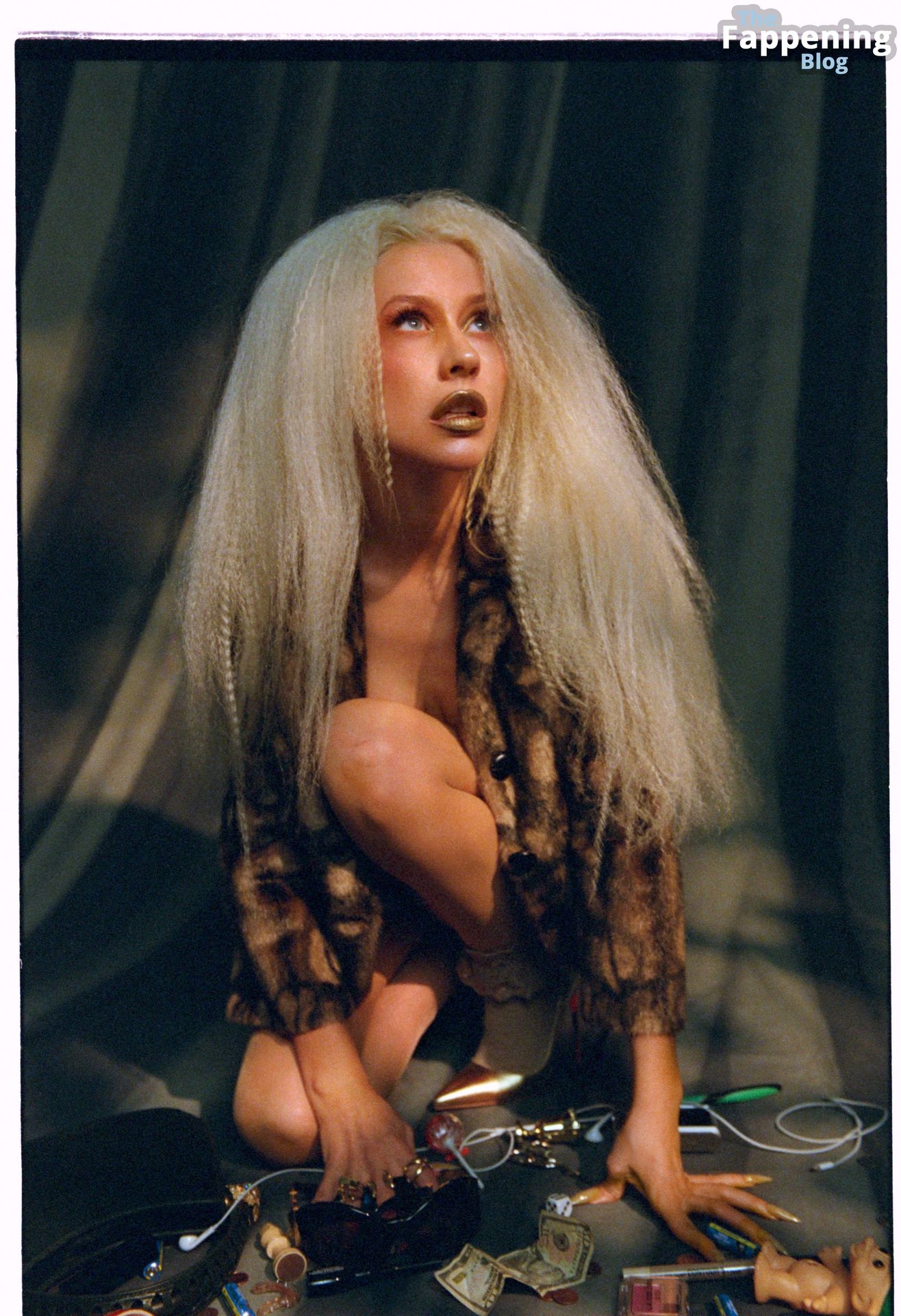 Nas fotos dos bastidores do ensaio, Aguilera entrega vibes selvagens e inesperadas. É difícil decidir o que chama mais atenção: suas poses estranhas e reveladoras ou os looks ousados que mal cobrem seu corpo. Em um momento, Xtina está topless, cobrindo os seios apenas com as mãos, e ela encara isso como se não fosse nada estar meio nua na frente das câmeras.