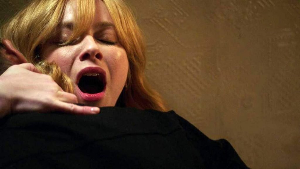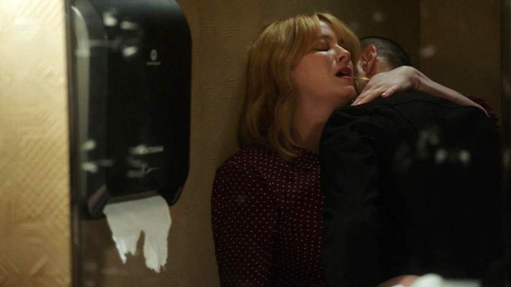 Assista à cena de sexo não nua de Christina Hendricks em “Good Girls” (2019) Temporada 2 Episódio 4 (s02e04), onde você pode ver uma pequena parte dos seus seios (decote), calcinha e gemidos durante o sexo no banheiro.
