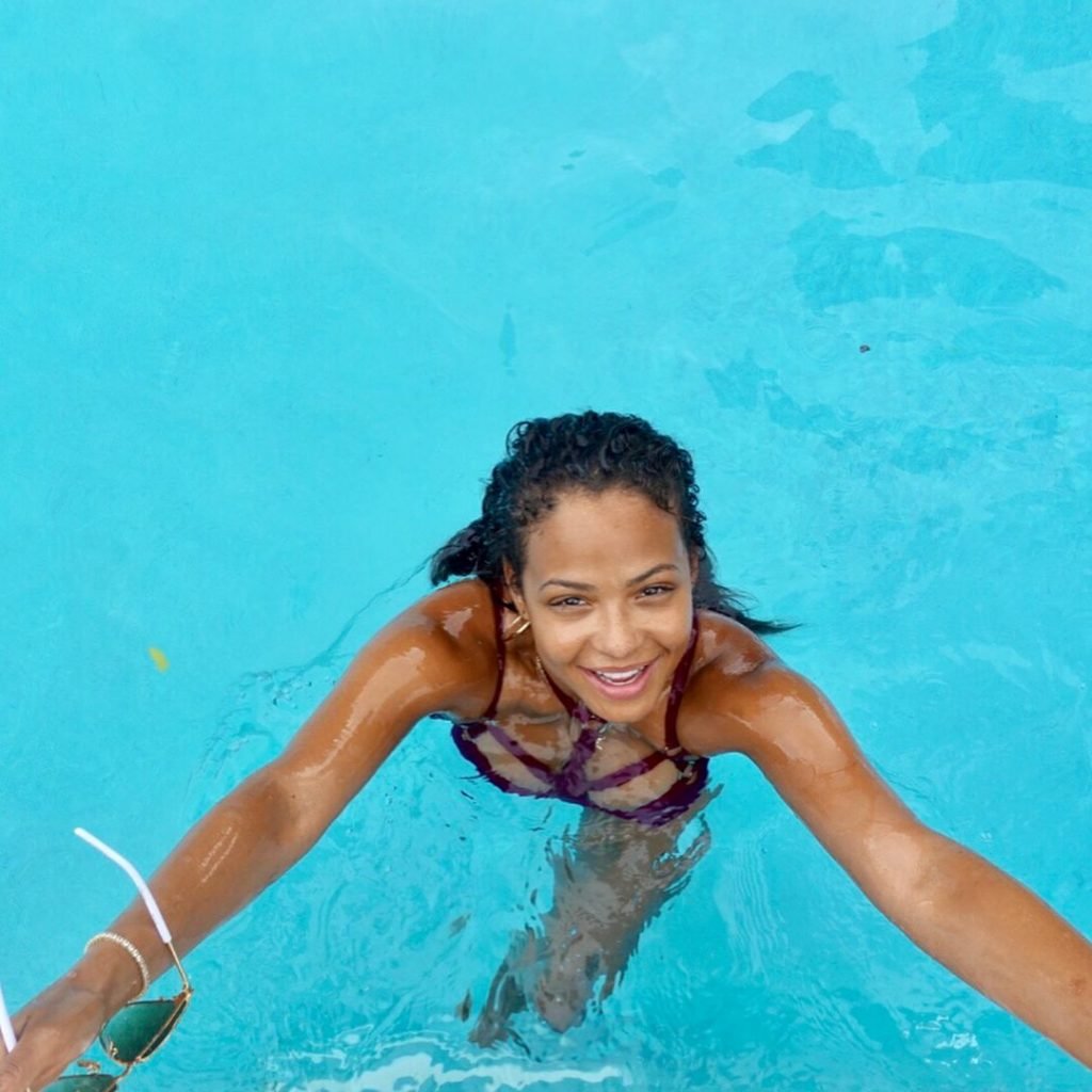 A atriz Christina Milian aproveita um dia na piscina em South Beach, 13/07/2017.