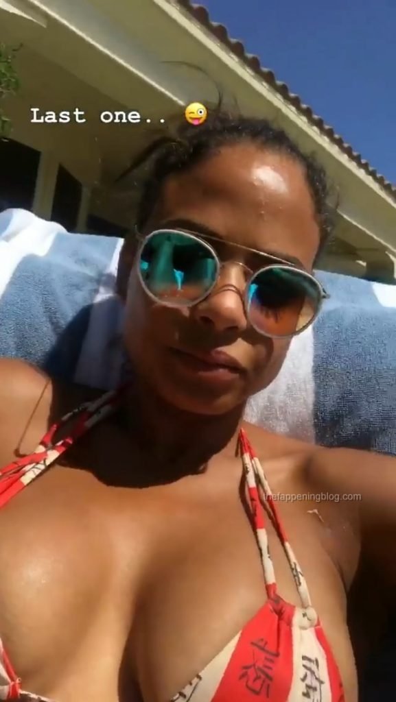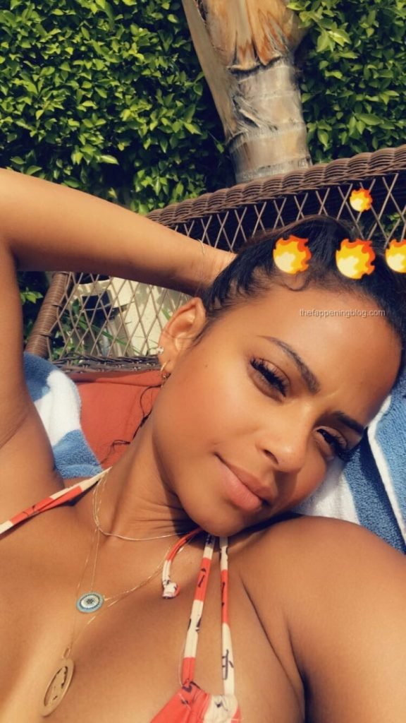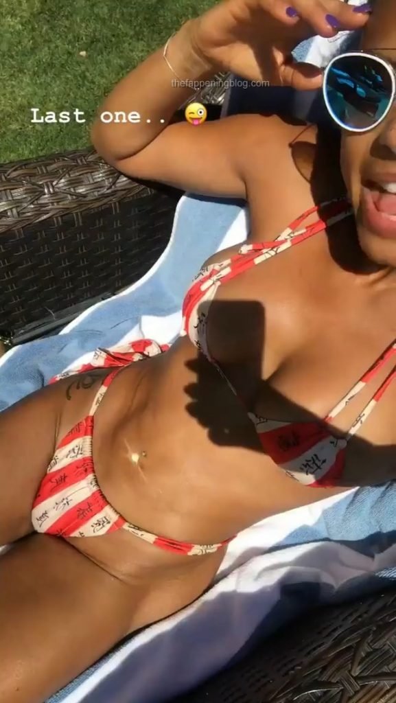 Christina Milian usa um biquíni minúsculo vermelho e branco no sul da Califórnia – Instagram, 21/04/2018. Christina Milian (Christine Marie Flores) é uma atriz americana (Mixtape (Filme para TV)). Idade – 36 anos.