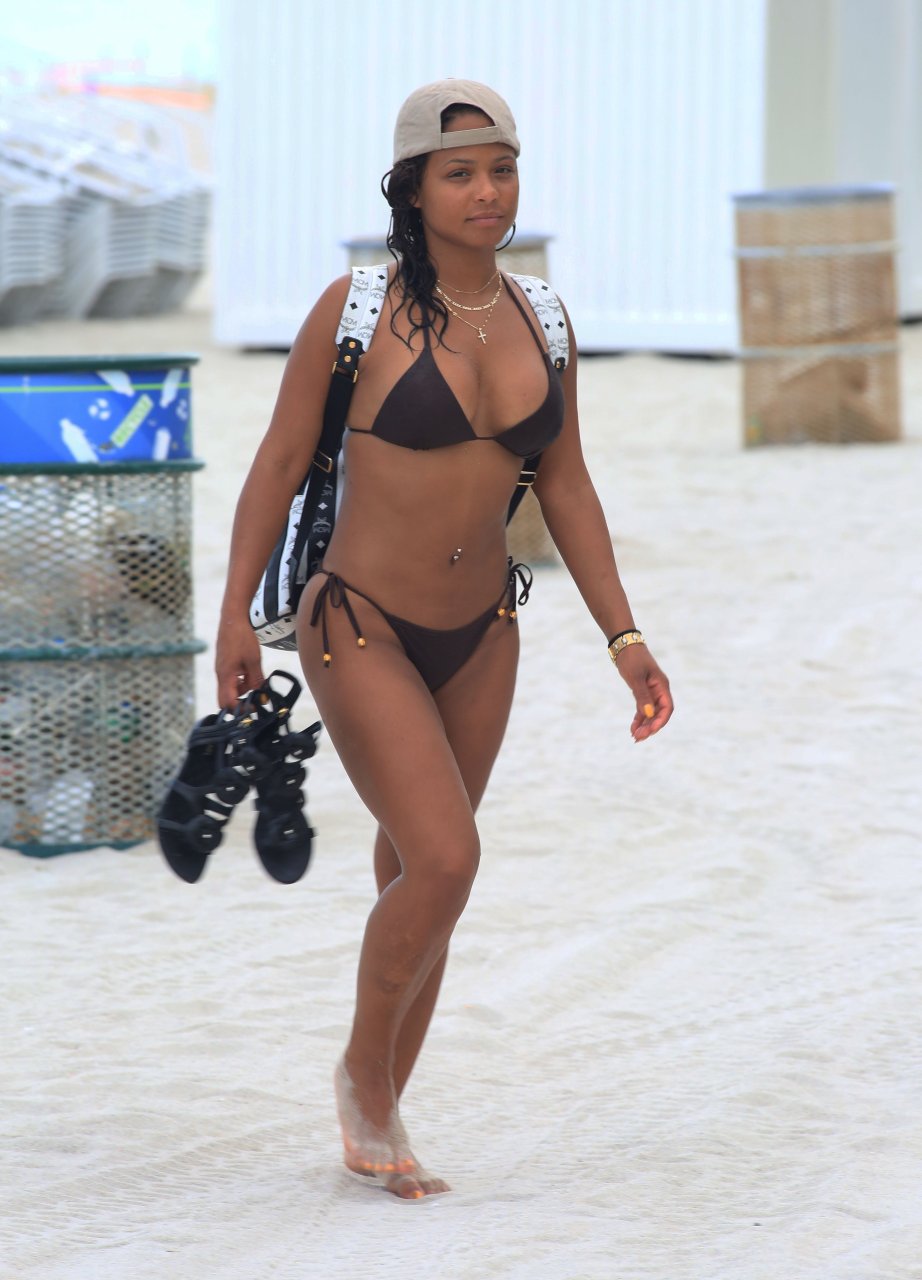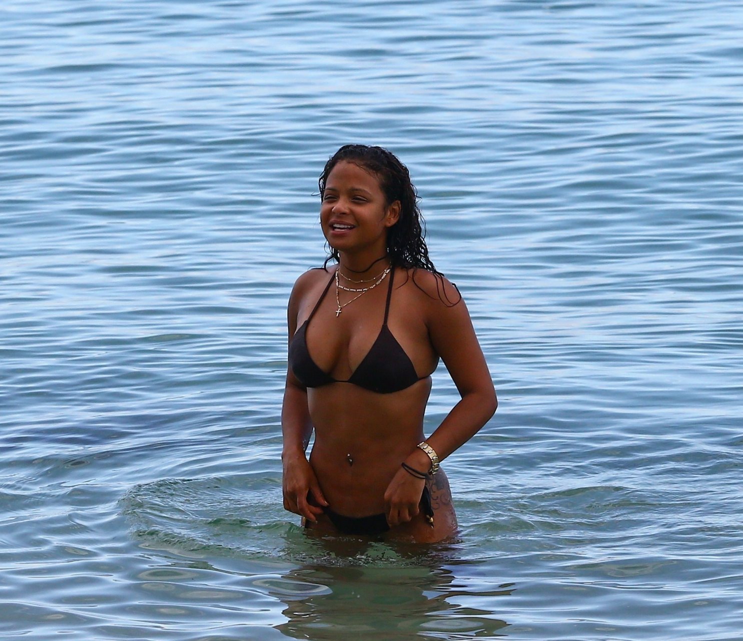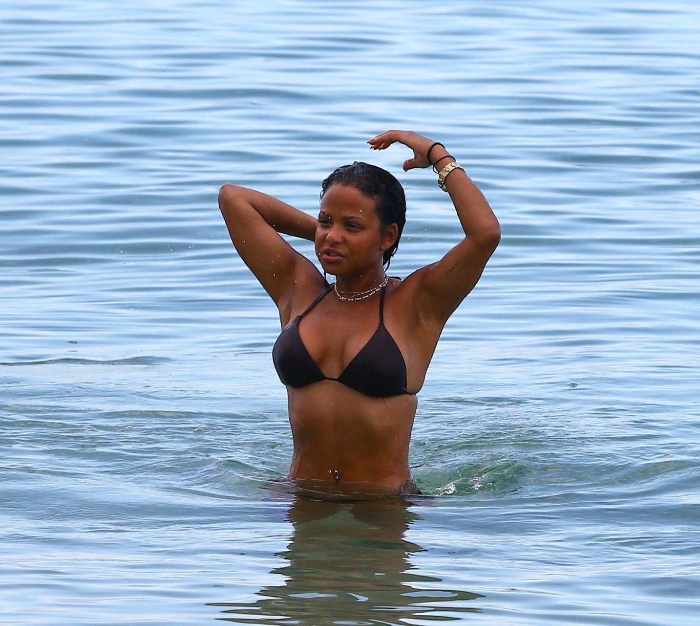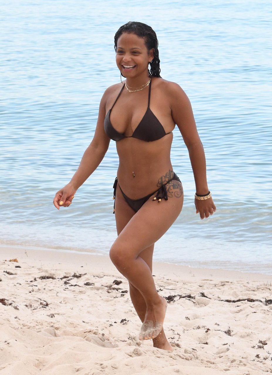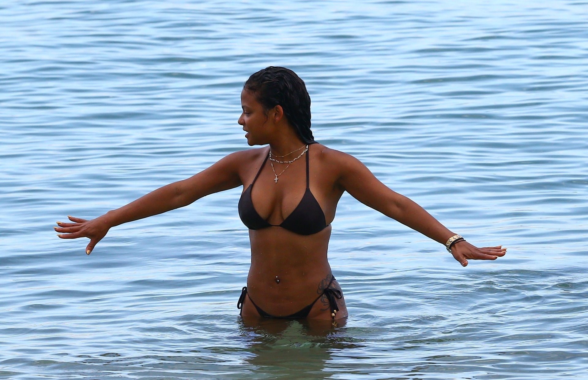 A atriz Christina Milian passa um tempo com sua família na praia em Miami, 18/07/2017.