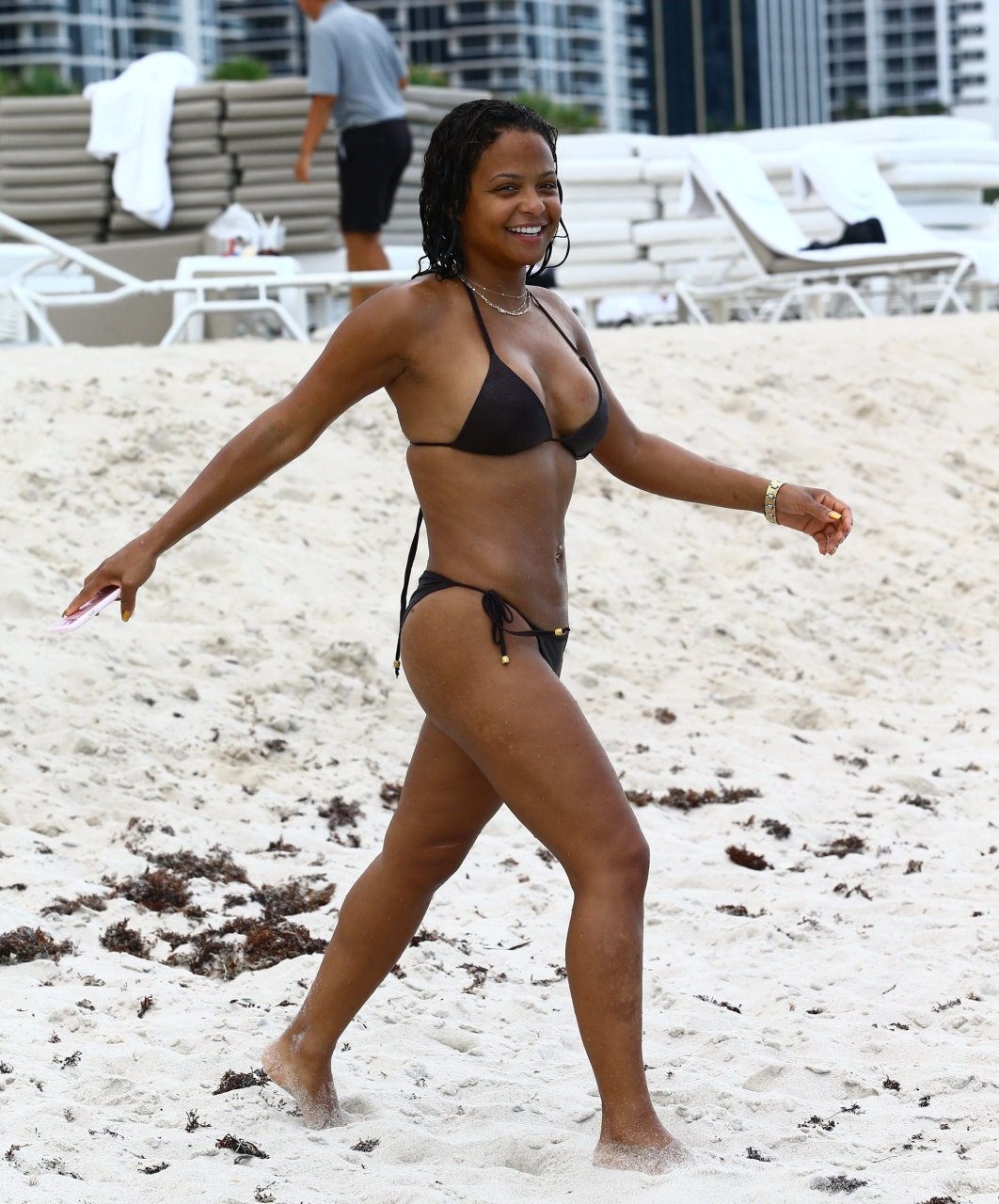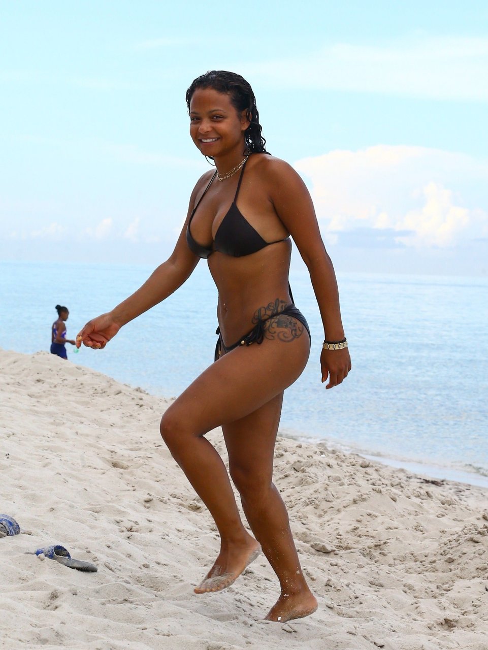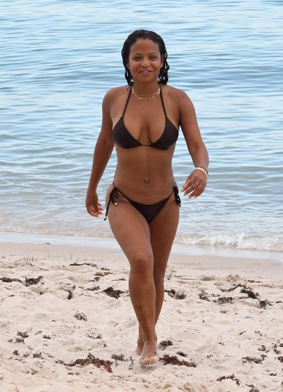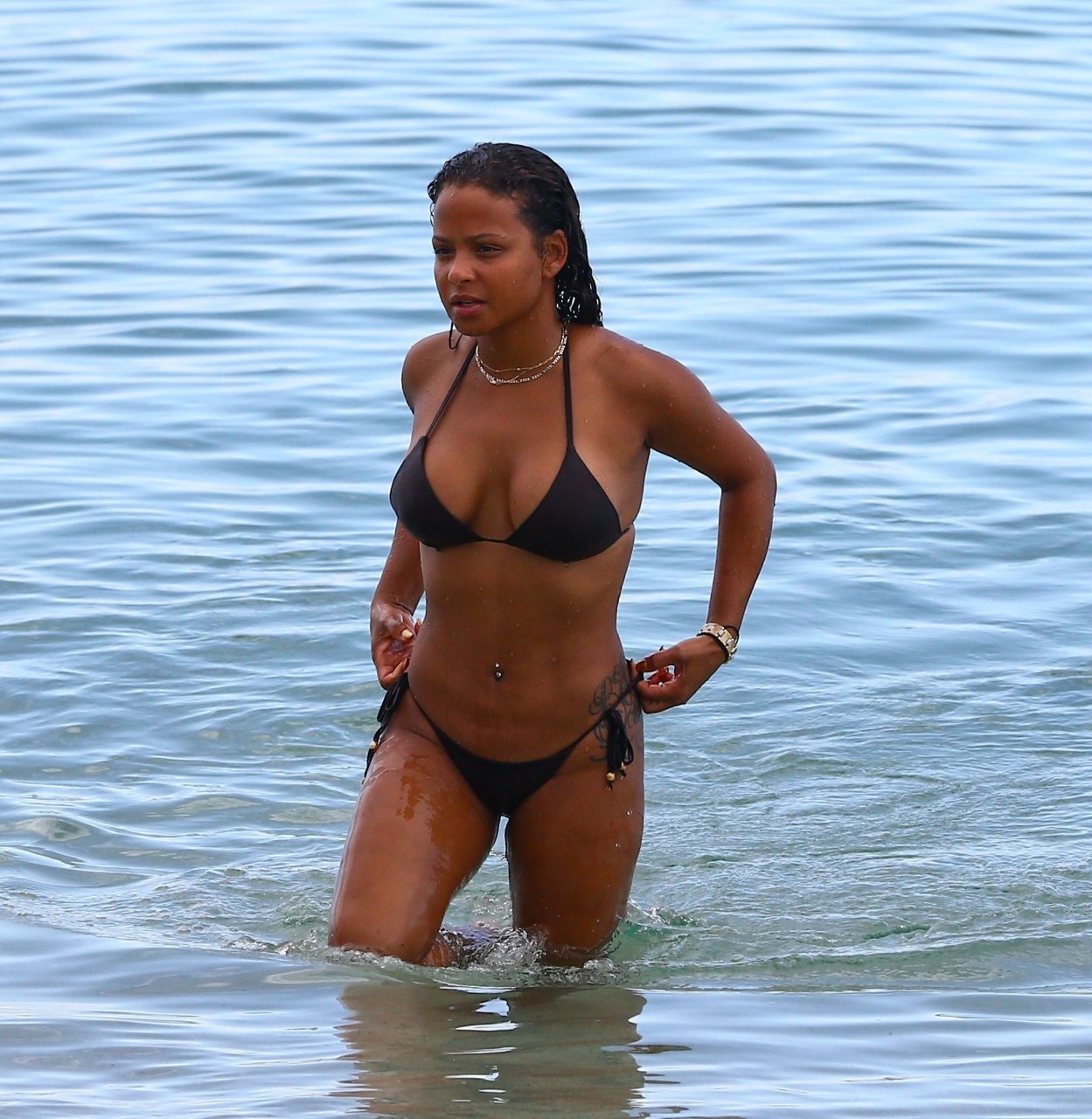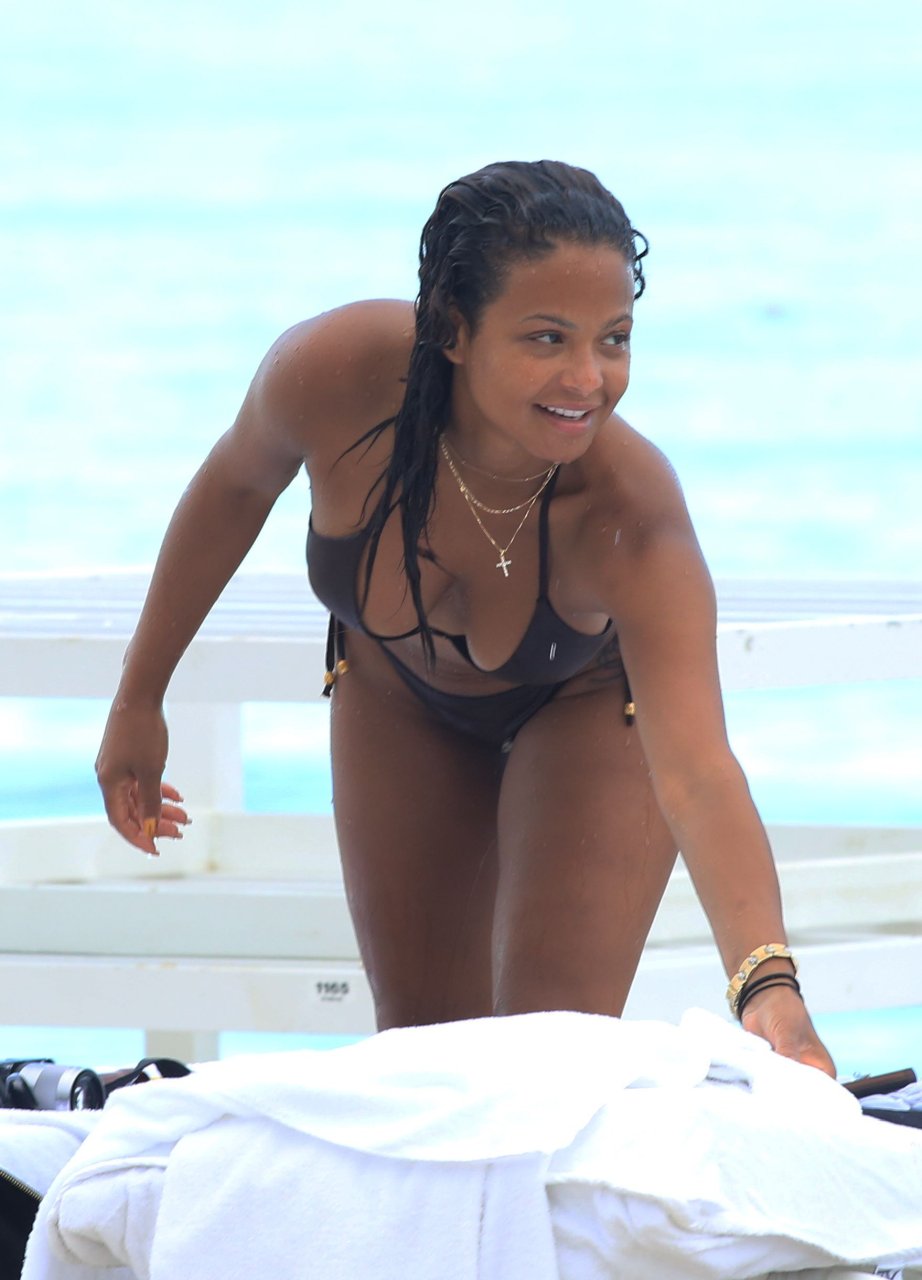 A atriz Christina Milian passa um tempo com sua família na praia em Miami, 18/07/2017.