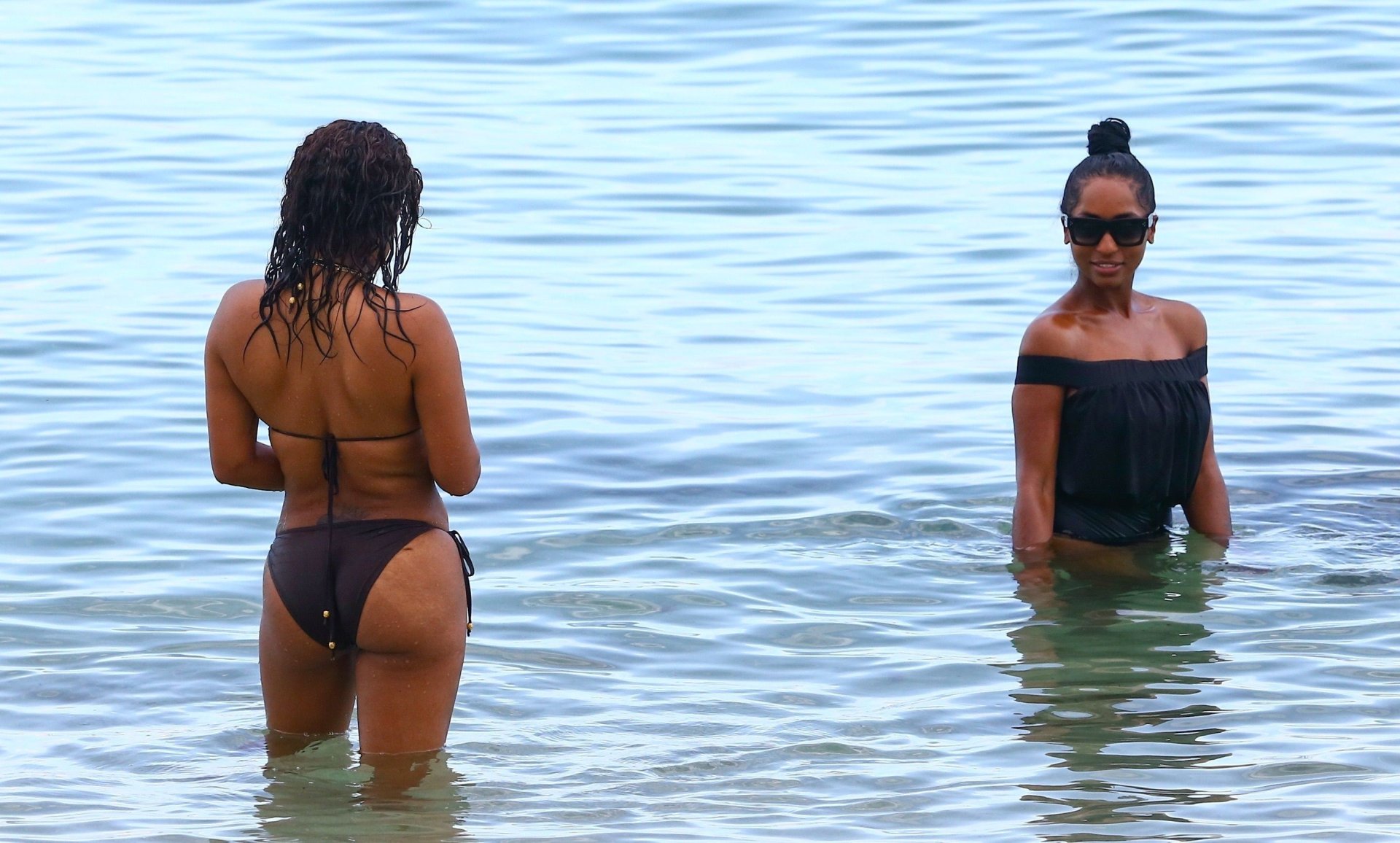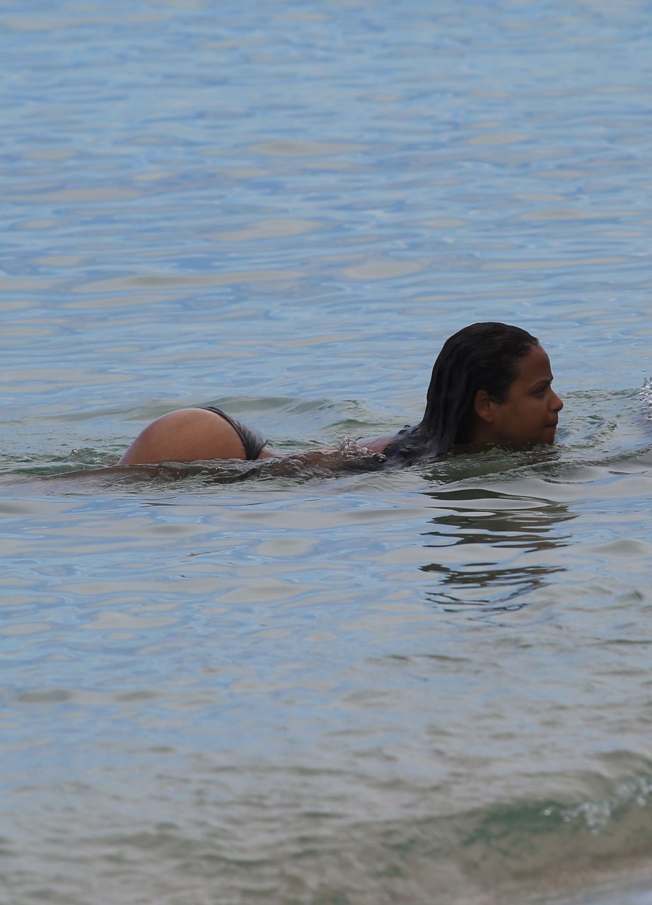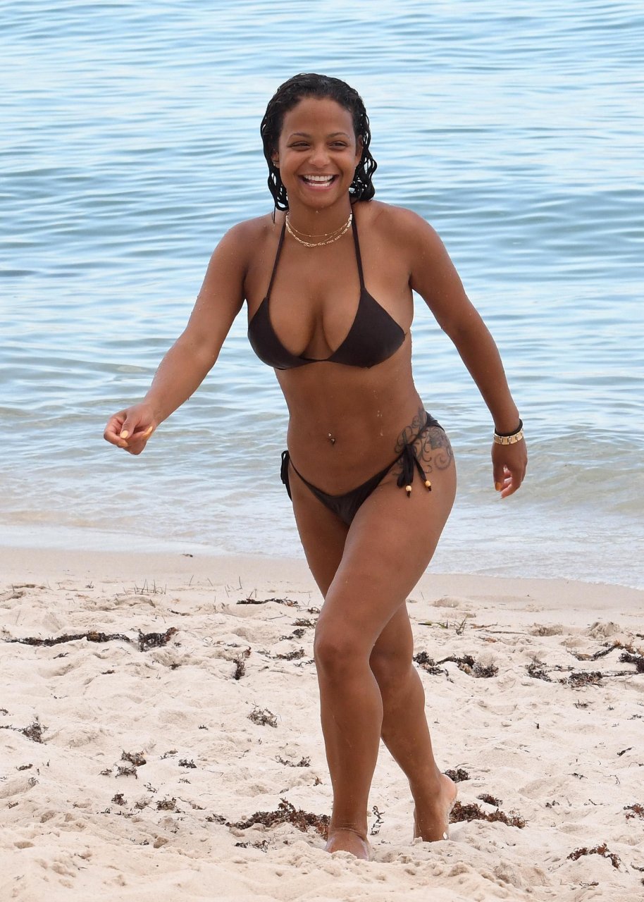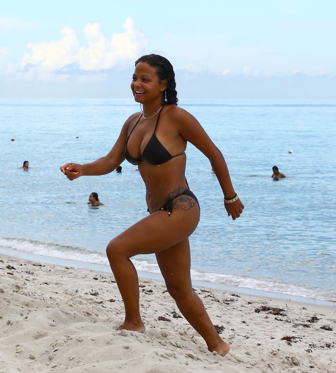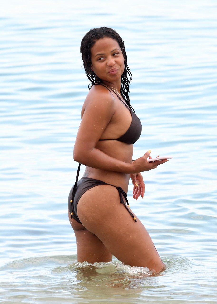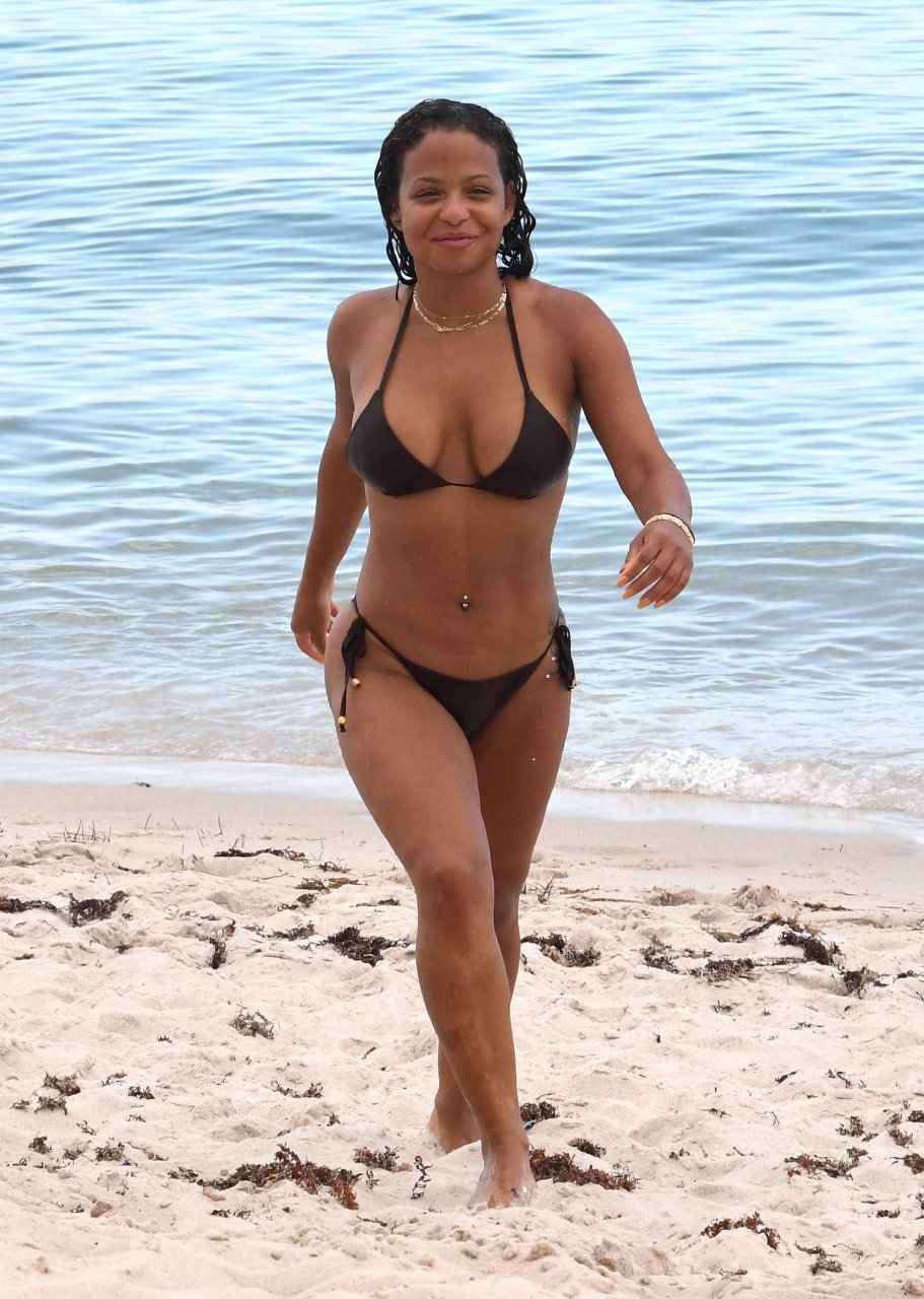 A atriz Christina Milian passa um tempo com sua família na praia em Miami, 18/07/2017.