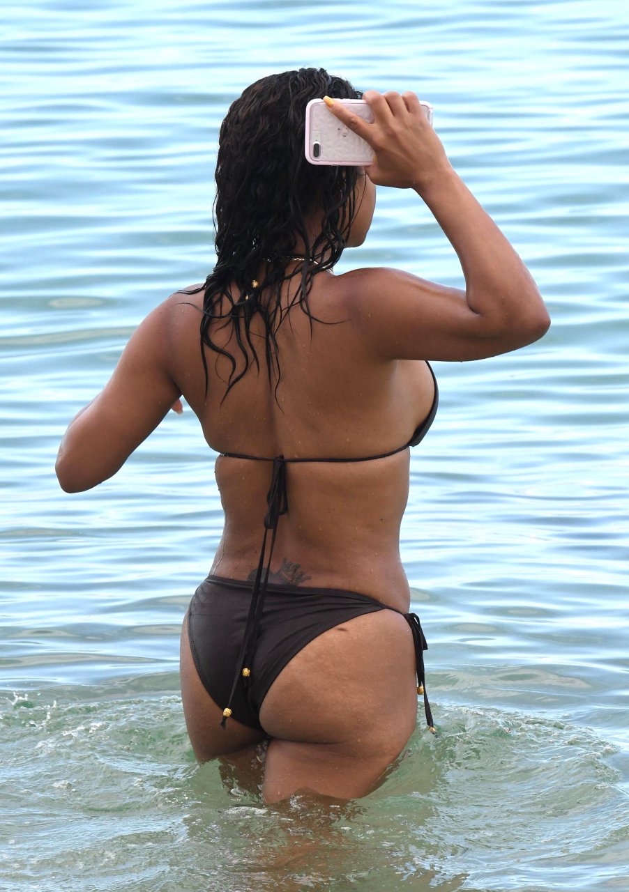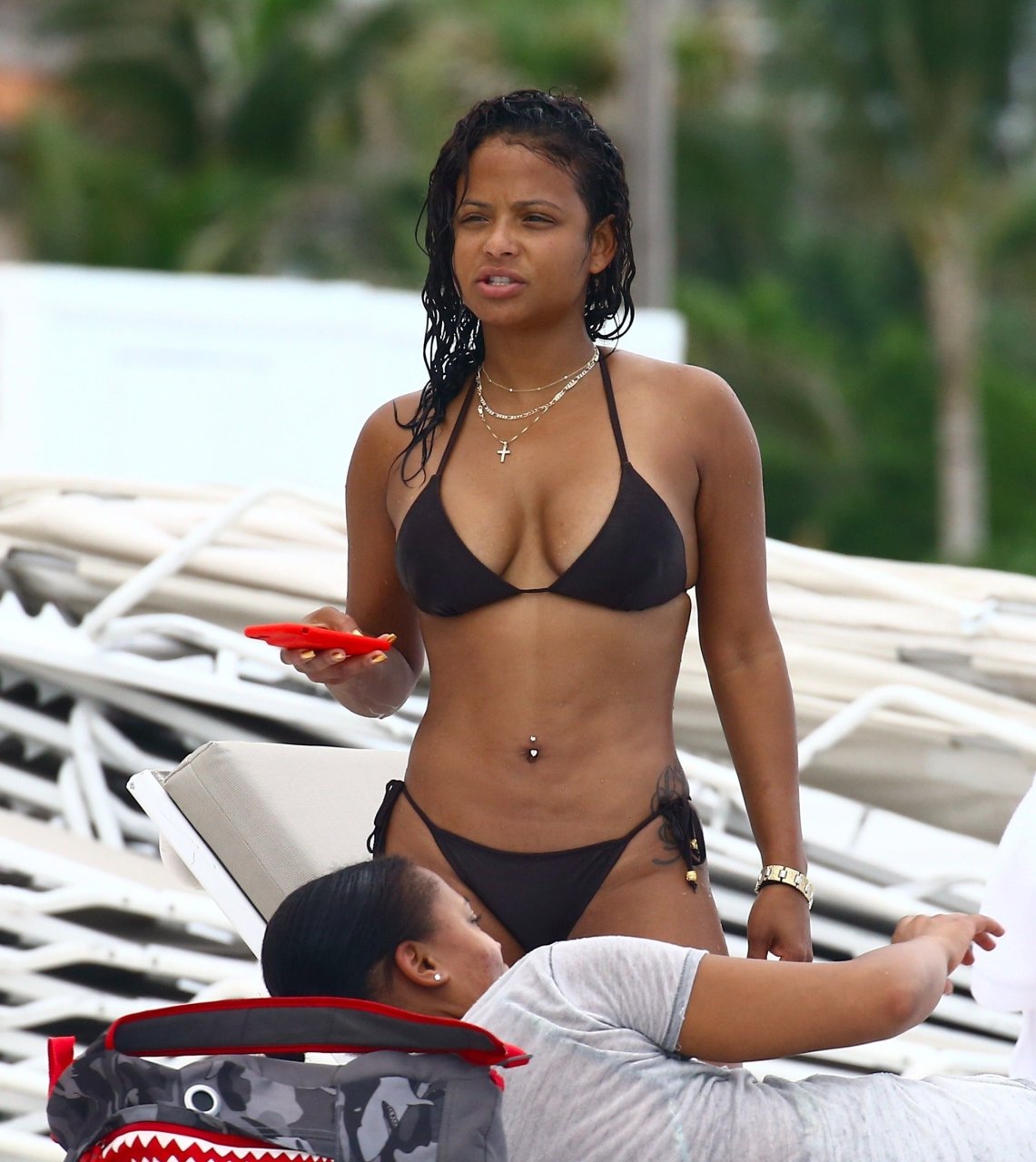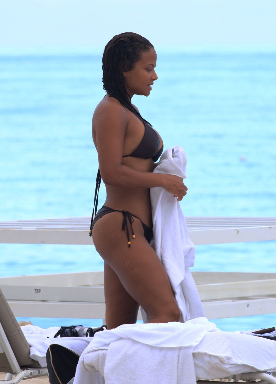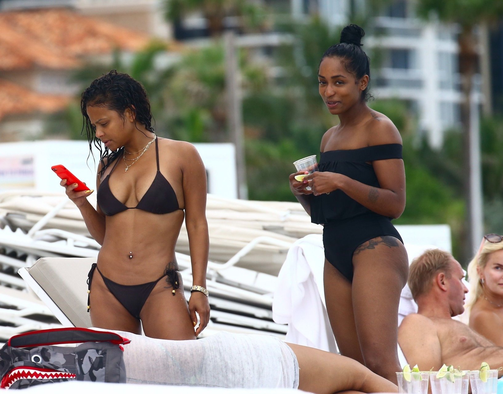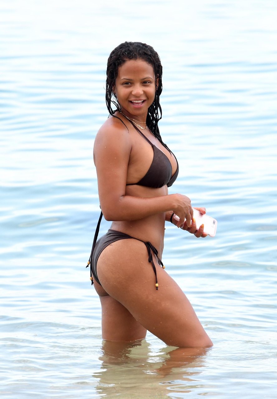A atriz Christina Milian passa um tempo com sua família na praia em Miami, 18/07/2017.
