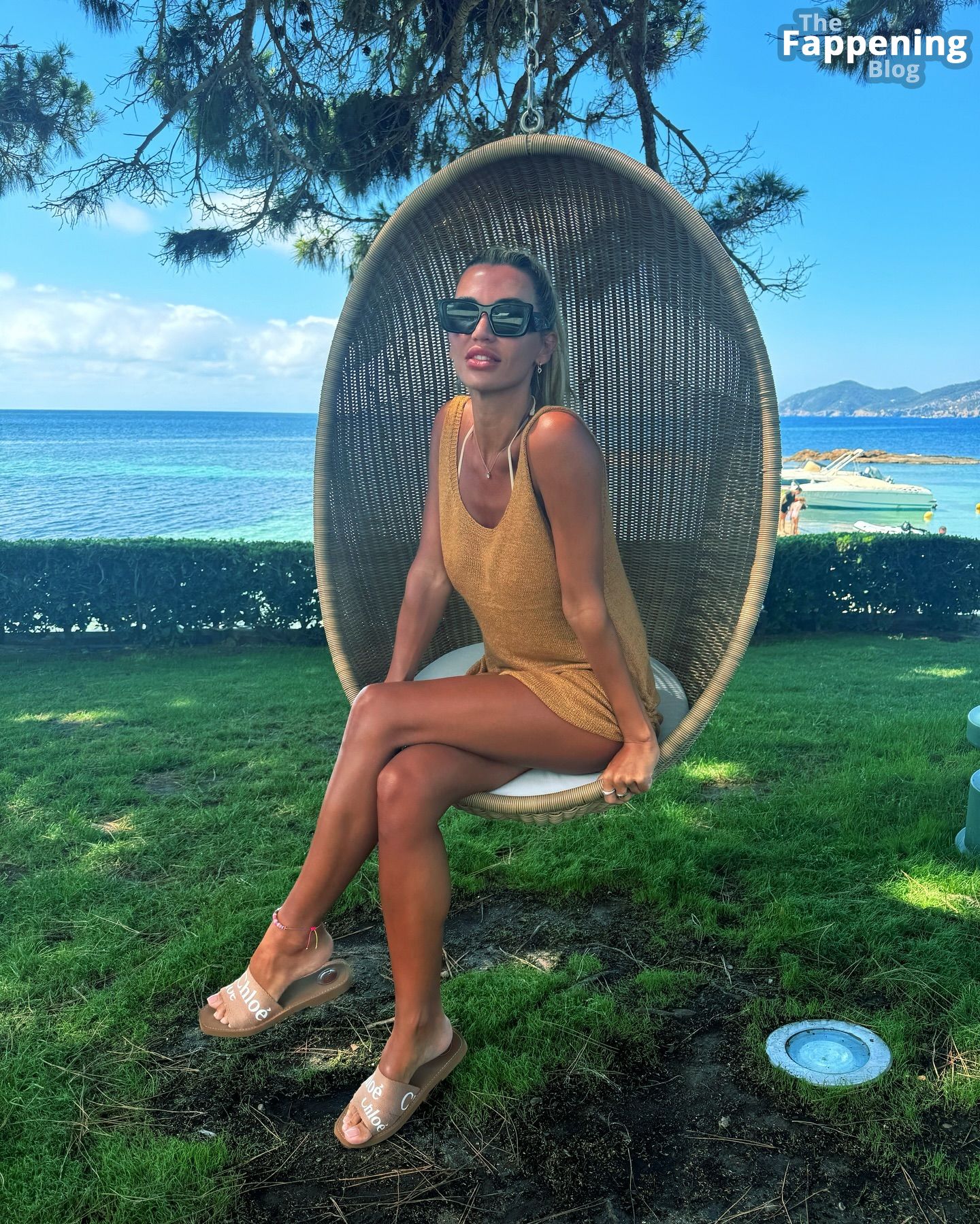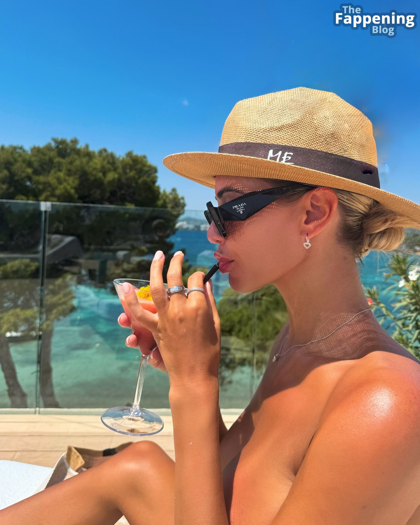 A ex-estrela de reality show Christine McGuinness acabou de postar algumas fotos semi-nuas dela tomando sol sem biquíni no ME Ibiza Hotel.