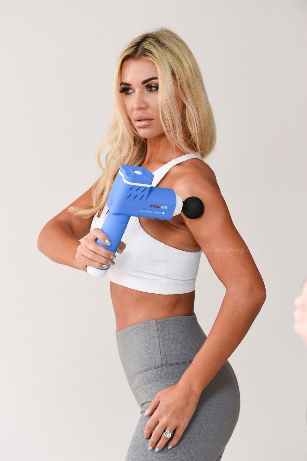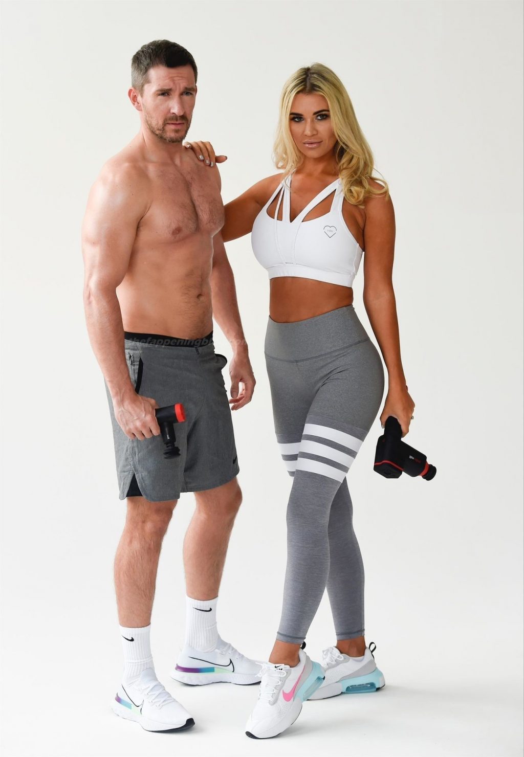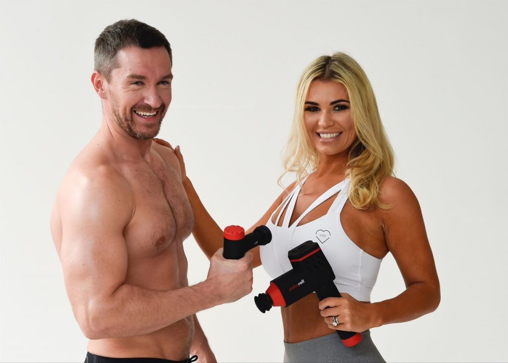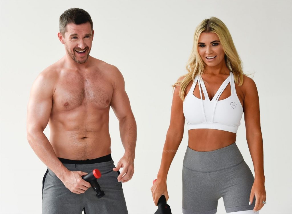 Modelo britânica e ex-estrela de Real Housewives of Cheshire, Christine McGuinness exibe seu corpo incrível em uma sessão de fotos com Anthony Quinlan para sua linha de roupas de academia My Vibe e pistola de massagem Pulse Roll em Manchester, 23/12/2020.