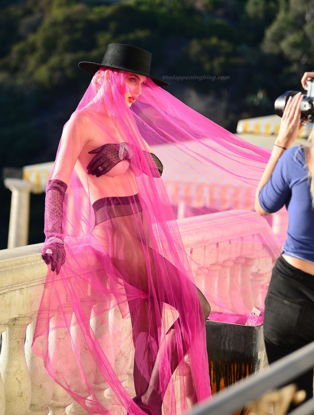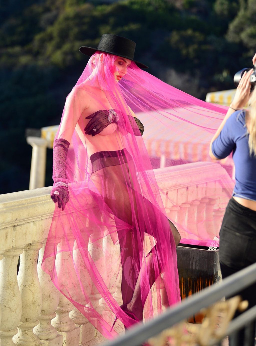 Confira as imagens BTS da estrela de “Selling Sunset”, Christine Quinn, durante uma sessão de fotos inspirada em temas ousados com o fotógrafo Sonny Matson na famosa vila Chateau Rose em Bel Air (2020).
