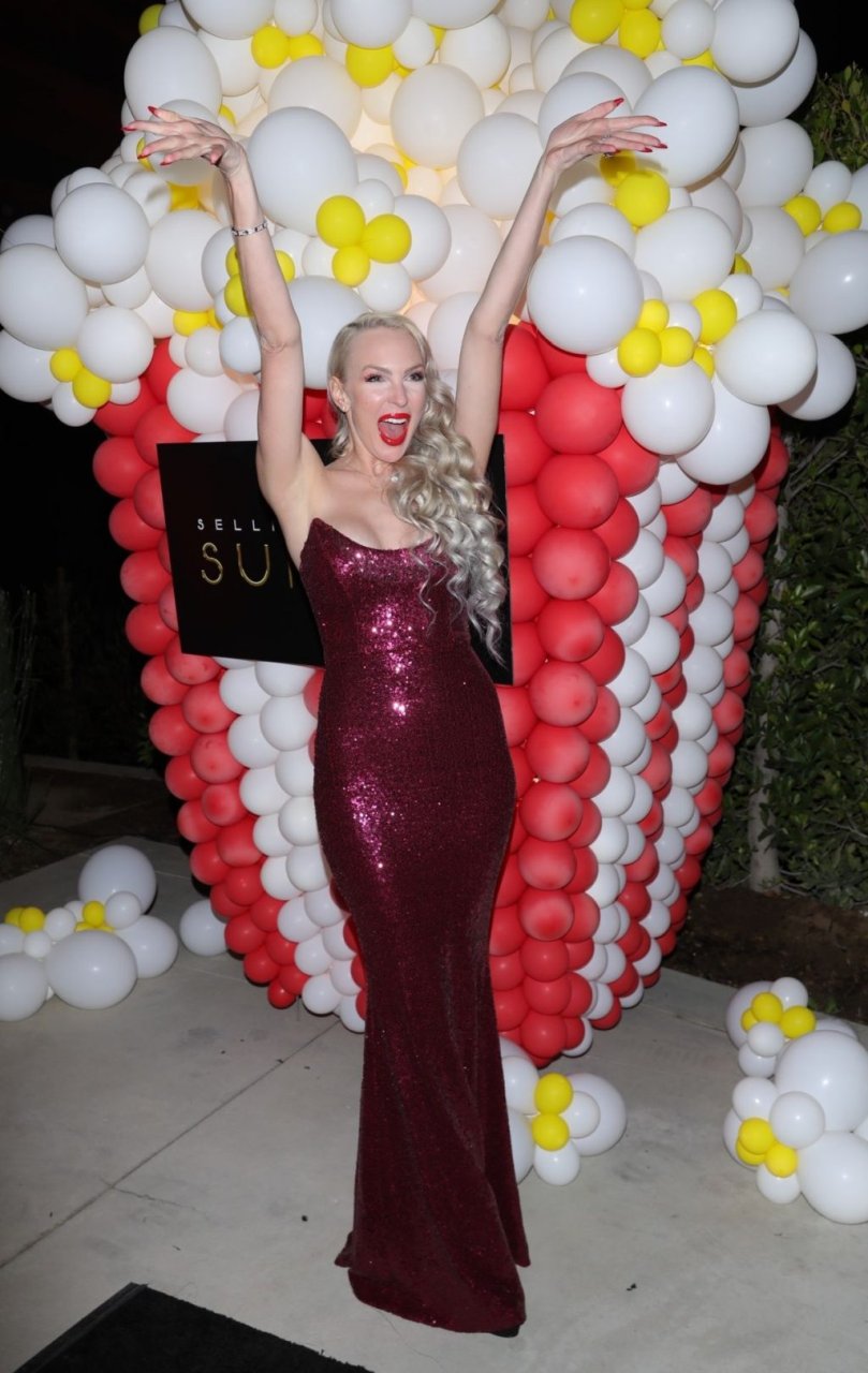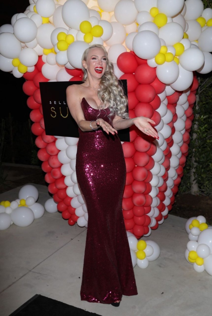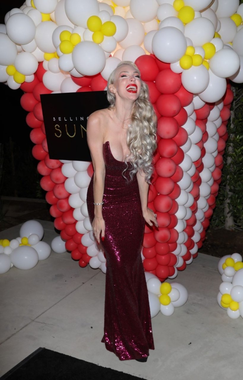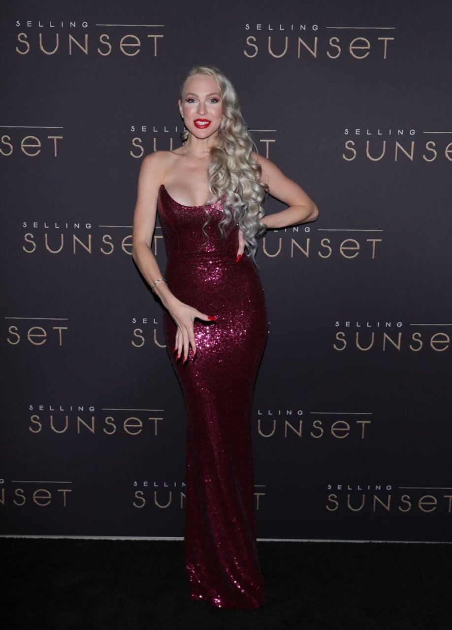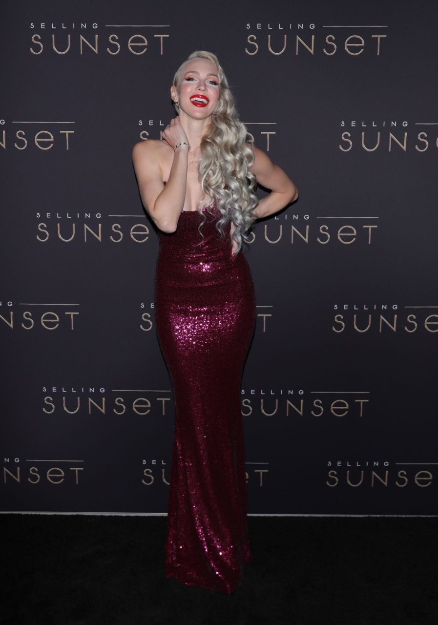 Christine Quinn impressiona com um vestido longo vermelho de paetês enquanto participa da sua festa de estreia em Hollywood, 22/03/2019. Christine Quinn apareceu no novo programa da Netflix “Selling Sunset”, mostrando a vida dos agentes imobiliários de elite do Oppenheim Group.