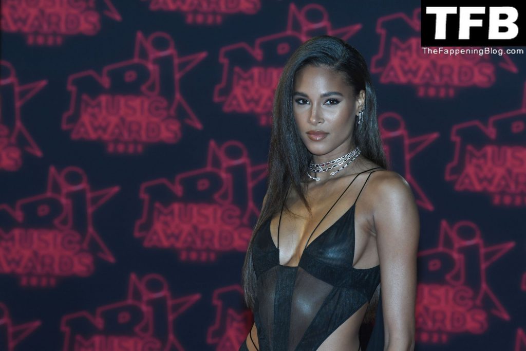 Modelo francesa Cindy Bruna posa no tapete vermelho antes da cerimônia do 23º NRJ Music Awards no Palais des Festivals em Cannes, sudeste da França, 20/11/2021.