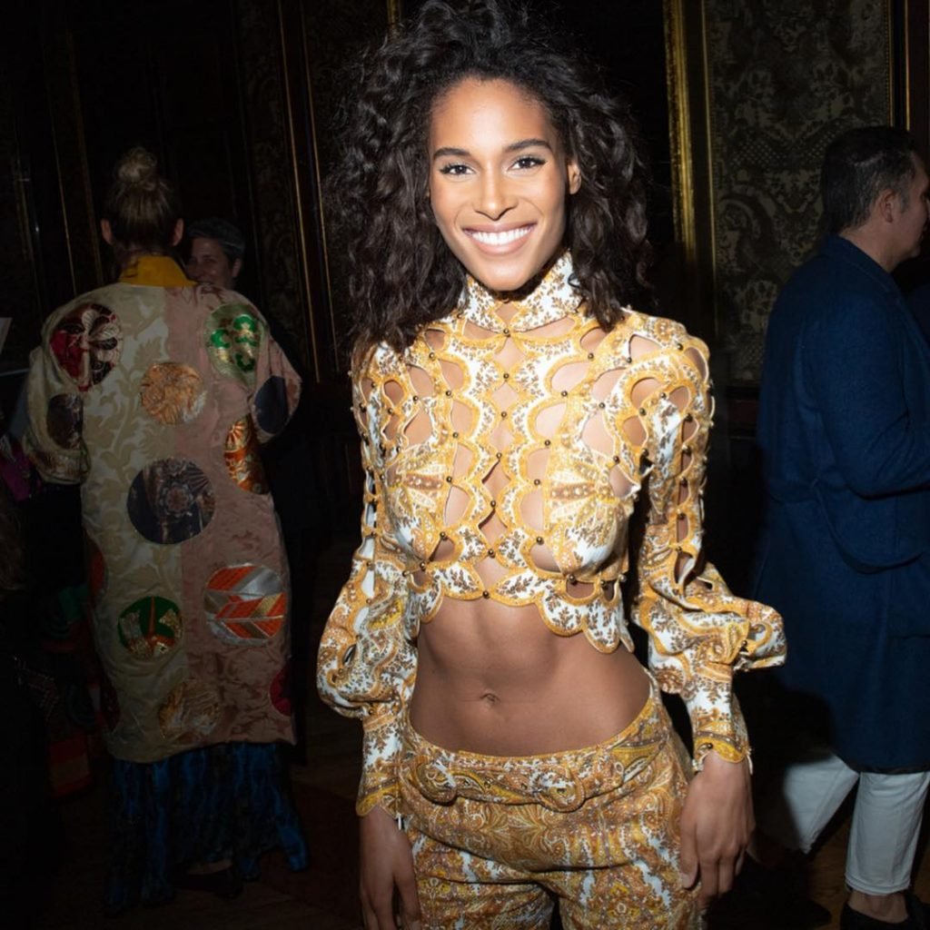 Model Cindy Bruna foi vista com uma blusa amarela sem sutiã no lançamento do Swarovski Book of Dreams Vol.2 e na festa de coquetel durante a Paris Fashion Week na França, 28/02/2019.