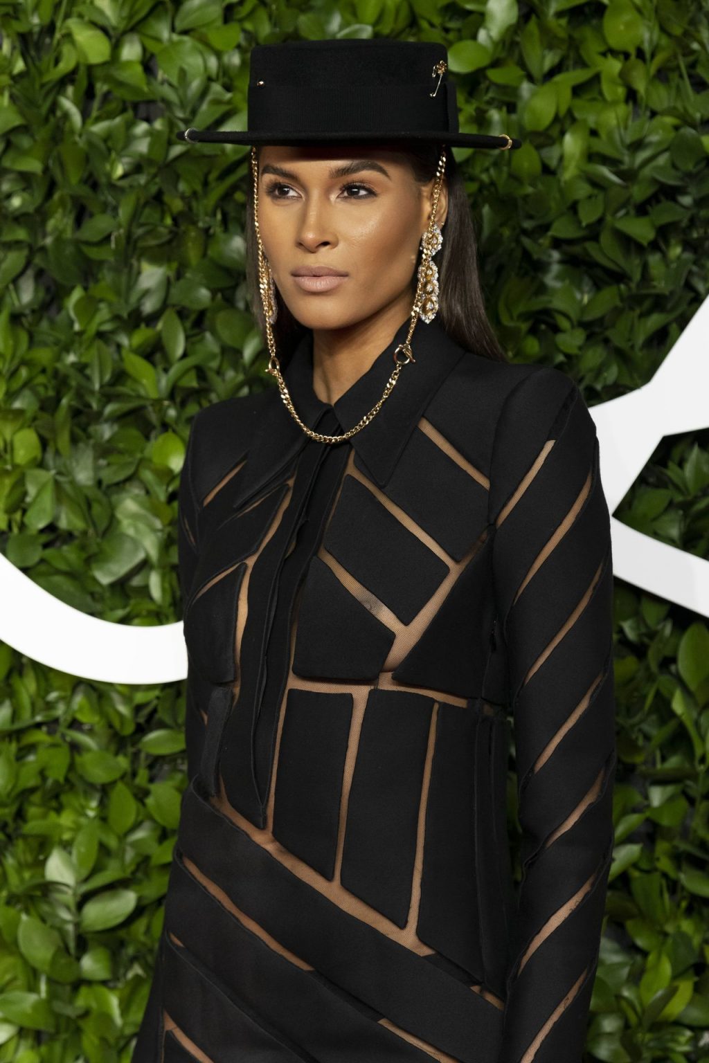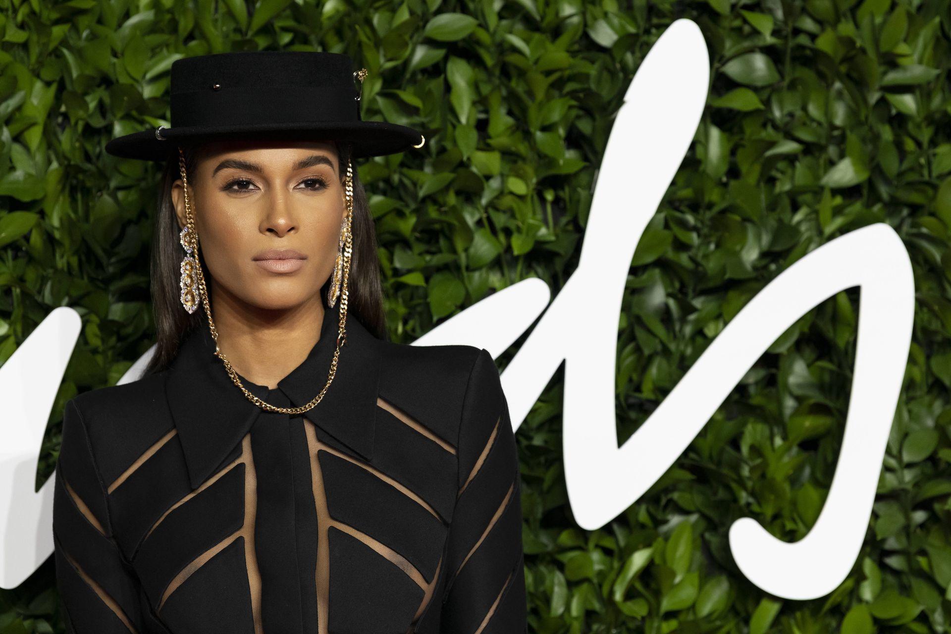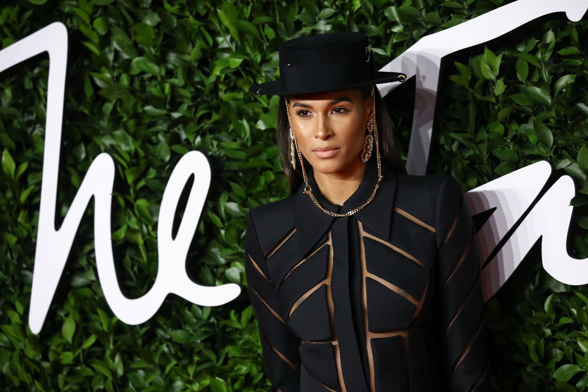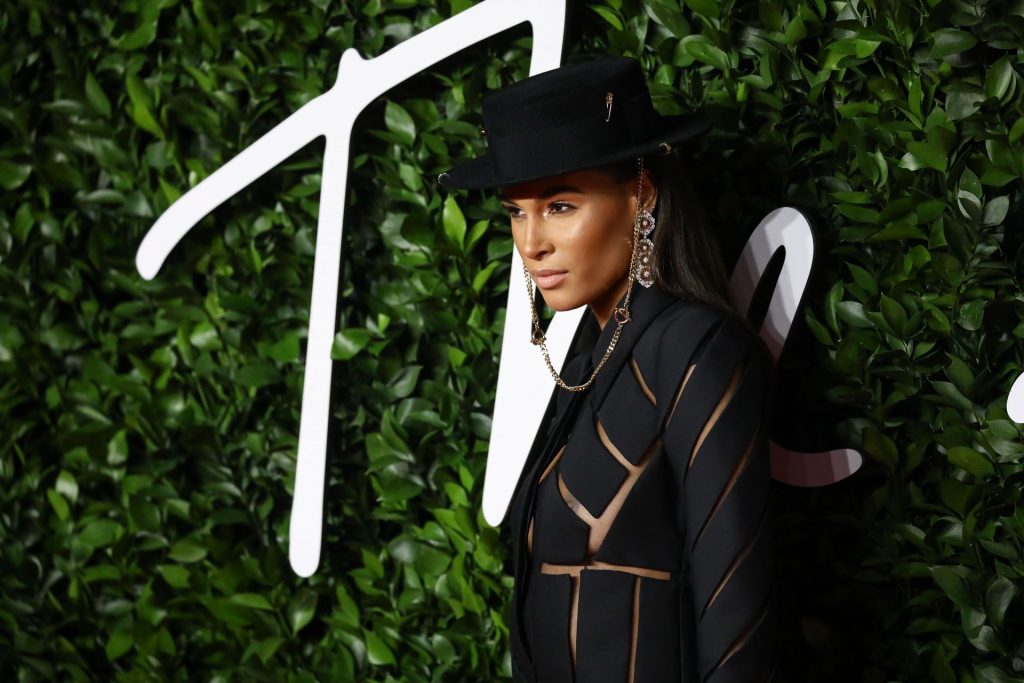 French top model Cindy Bruna (25) chega sem sutiã ao The Fashion Awards 2019 realizado no Royal Albert Hall em Londres, Inglaterra, 12/02/2019.