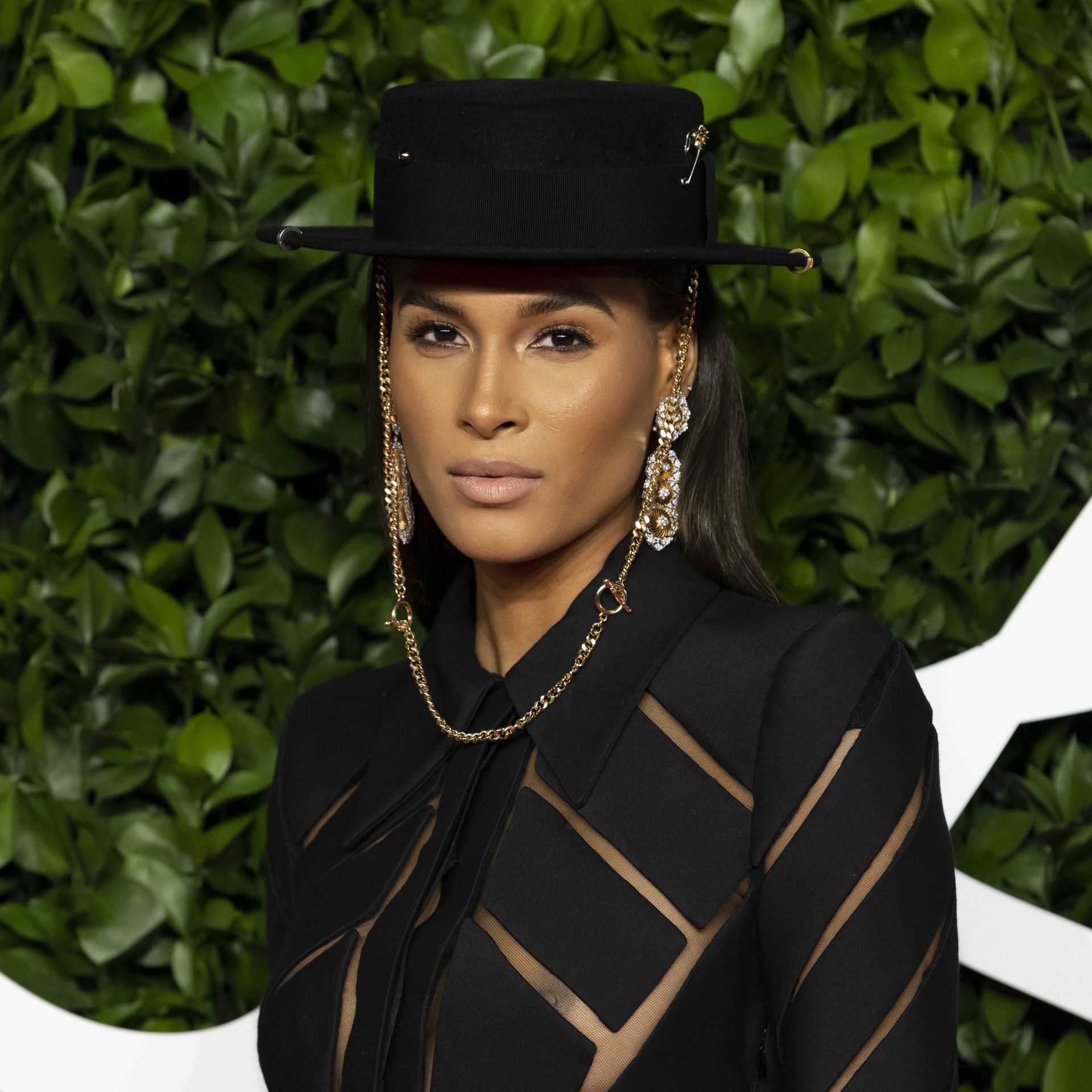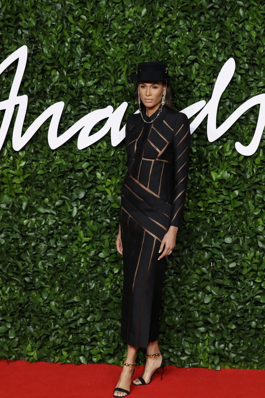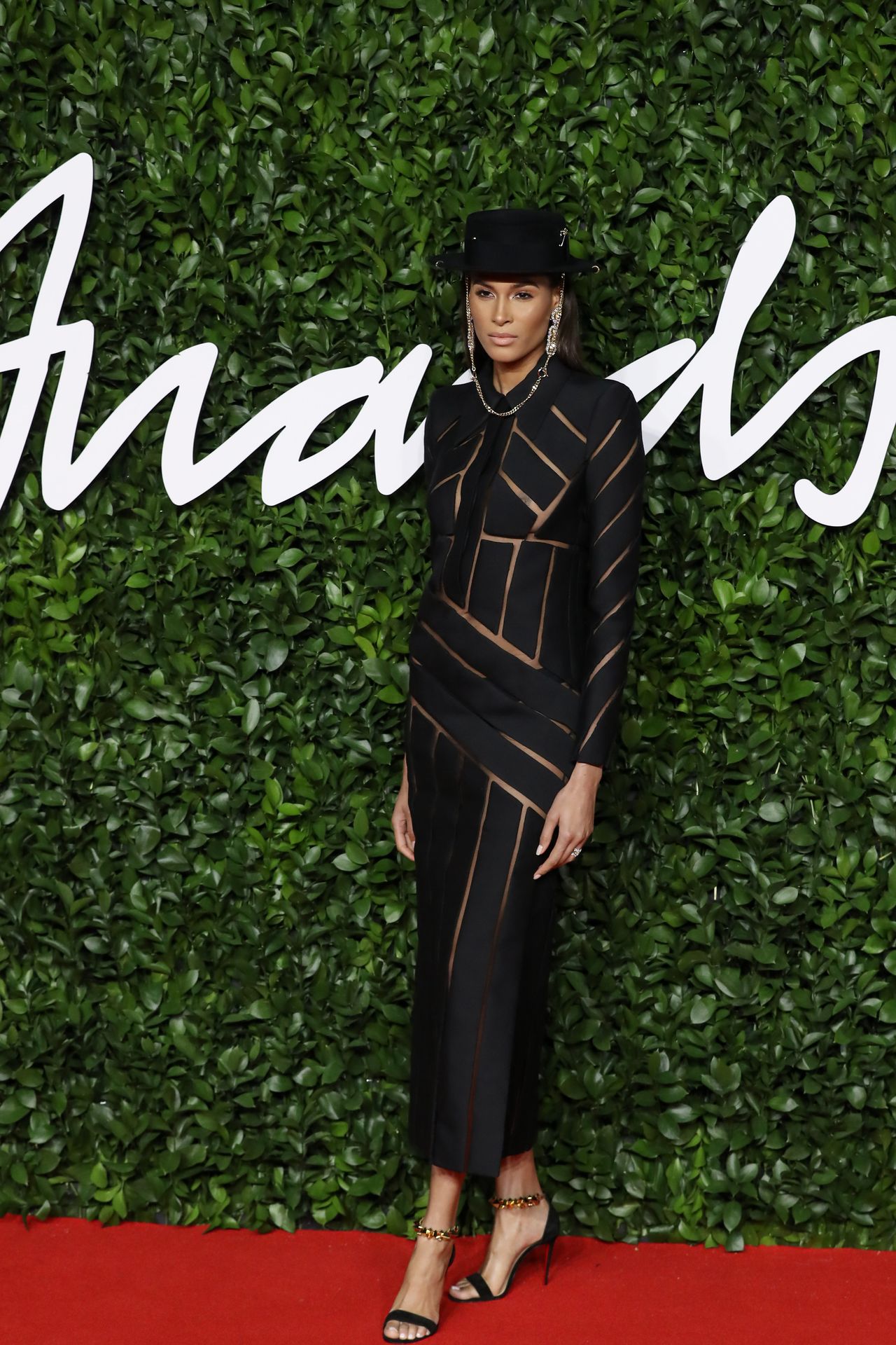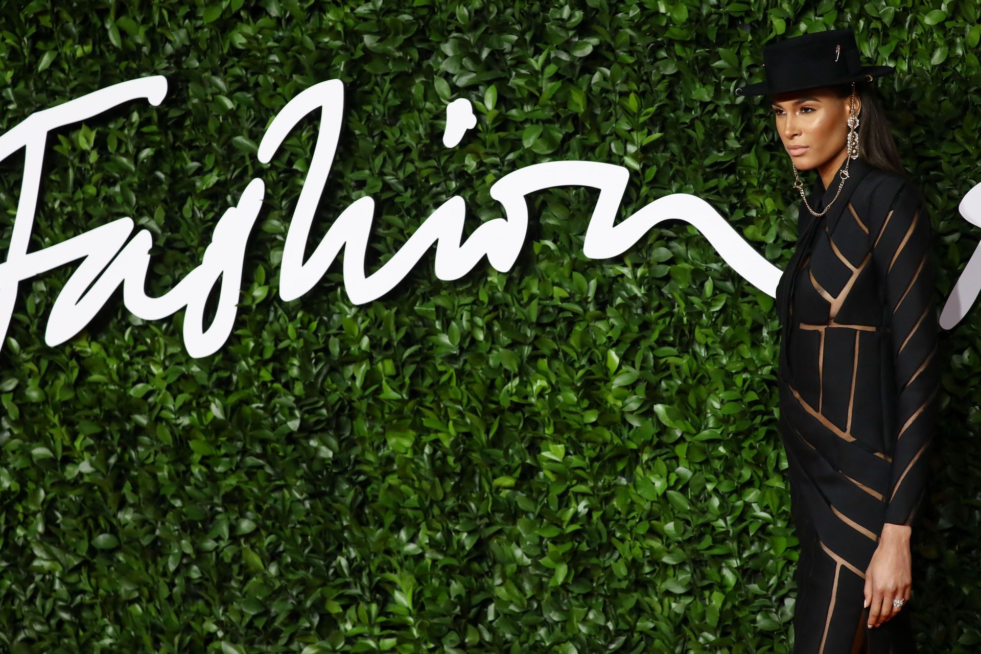 French top model Cindy Bruna (25) chega sem sutiã ao The Fashion Awards 2019 realizado no Royal Albert Hall em Londres, Inglaterra, 12/02/2019.
