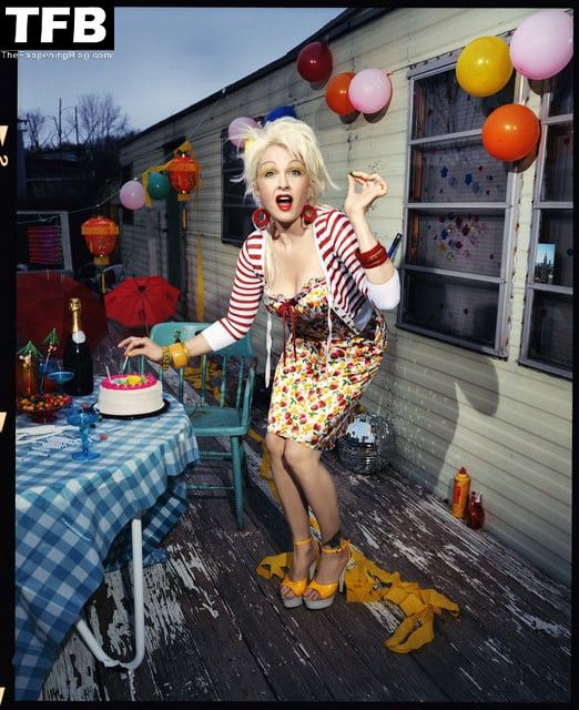 Veja o retrato e as fotos de palco de Cindy Lauper exibindo seus seios e pernas sexy.