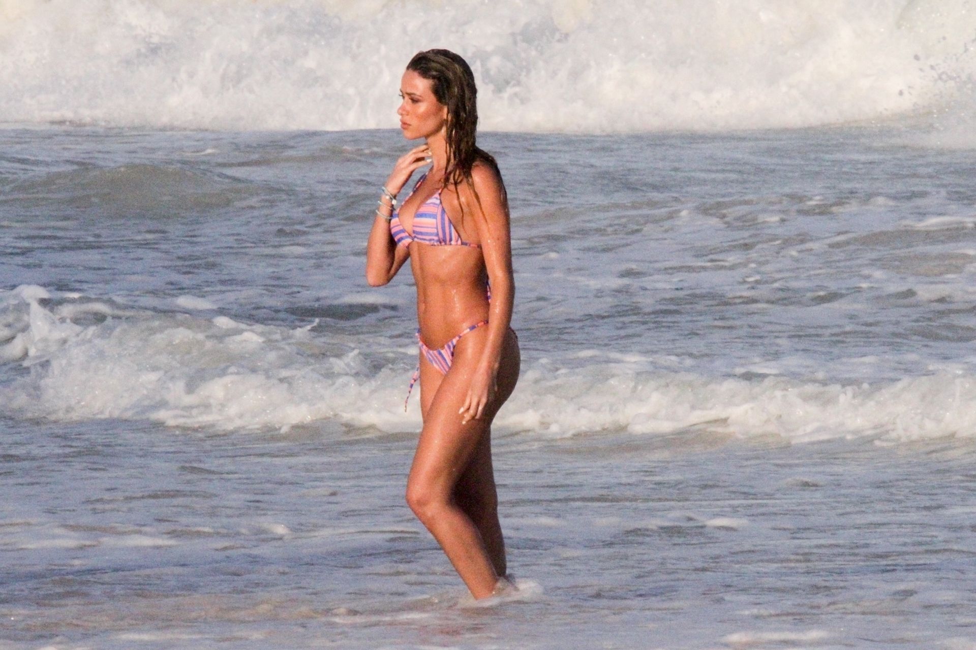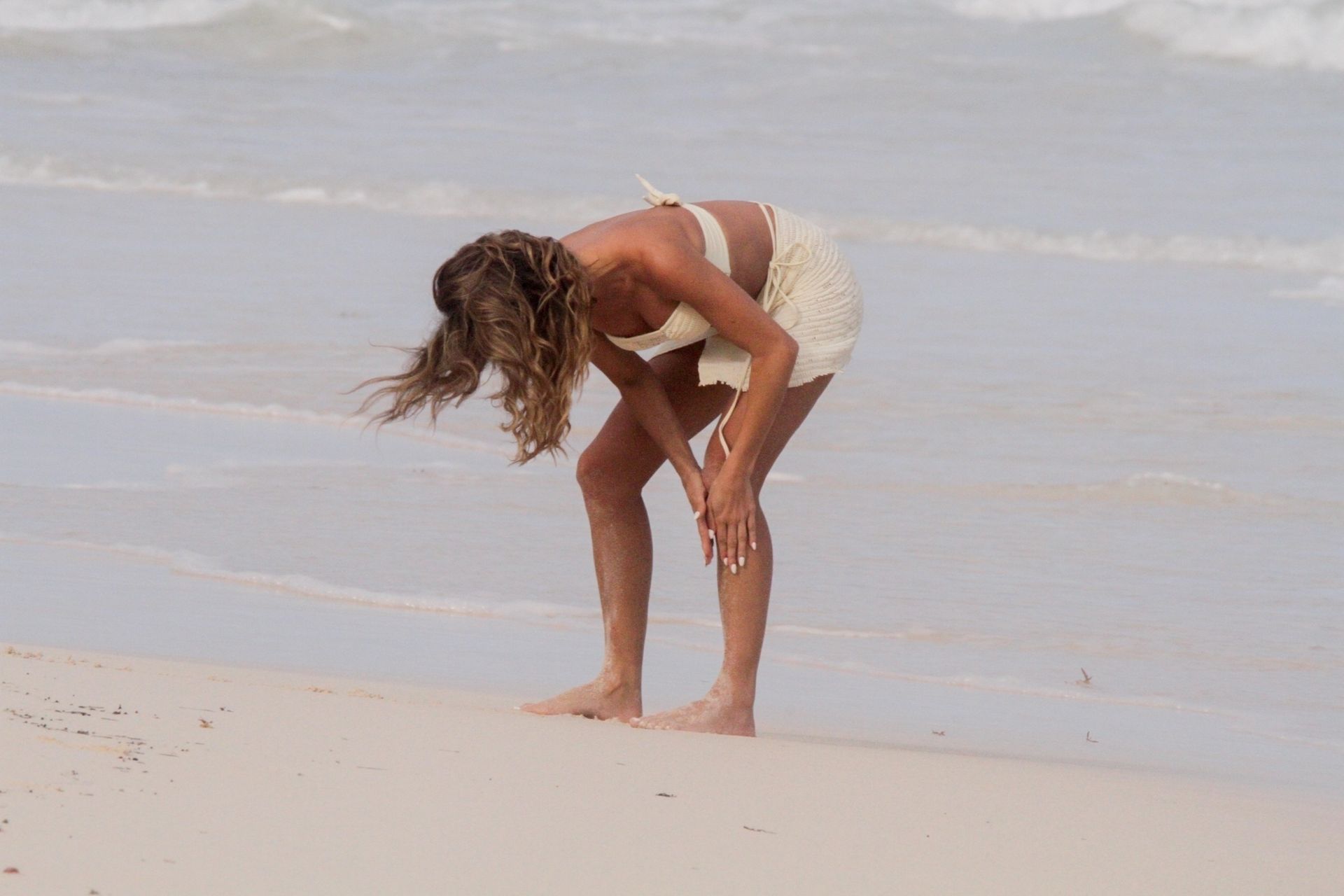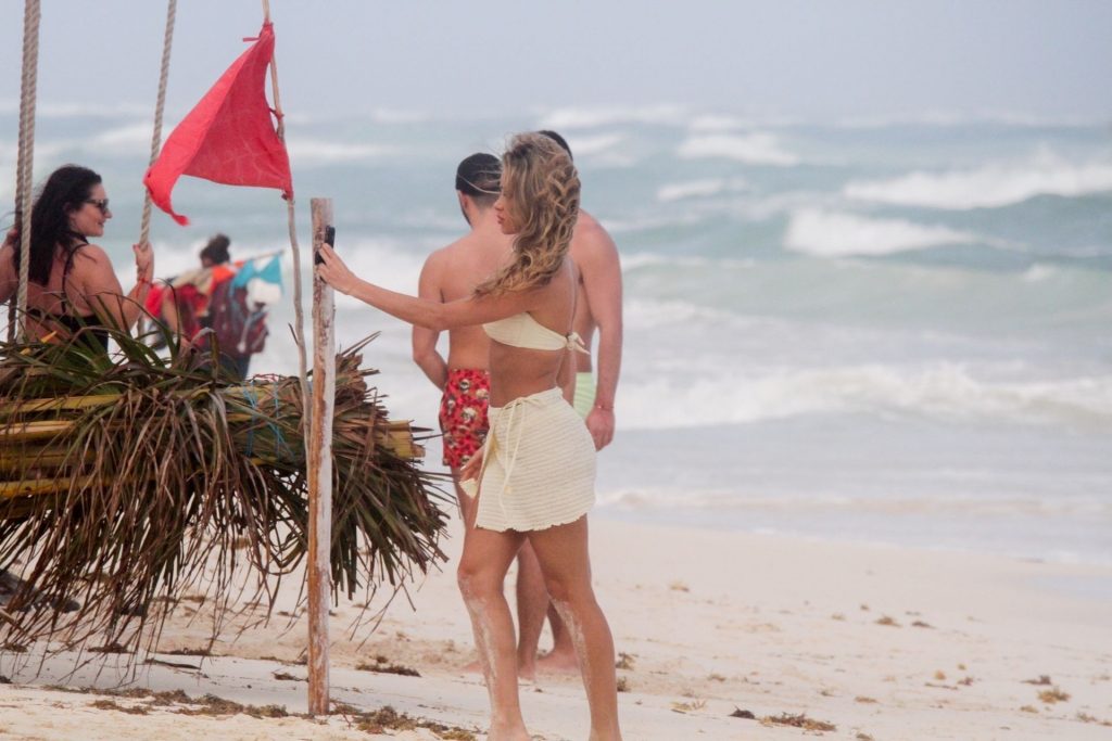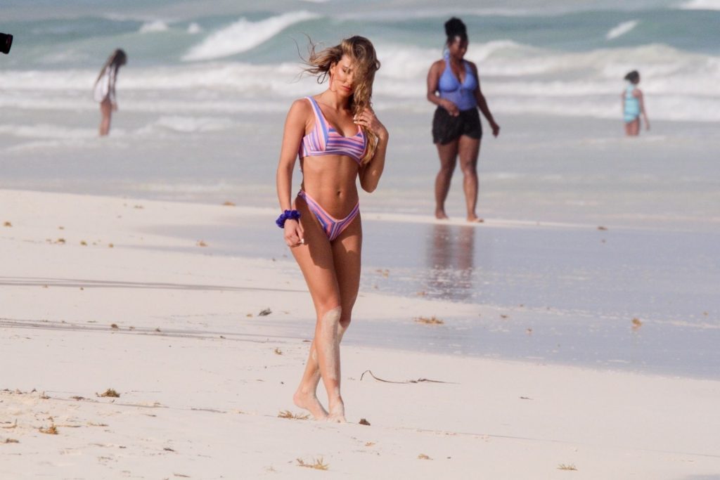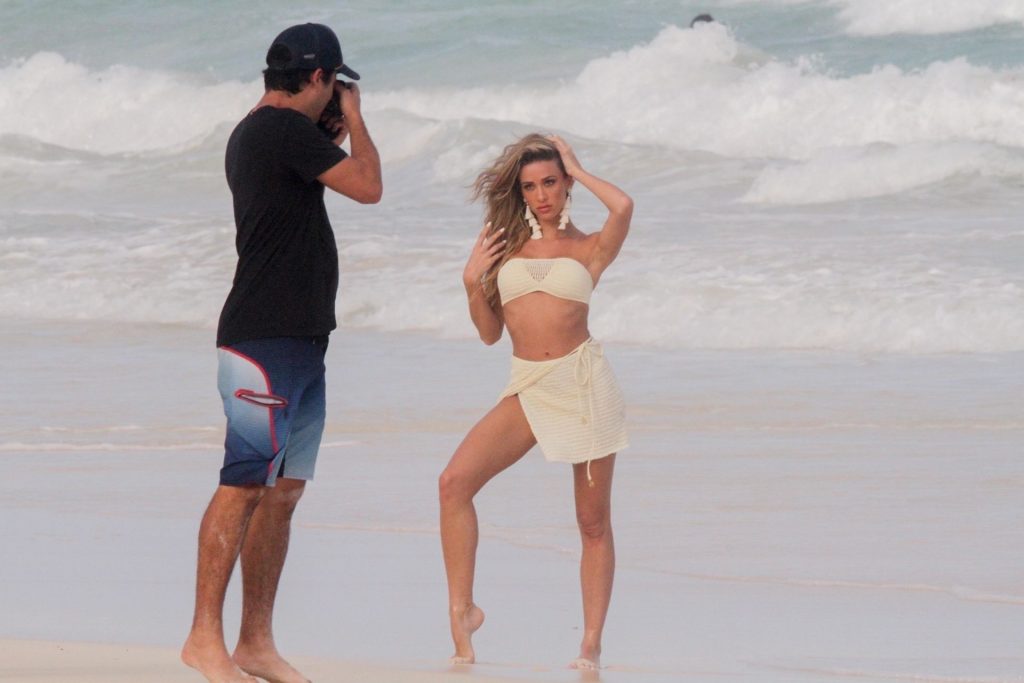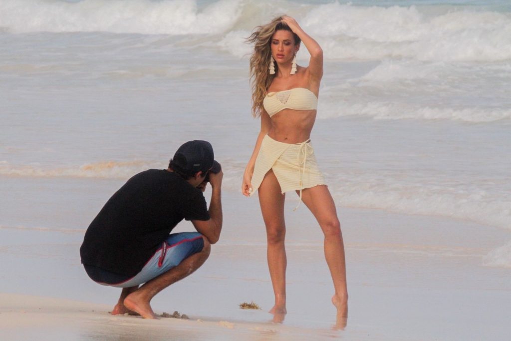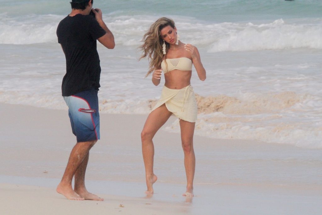 Beautiful blonde Cindy Prado models multiple bikinis during a beach photoshoot in Tulum, Mexico, 03/09/2020.