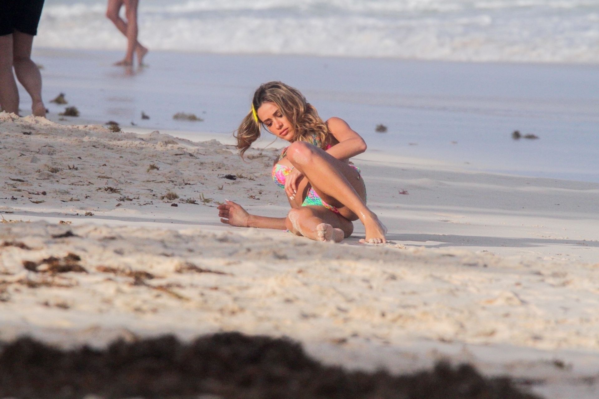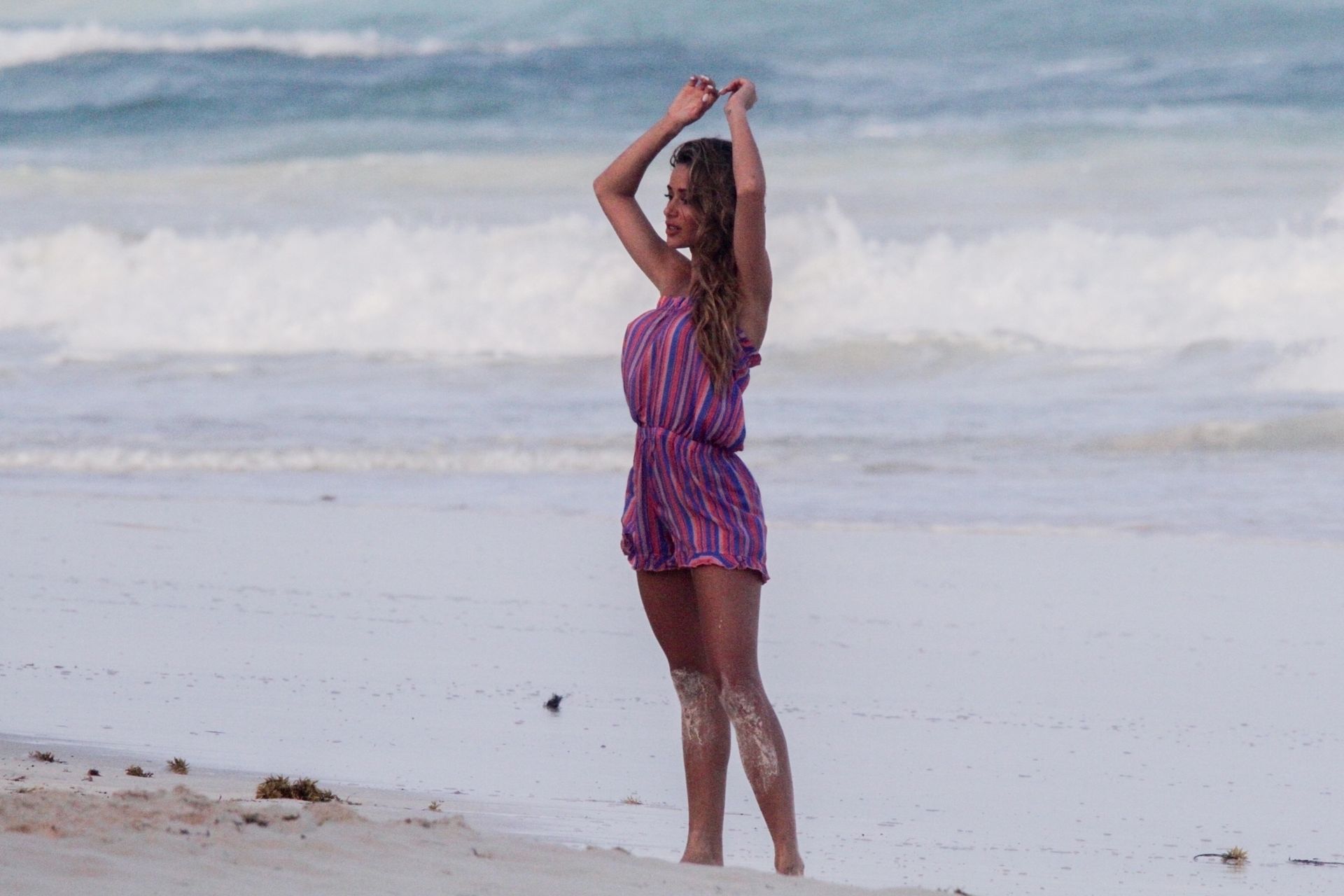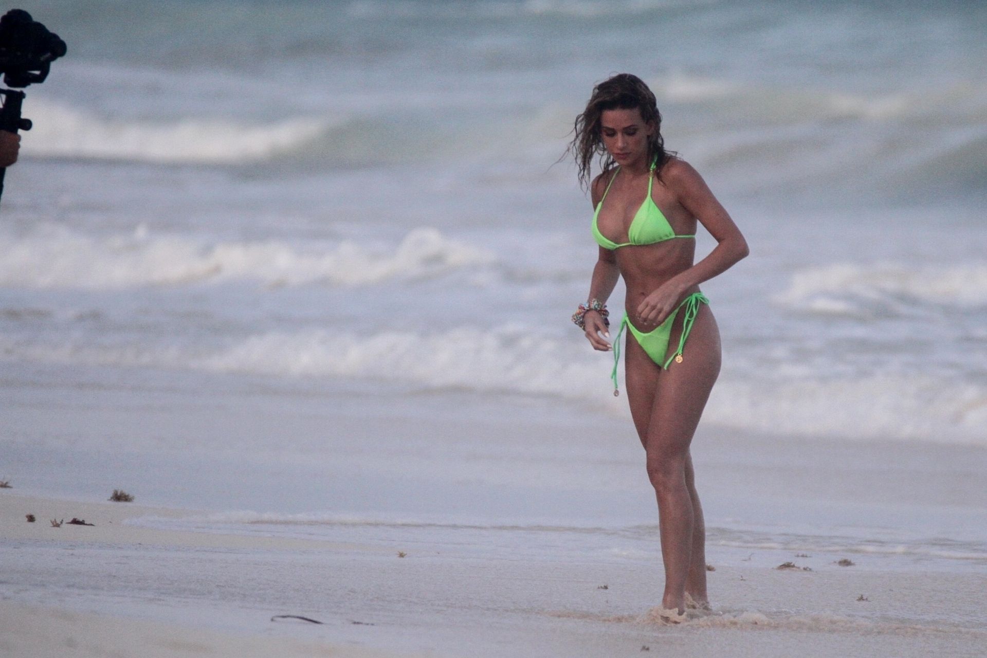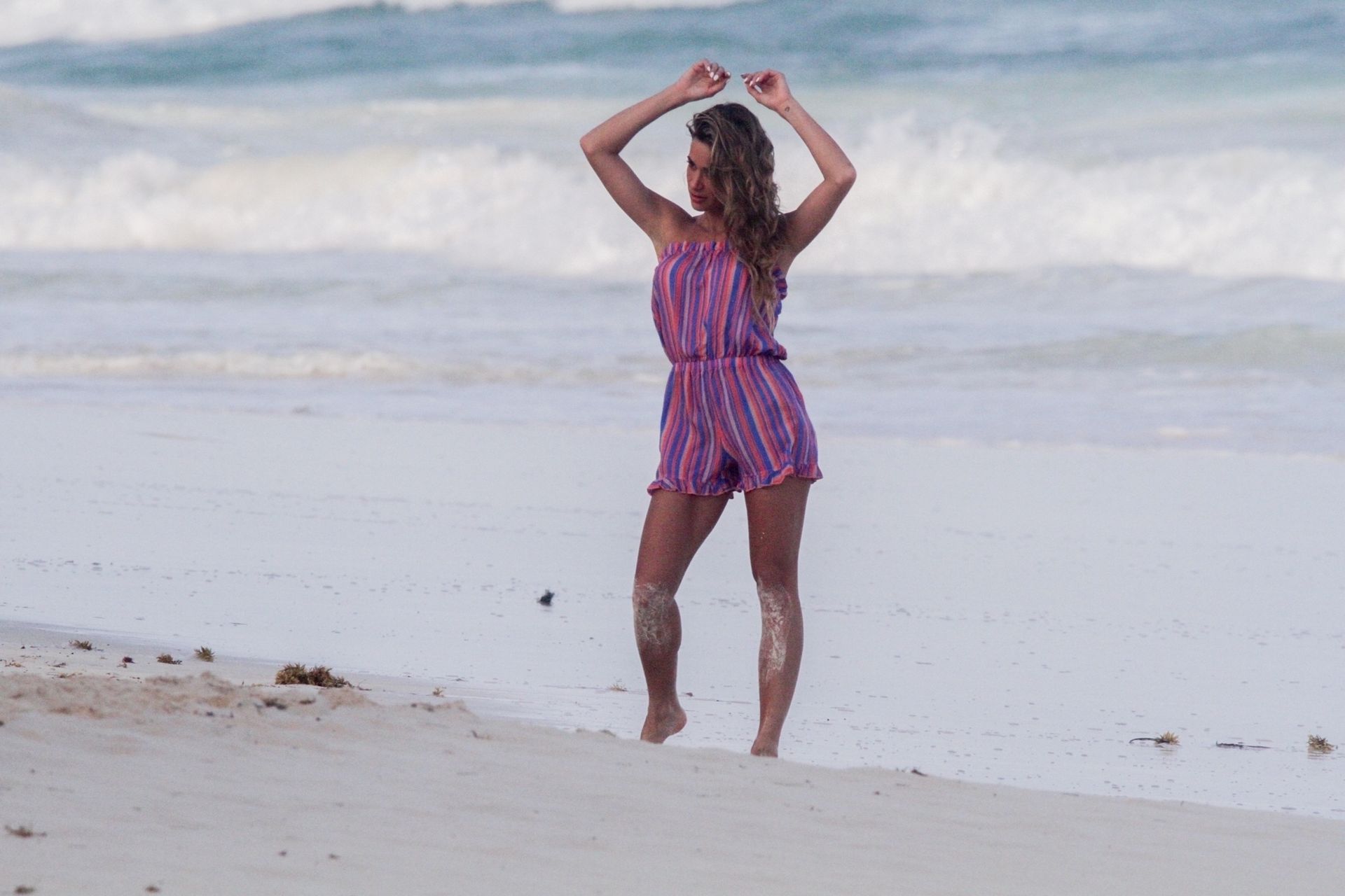 Beautiful blonde Cindy Prado models multiple bikinis during a beach photoshoot in Tulum, Mexico, 03/09/2020.