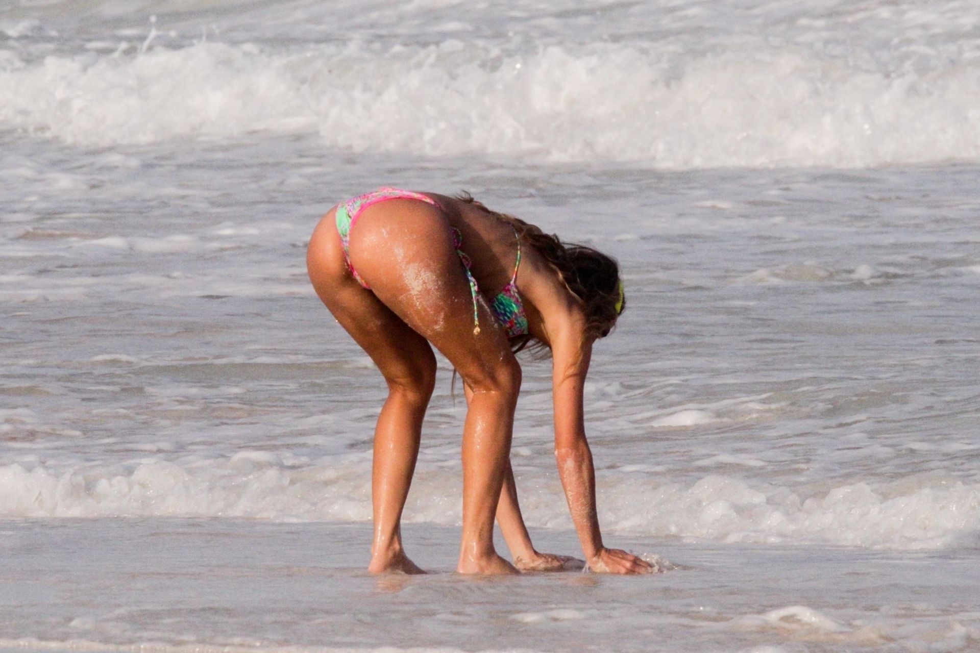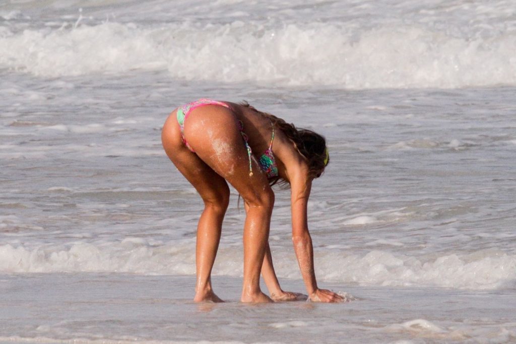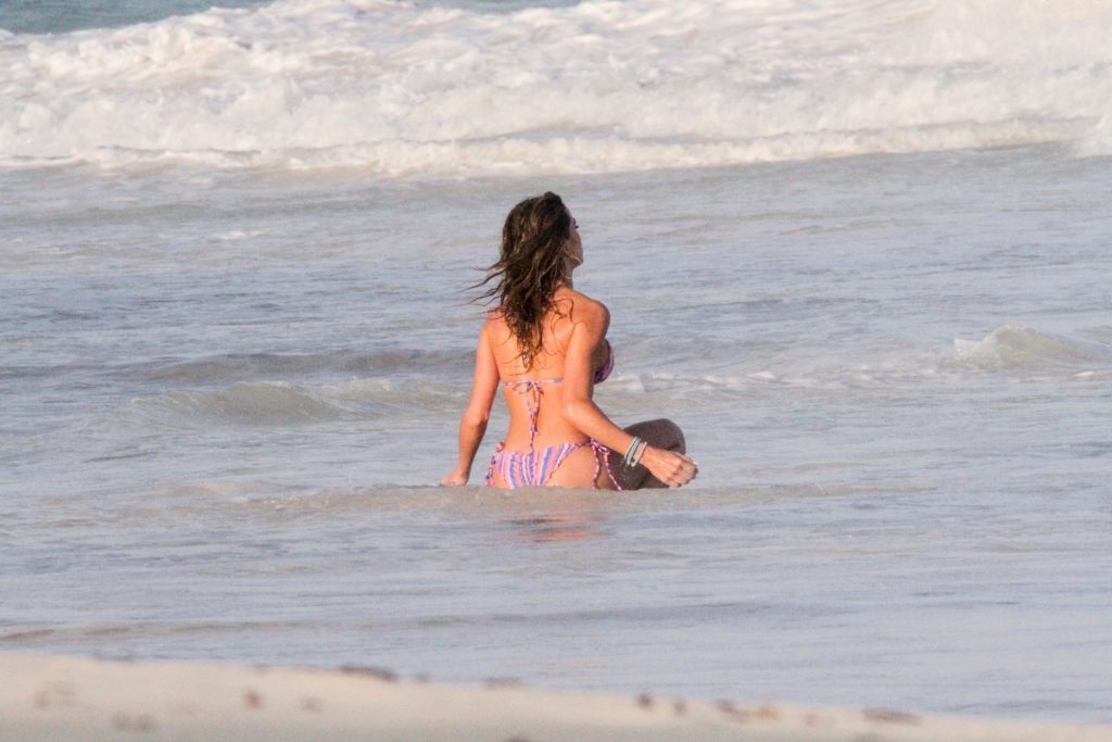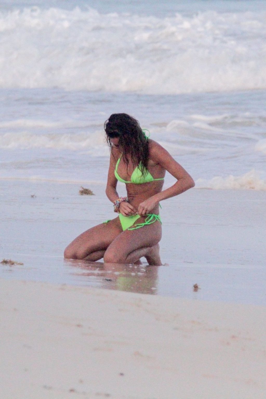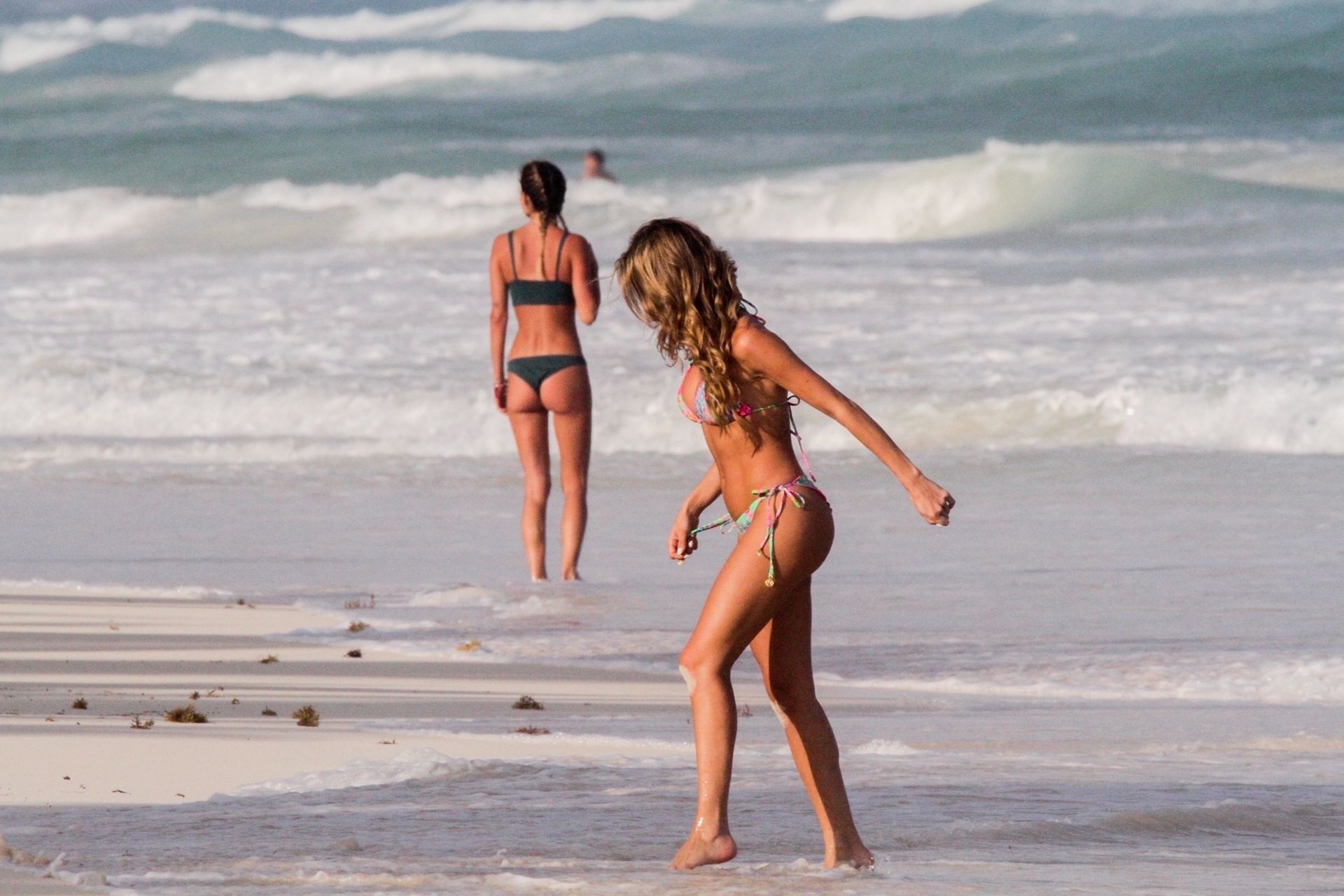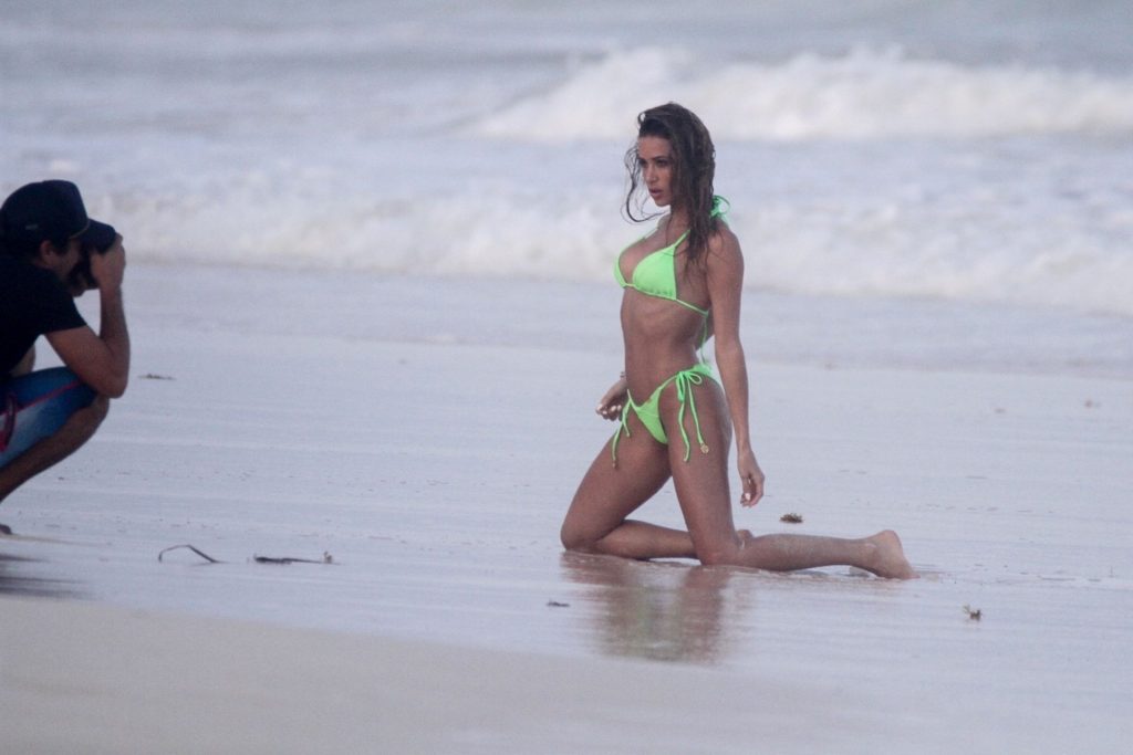 Beautiful blonde Cindy Prado models multiple bikinis during a beach photoshoot in Tulum, Mexico, 03/09/2020.
