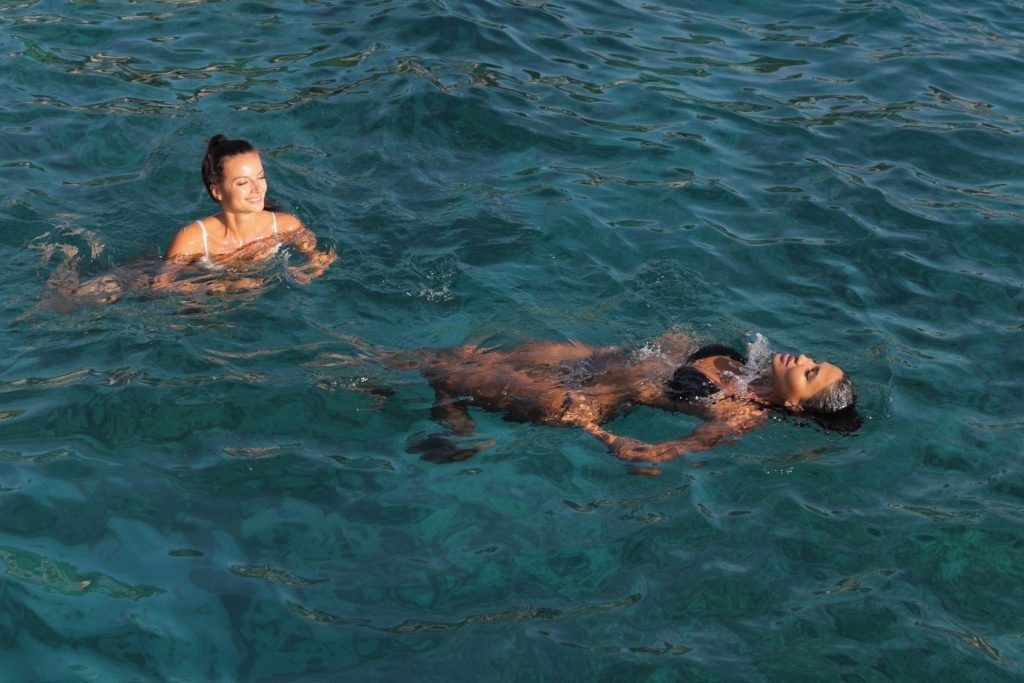 CJ Franco e Natalia Janoszek mergulham fundo no Mar do Caribe enquanto estão de férias na Jamaica, 25/09/2019. As modelos passaram um tempo relaxando em um iate próximo ao famoso Rick’s Cafe.