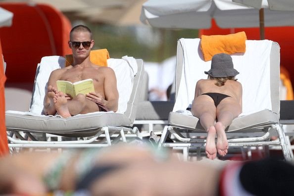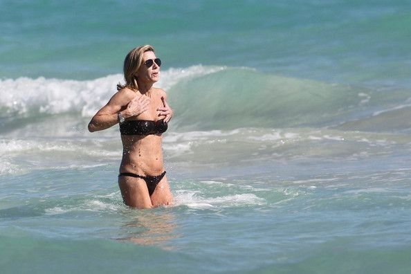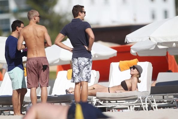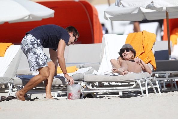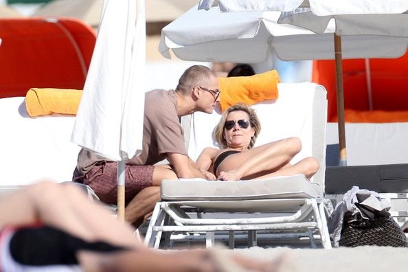 Paparazzi flagraram Claire Chazal tomando sol topless com amigos na praia em South Beach, Flórida, 21/12/2010. Claire Chazal é uma jornalista francesa. De 1991 a 2015, ela apresentou o noticiário de sexta-feira à noite e dos finais de semana na TF1. Nascida em: 1 de dezembro de 1956 em Thiers, Puy-de-Dôme.