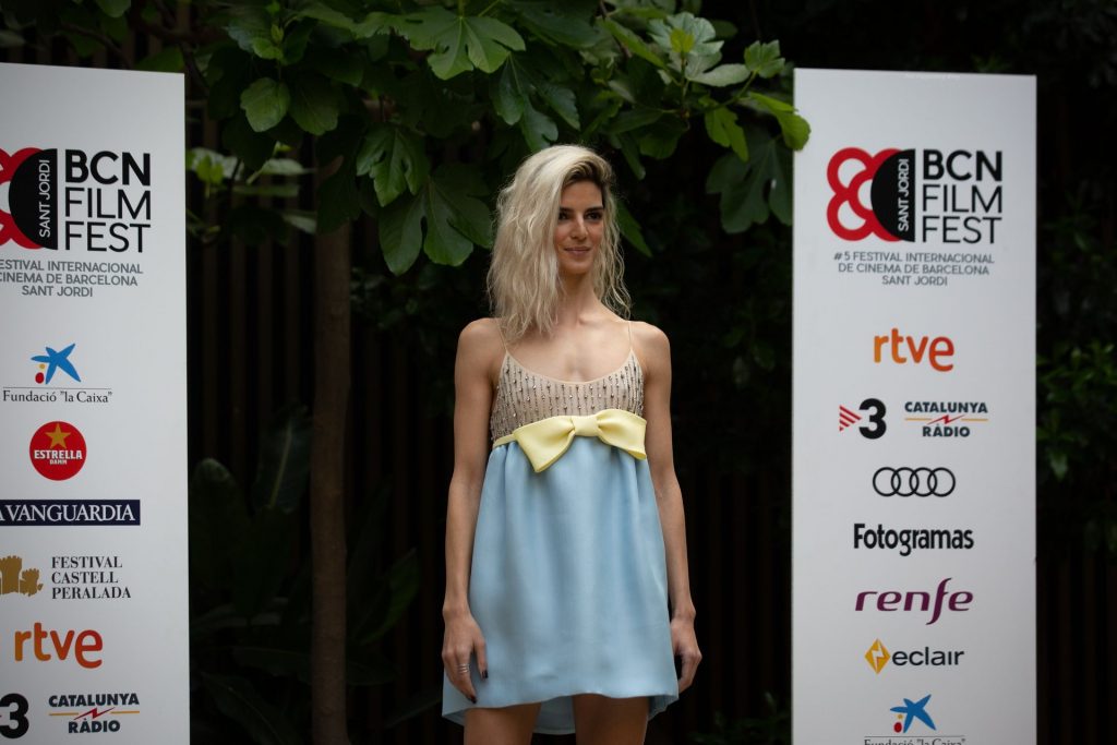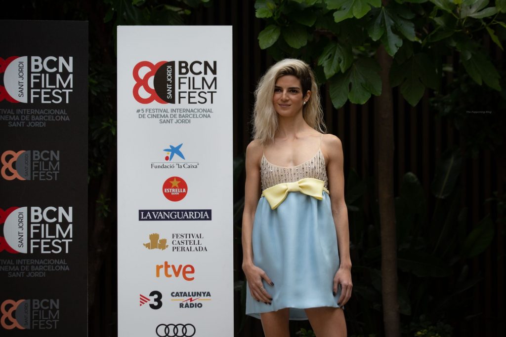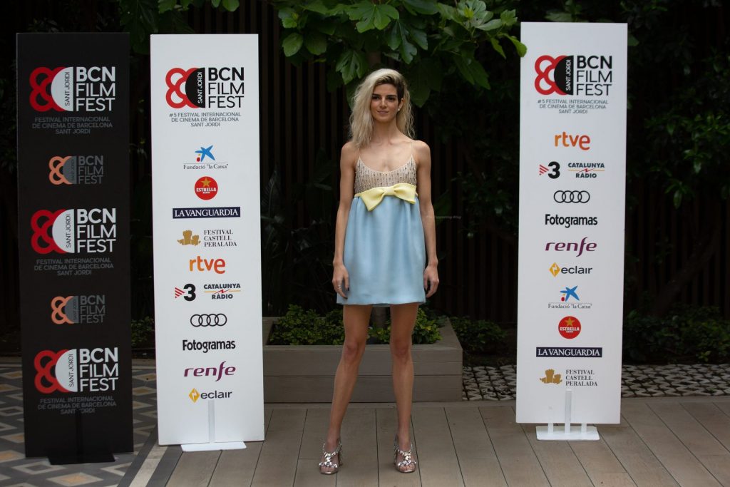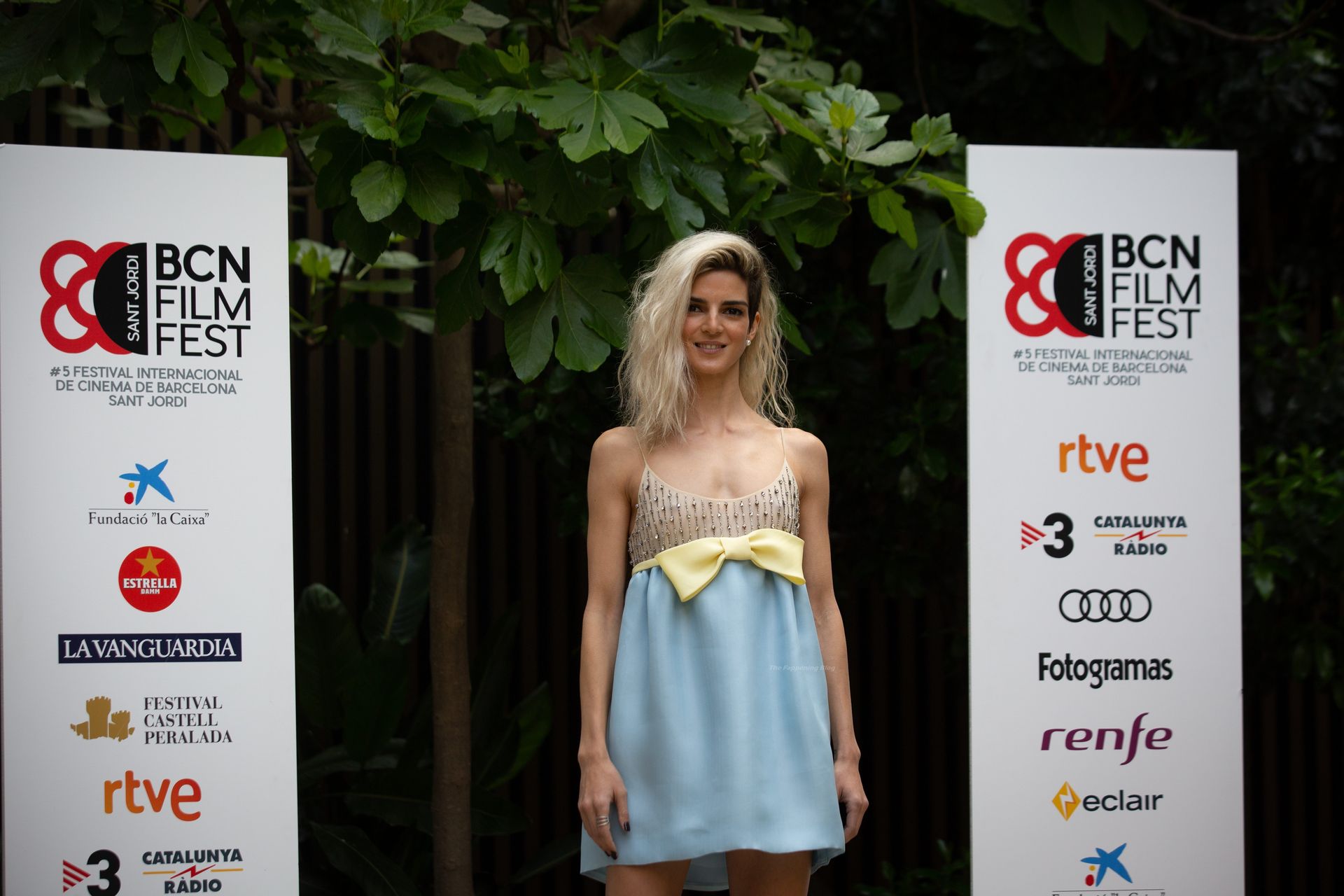 Atriz de pernas longas Clara Lago posa sem sutiã no photocall do filme Crónica de una tormenta no BCN Film Fest em Barcelona, 22/04/2021. O filme será lançado nos cinemas em 30 de abril.