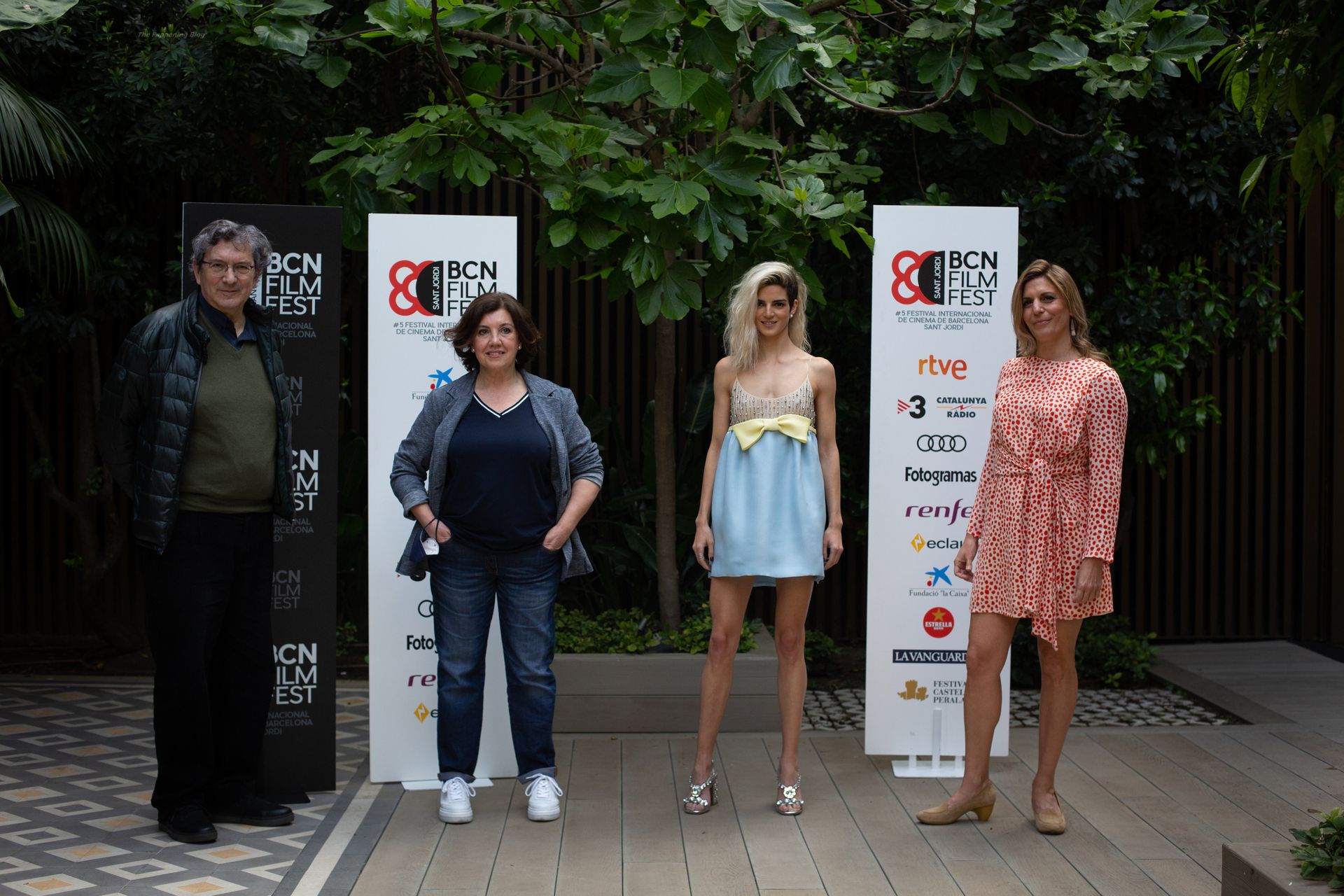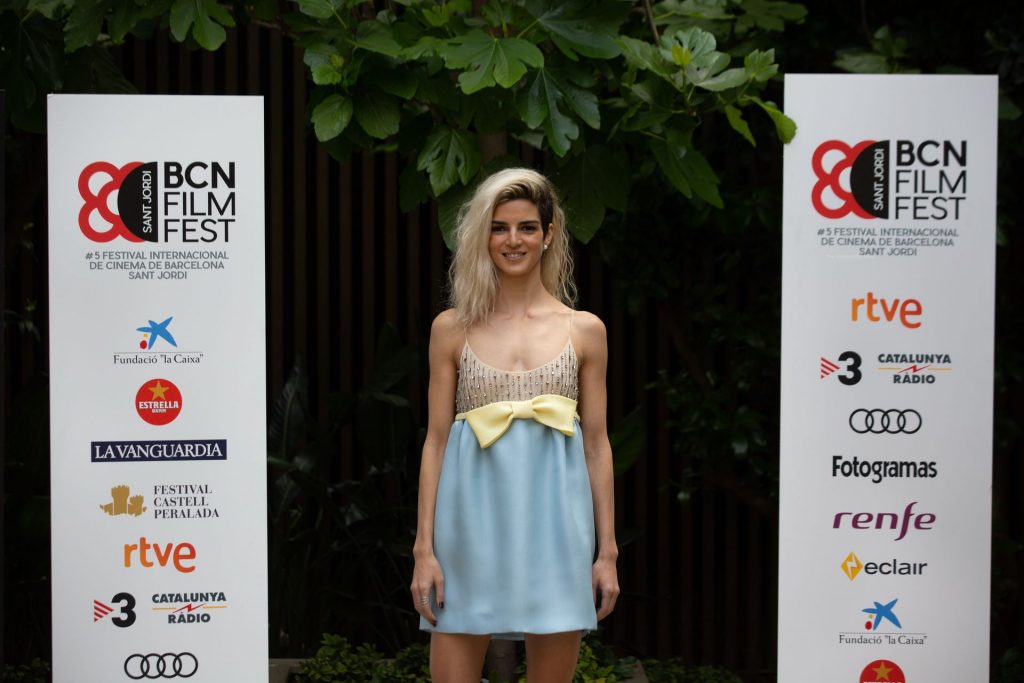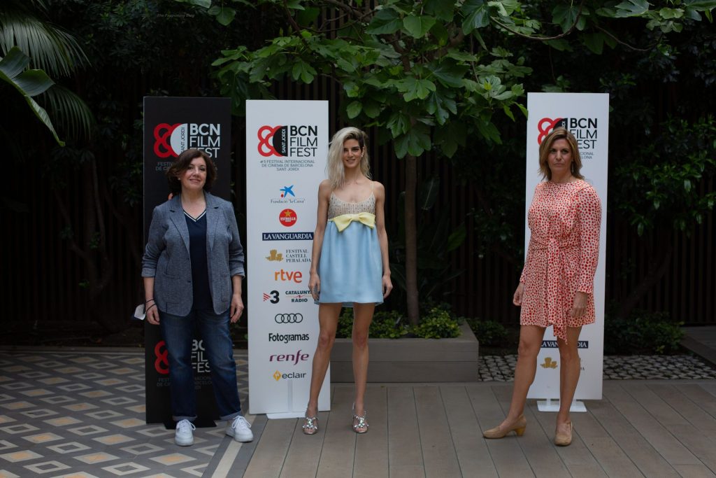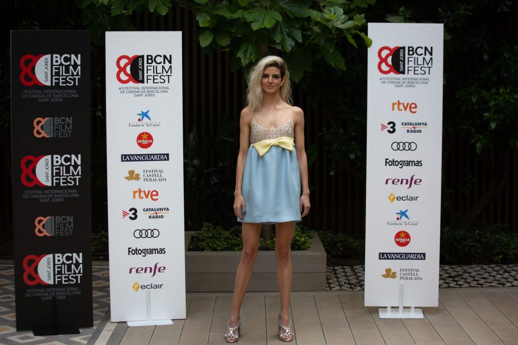 Atriz de pernas longas Clara Lago posa sem sutiã no photocall do filme Crónica de una tormenta no BCN Film Fest em Barcelona, 22/04/2021. O filme será lançado nos cinemas em 30 de abril.