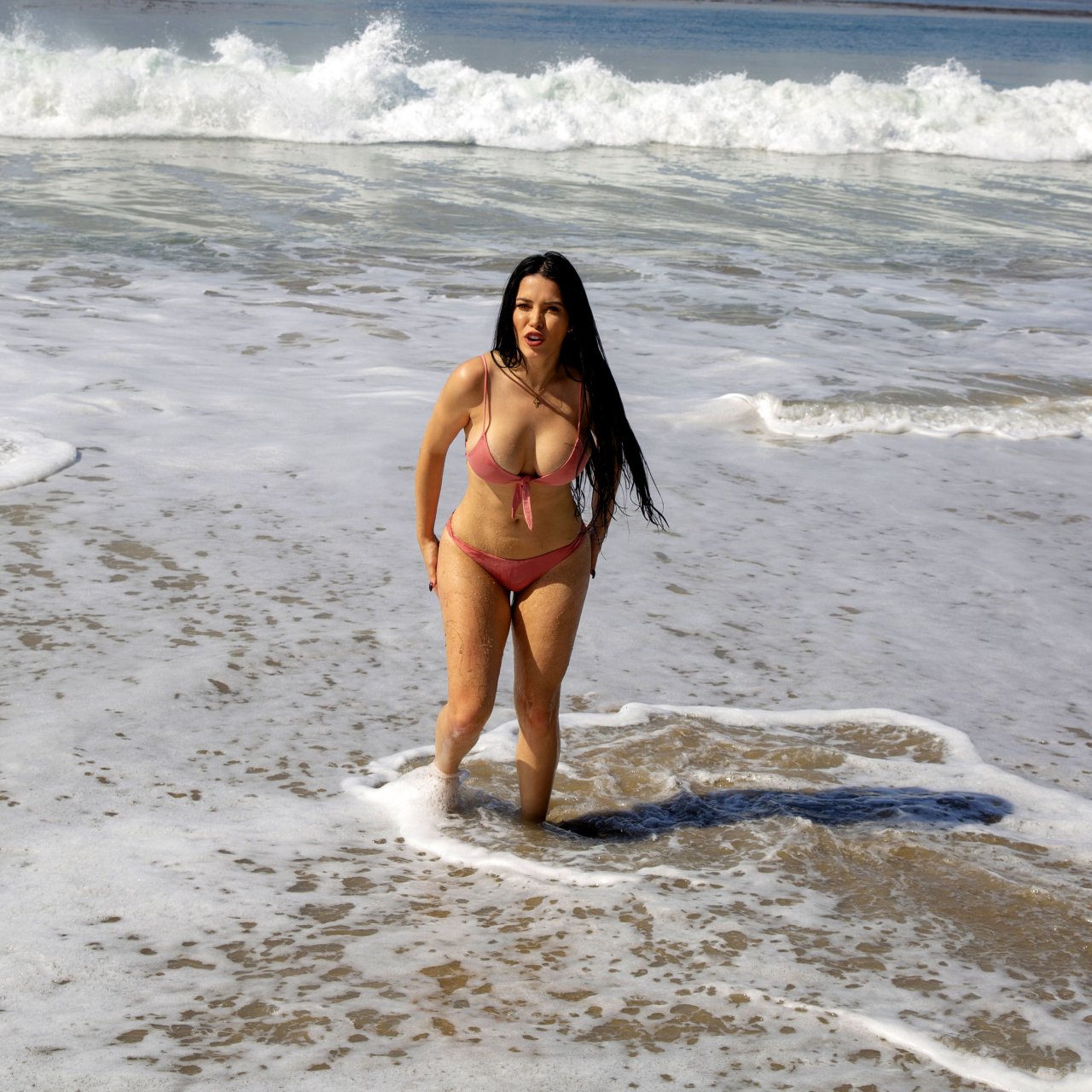 Social media sensation Claudia Alende, que tem mais de 10,1 milhões de seguidores só no Instagram, exibiu as curvas famosas que a tornaram uma popular candidata ao Miss Bumbum, 07/04/2018. Ela foi vista na praia em Los Angeles, onde a jovem de 24 anos tem tentado lançar uma carreira como atriz e cantora.