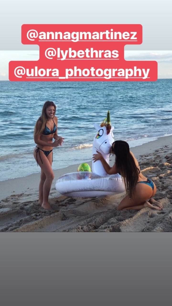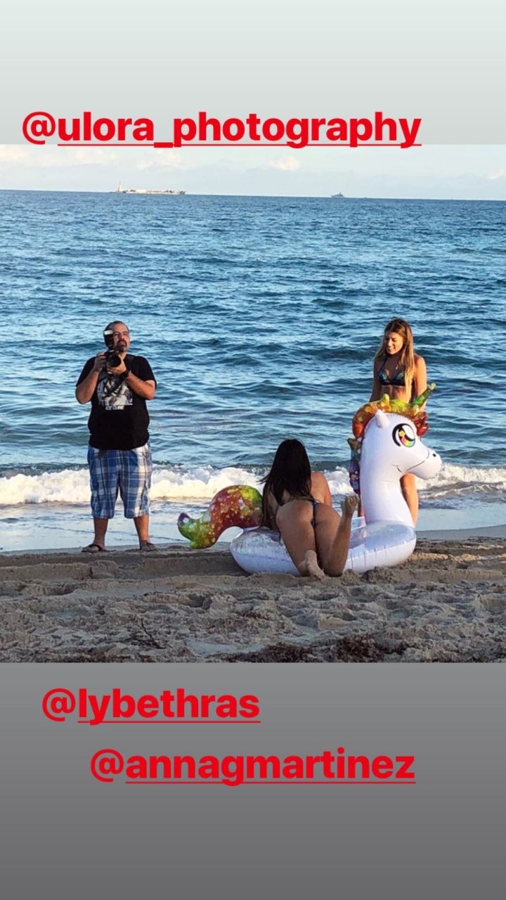 Modelo italiana e estrela de reality show Claudia Romani e a modelo brasileira Anna Martinez exibem suas curvas em biquínis e saídas de praia combinando da Lybethras após um ensaio fotográfico em South Beach, 29/01/2019.