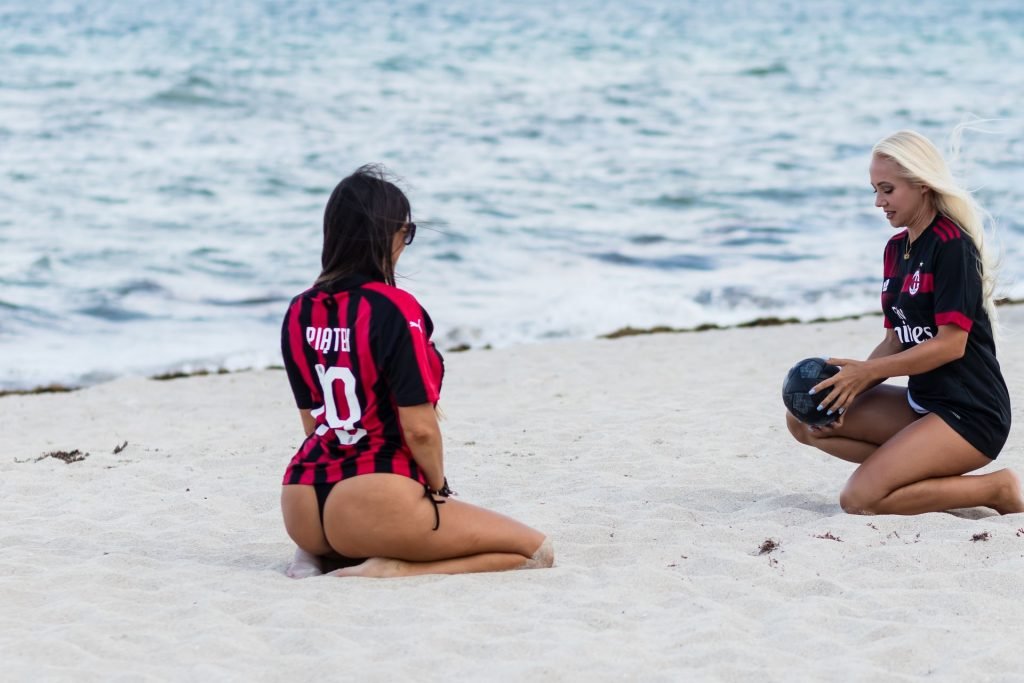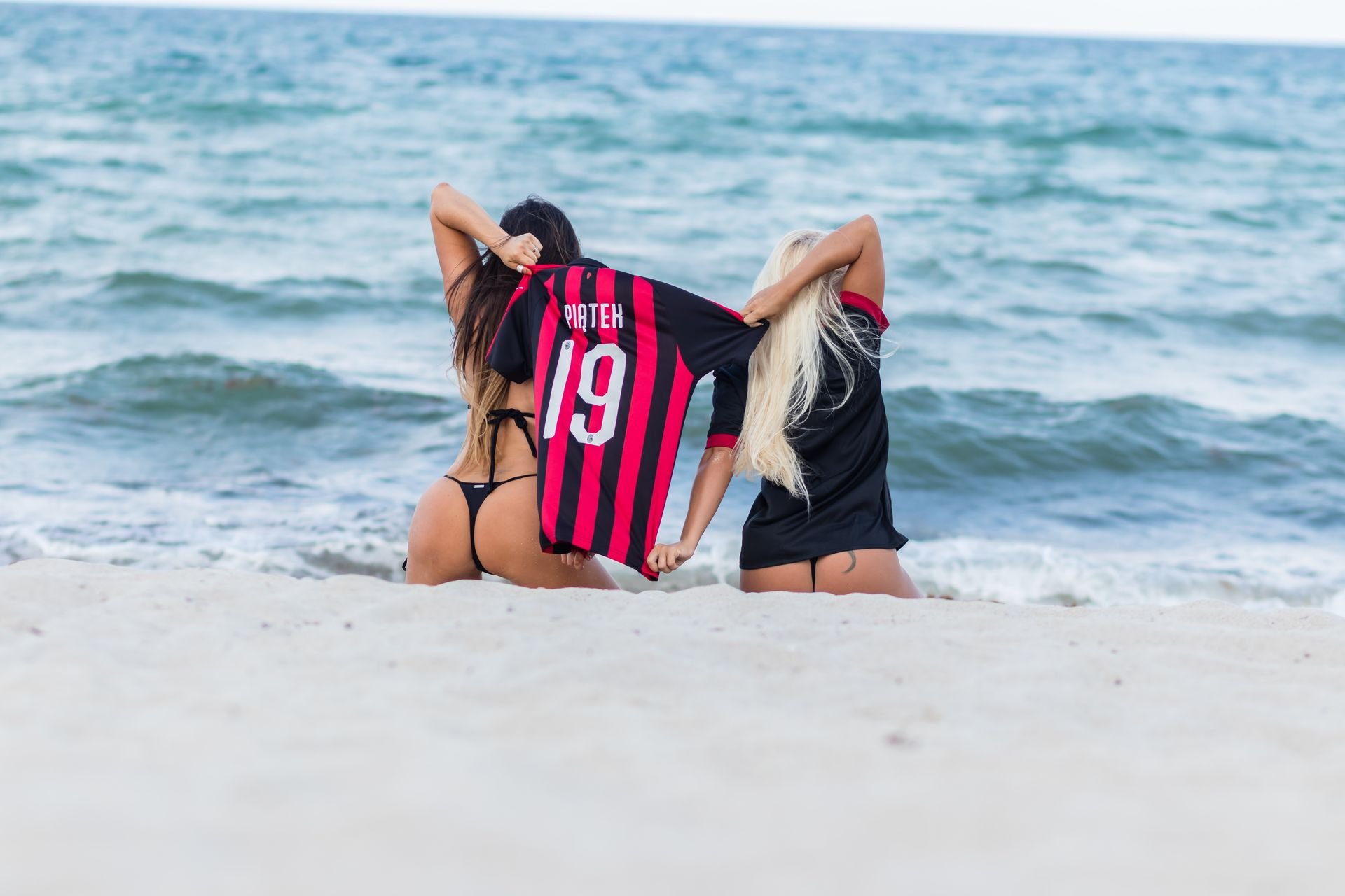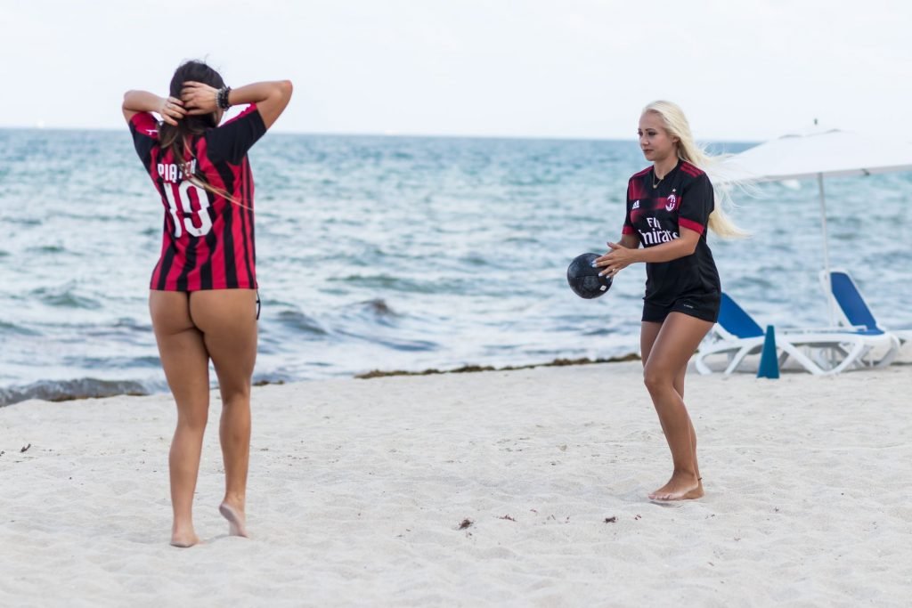 Elas decidiram torcer pelo time italiano e mostrar seu apoio após a derrota contra o Torino e o momento difícil que estão passando. Claudia estava vestindo uma camisa do Piatek enquanto ambas fizeram sua famosa celebração de arma. Elas usavam tangas ultra pequenas e até desfilavam com saltos altos vermelhos na praia.
