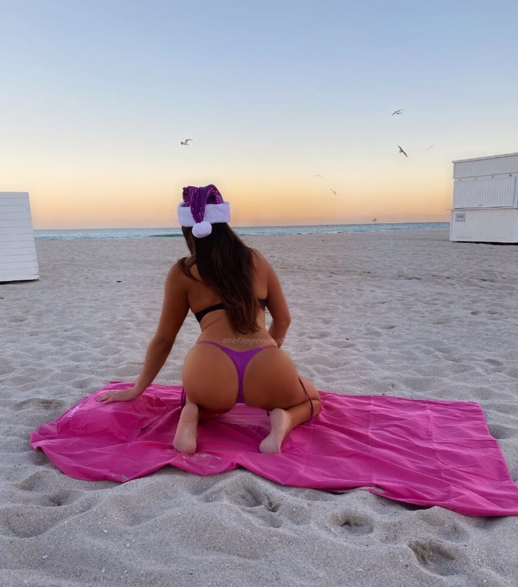 International model and TV star Claudia Romani was seen in South Beach wearing a skimpy bikini and a Santa Hat, 12/01/2020.