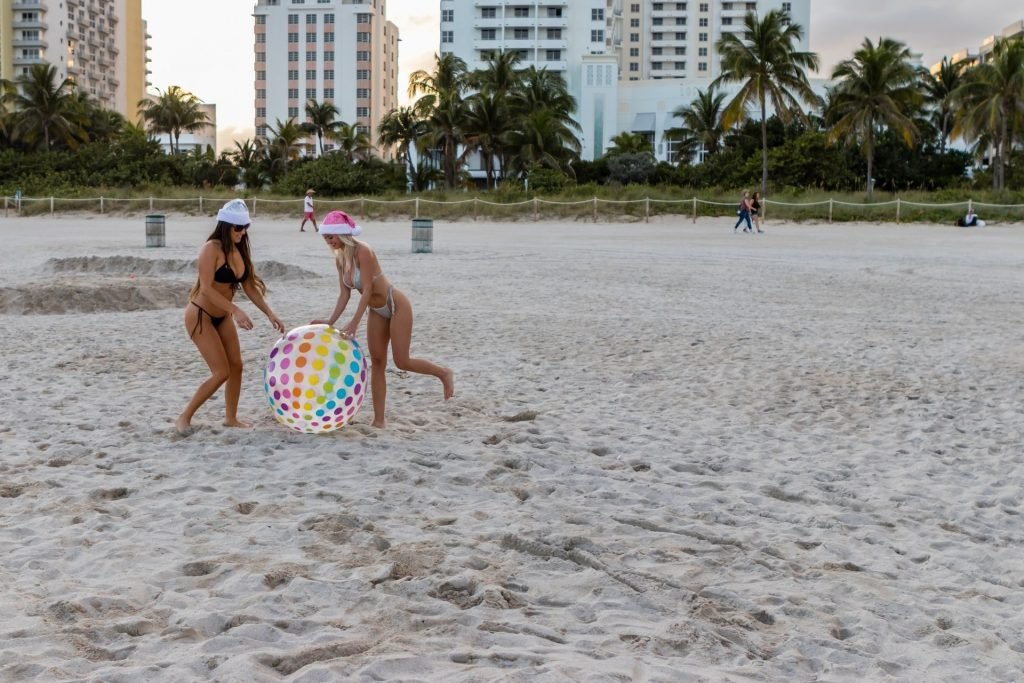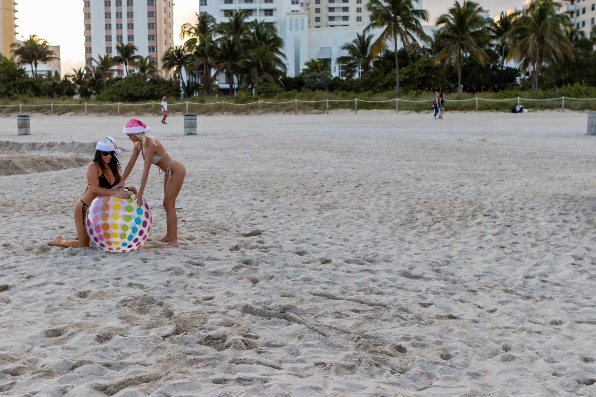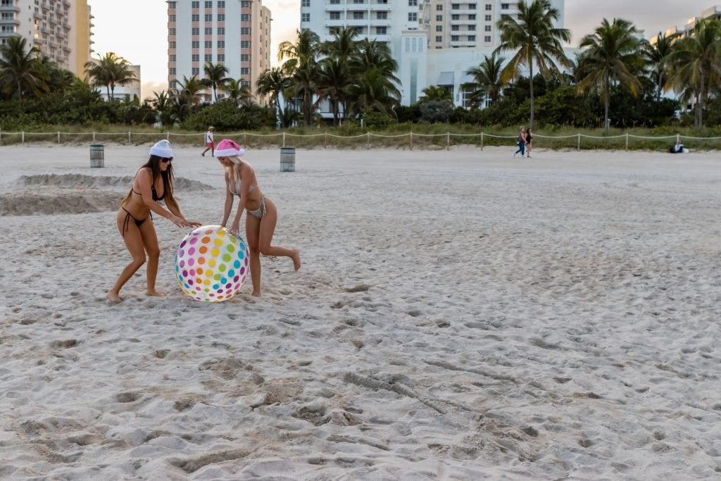 Modelos amigas Claudia Romani e Jessica Edstrom ainda estão no clima de Natal em South Beach, 26/12/2018. A estrela italiana de reality show e a estrela finlandesa de reality show que viaja pelo mundo foram vistas se divertindo e brincando com uma bola enquanto aproveitavam suas férias na praia.