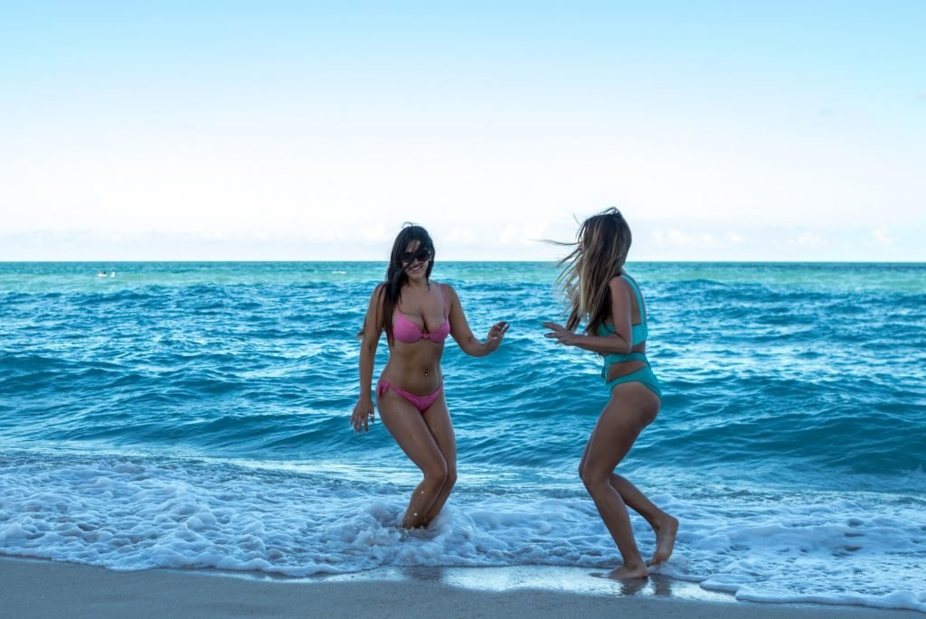 Reality star Claudia Romani e a estrela do YouTube de Los Angeles Lauren Francesca se divertindo em South Beach, 25/02/2018.
