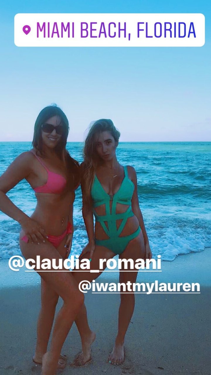 Reality star Claudia Romani e a estrela do YouTube de Los Angeles Lauren Francesca se divertindo em South Beach, 25/02/2018.