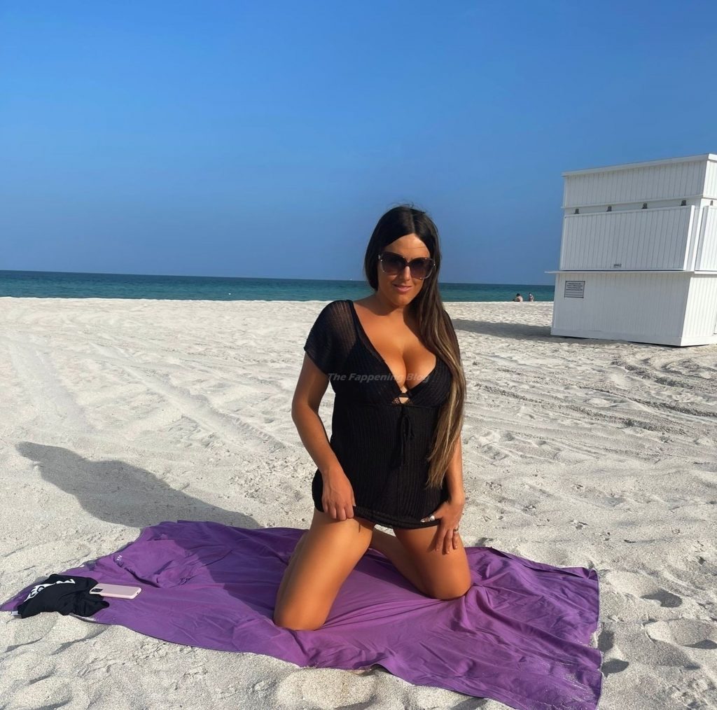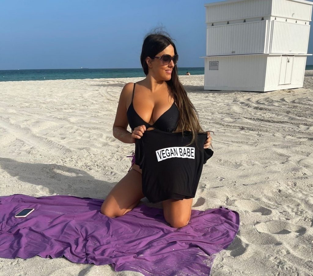 A modelo internacional e ativista pelos direitos dos animais Claudia Romani é vista em South Beach posando para a marca local Vegan Babe Miami, 22/09/2021.