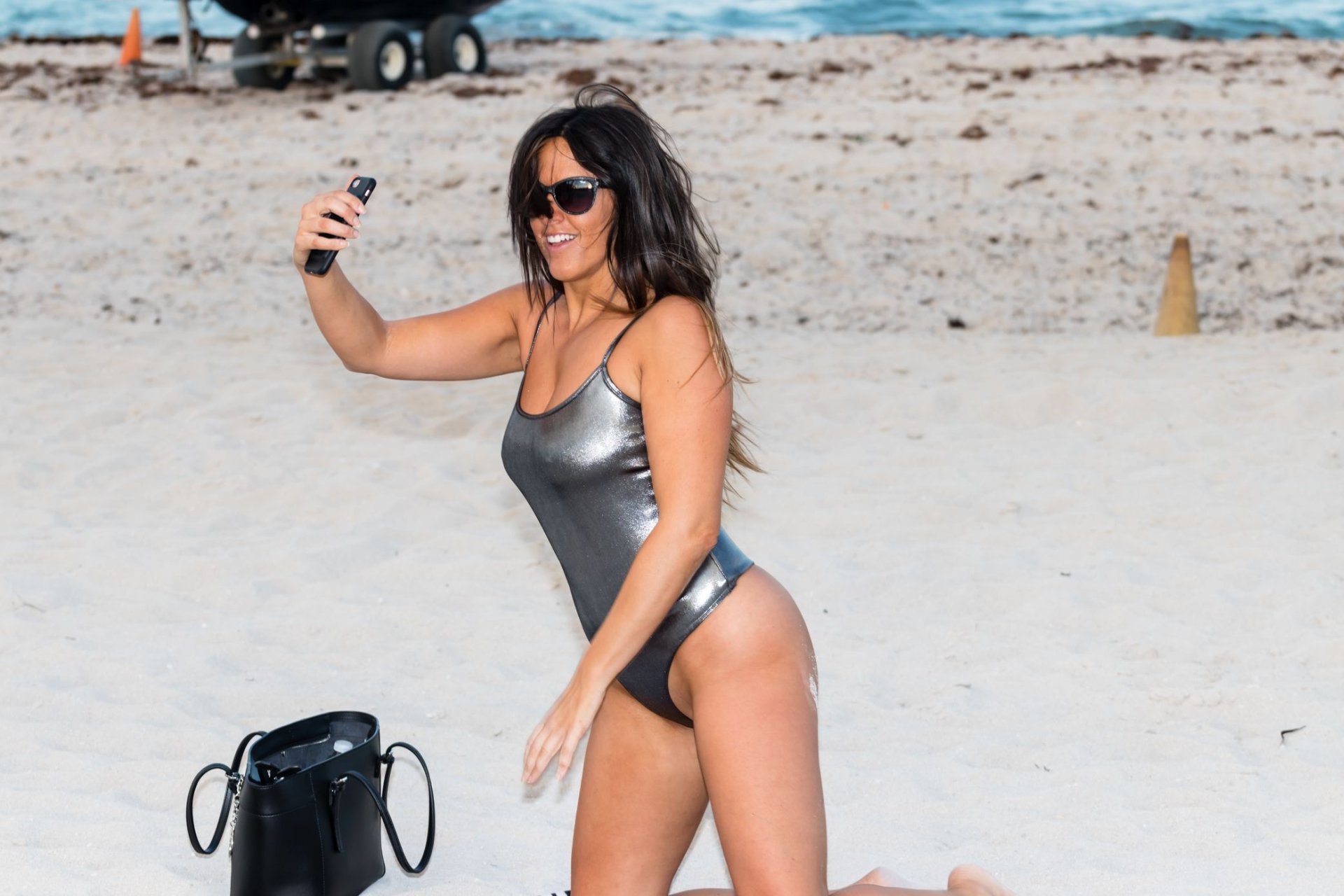 Claudia Romani usa um maiô prateado sexy na praia em Miami, 11/03/2017. Claudia Romani é uma modelo de L’Aquila (Itália). Idade – 34 (14 de abril de 1982).