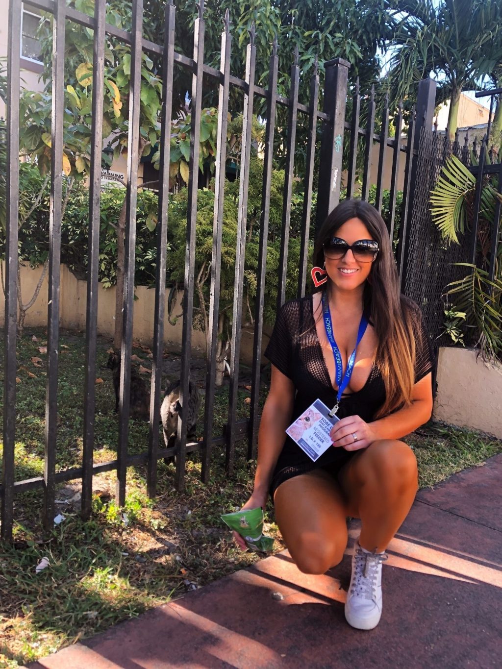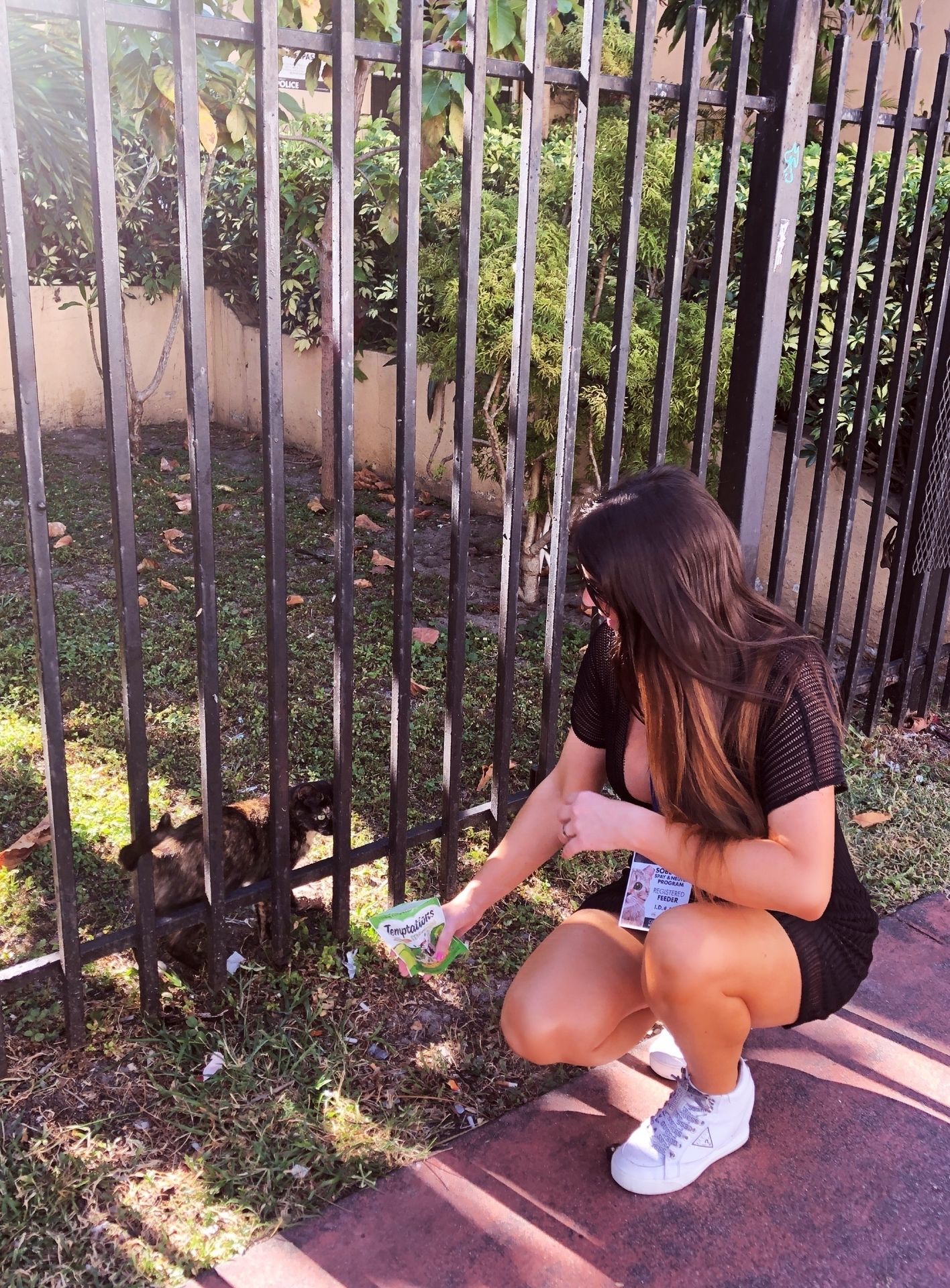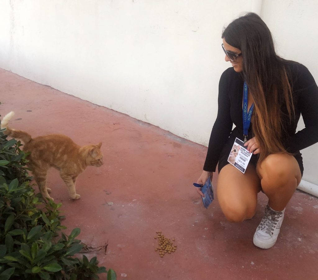 A modelo estava usando um LBD e saltos incríveis. A estrela de Reality TV foi então vista fazendo o que faz todos os dias, alimentando as colônias de gatos de Miami Beach, exibindo orgulhosamente seu crachá de alimentadora registrada!