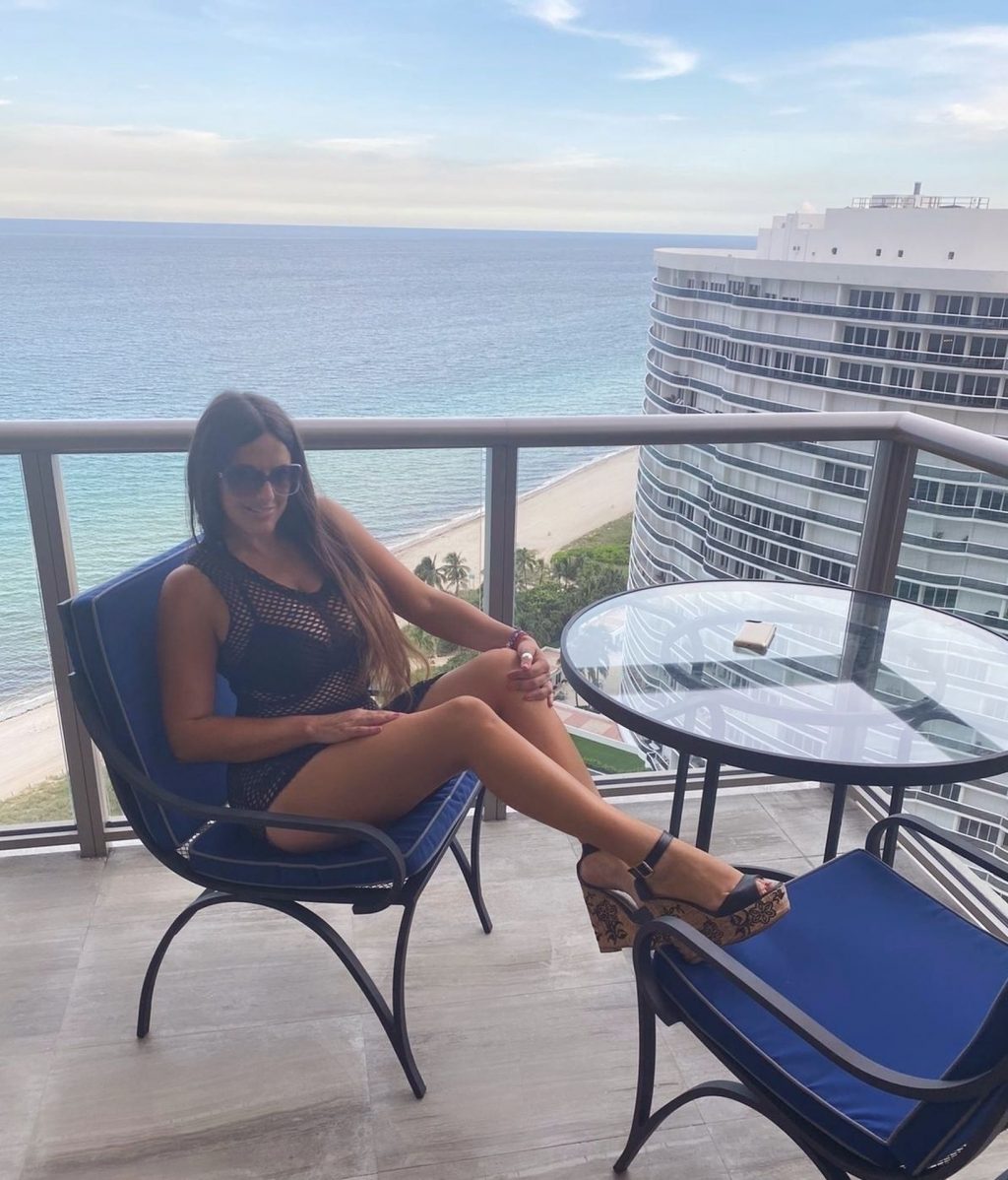 A modelo internacional Claudia Romani passou o dia no resort St Regis em Bal Harbor, 20/07/2020. A personalidade da TV usava um biquíni preto, sandálias plataforma e tinha uma toalha personalizada. Claudia relaxou à beira da piscina e posou para fotos parecendo em forma e bronzeada na paisagem incrível.